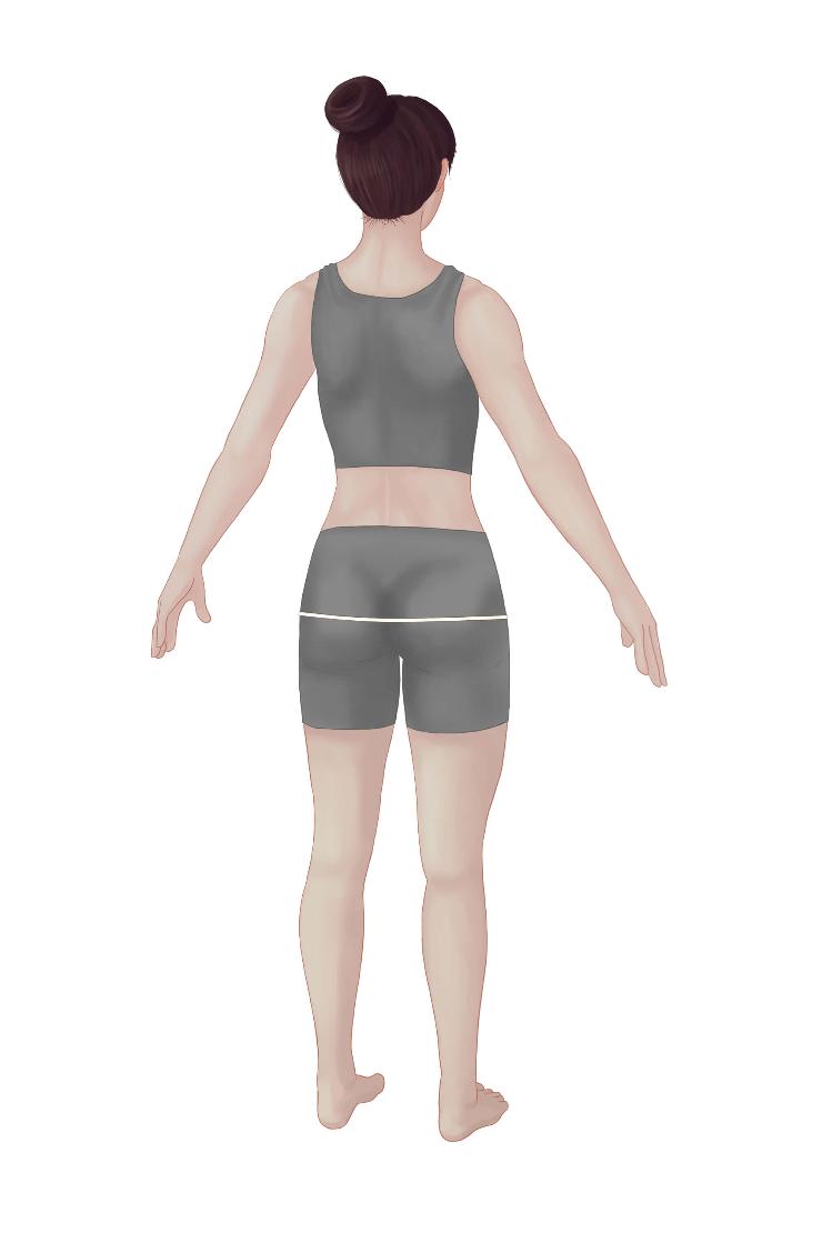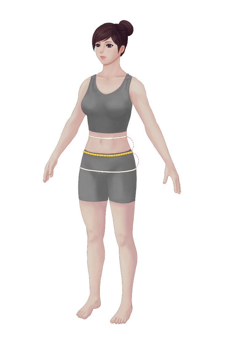 被测量者穿着一条深裆、宽松、裤腰松紧适度的松紧带运动裤或者睡裤,后裤腰口穿在后腰髋骨上缘位置,前裤腰口根据喜好穿在平齐或低于后裤腰口水平的位置,测量者用软尺沿着裤腰口,绕腰部一周测量裤腰围。注意:1、测量裤腰围时,被测量者可以按自己的裤腰穿着松紧喜好,决定软尺是否要收紧以及收紧的程度。2、被测量者可以按自己的穿着需求决定是否穿着上衣或穿着什么上衣来测量裤腰围,例如,要购买扎在上衣外的下装时,可穿着相应的上衣并扎进裤腰里测量裤腰围。每次购买下装前,都要注意检查裤腰围量身数据是否符合穿着需求,并修改不符合需求的裤腰围量身数据。