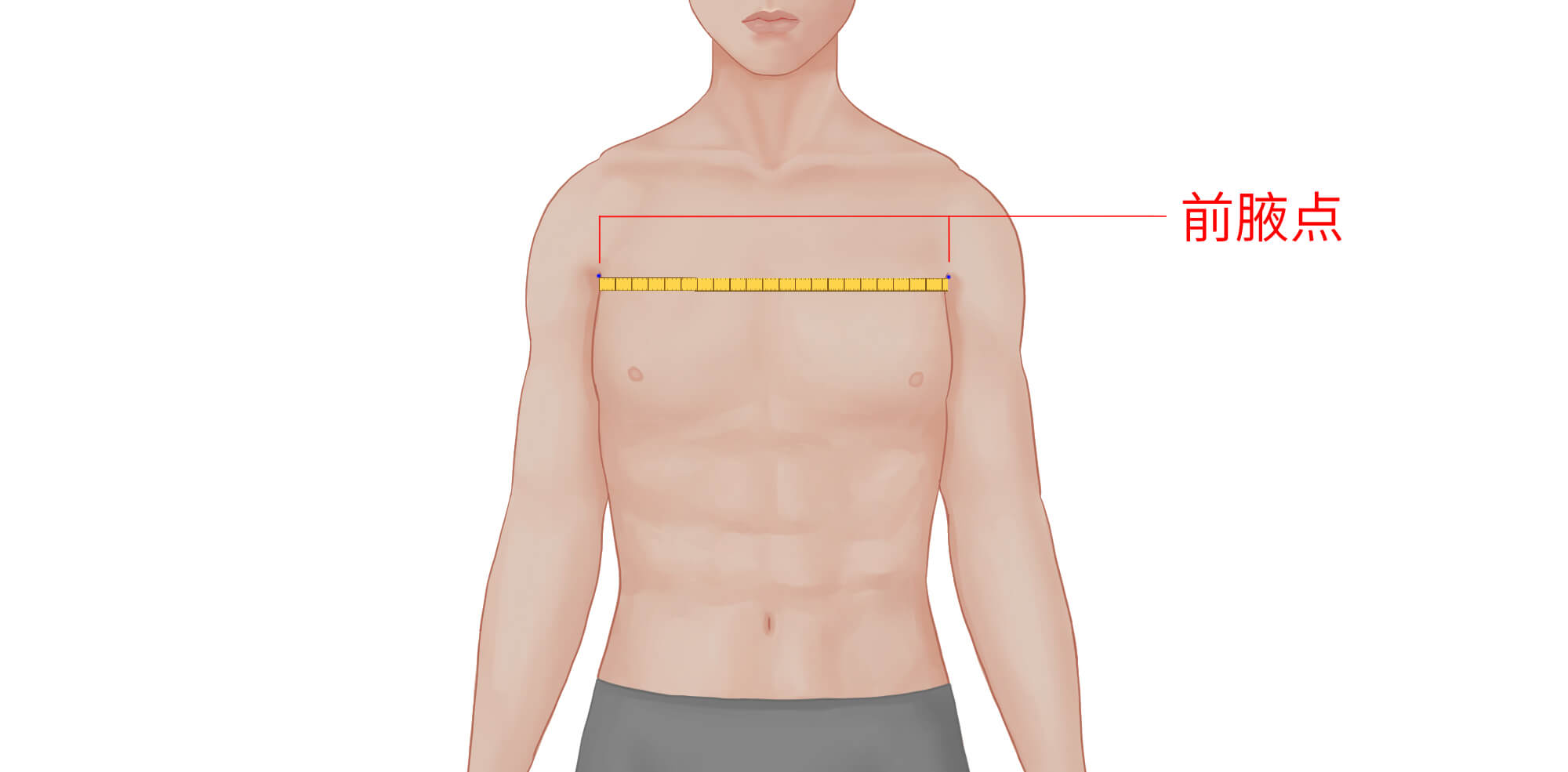 被测量者站直,在被测量者正面,用软尺,从右前腋点贴着胸部水平拉到左前腋点,测量胸宽。(从左开始或从右开始都可以)