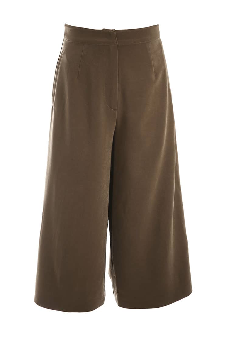 合体中腰,拉链门襟,侧边单唇竖插袋,合体七分阔腿裤廓形,可与西装外套T恤衬衫穿搭。