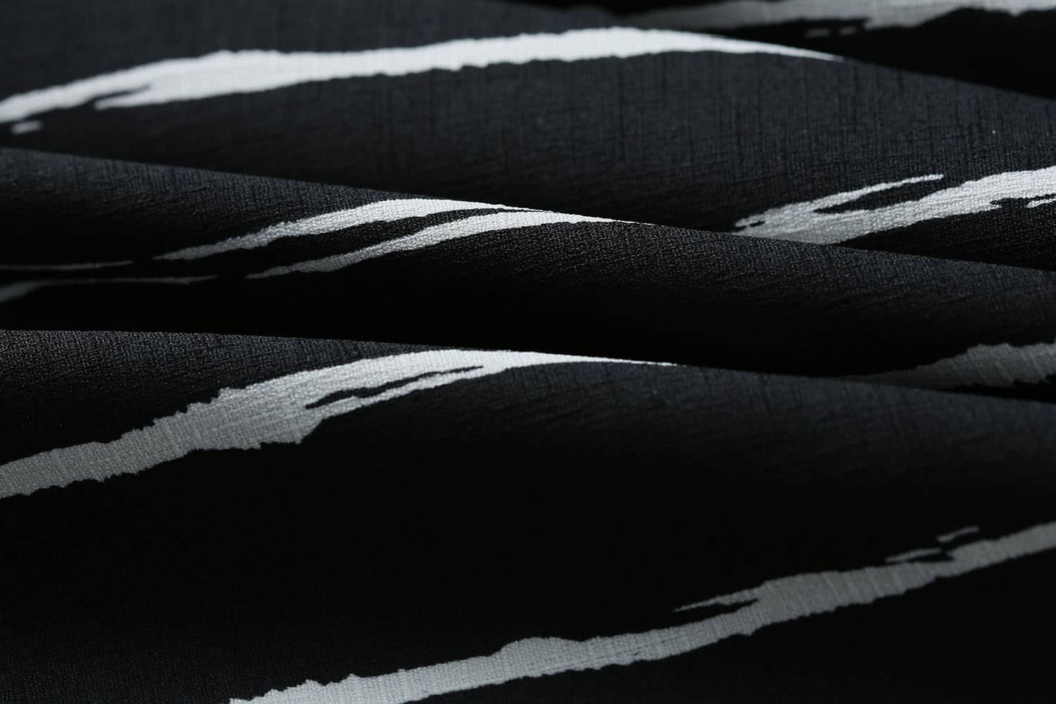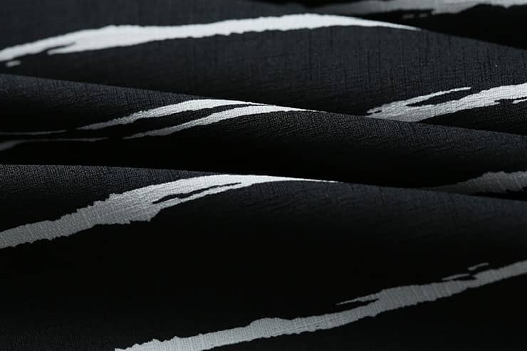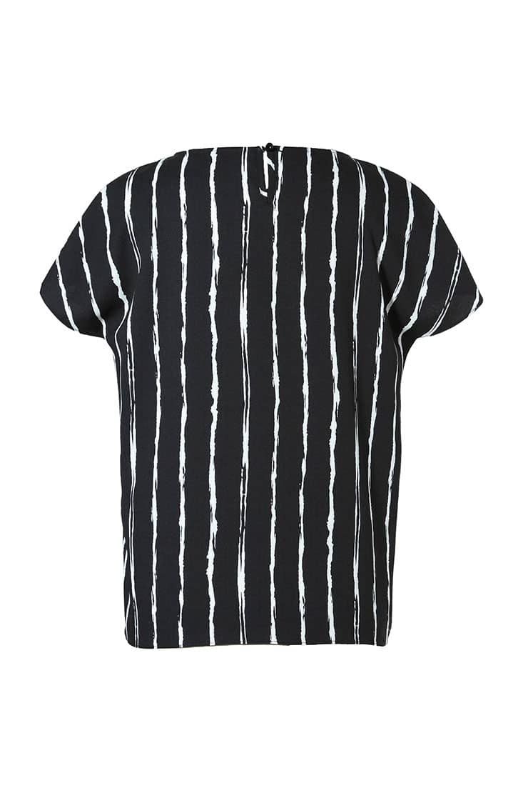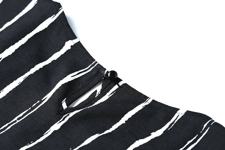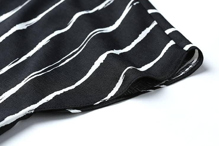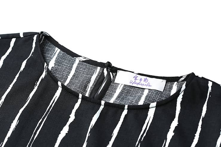 竖条纹印花面料,质感柔滑细腻,更舒适透气,搭配圆领落肩款式,修饰臂形,结构简单,时尚百搭。