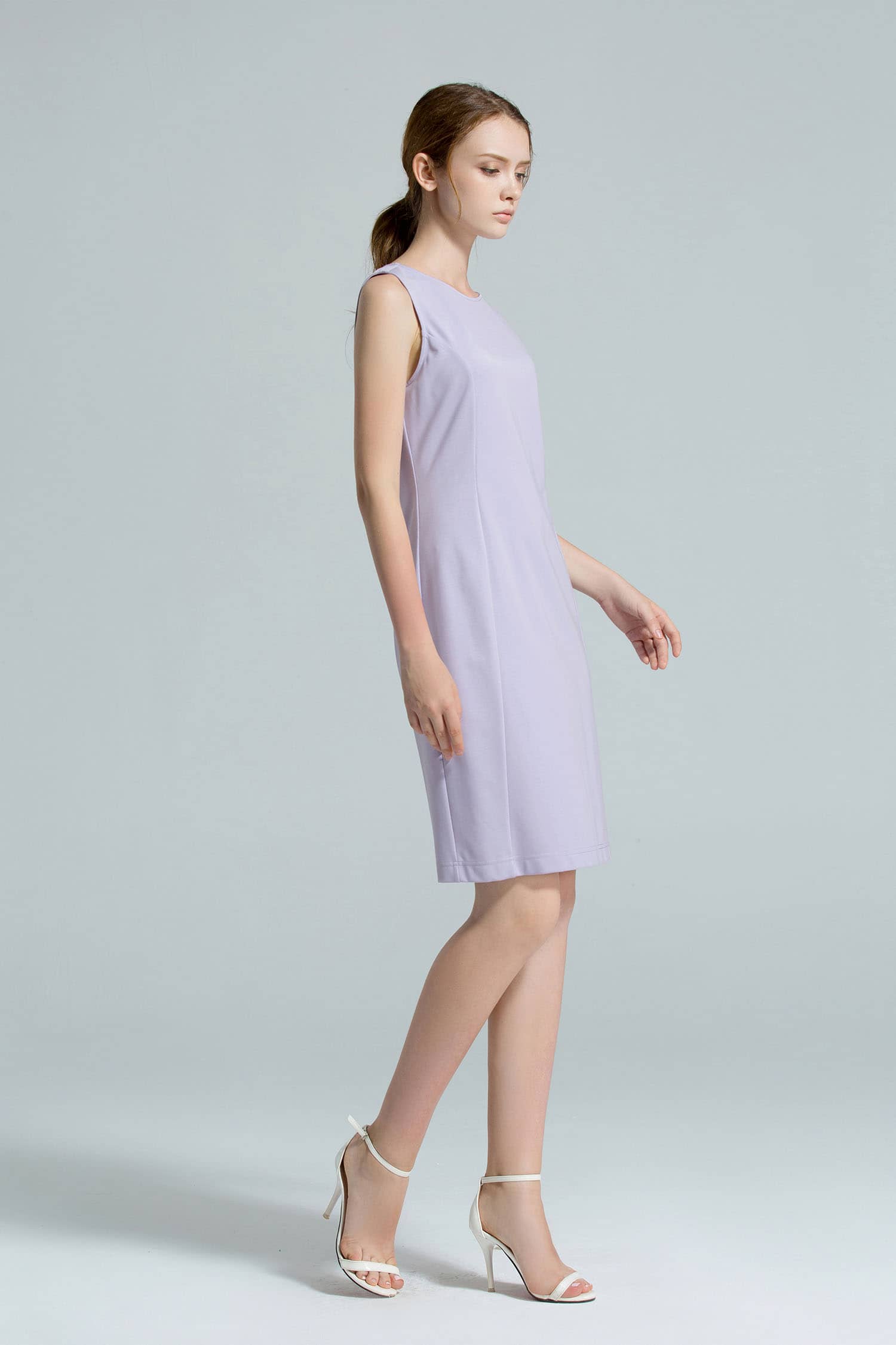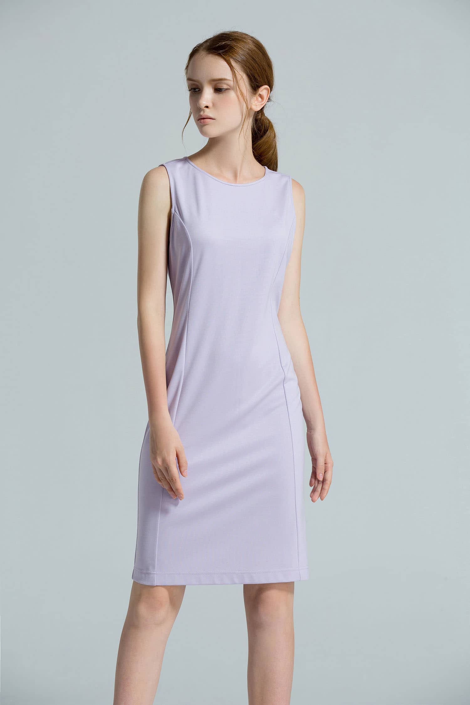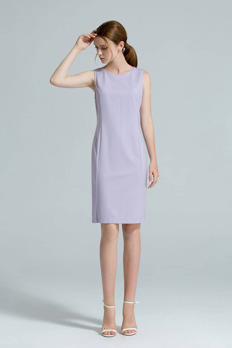 无袖圆领连衣裙