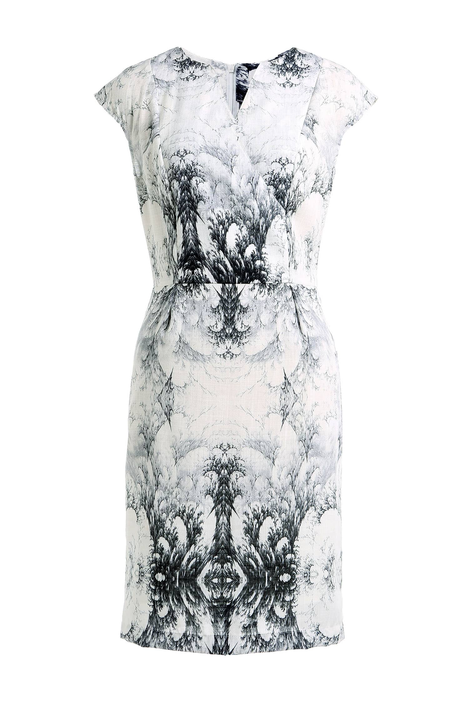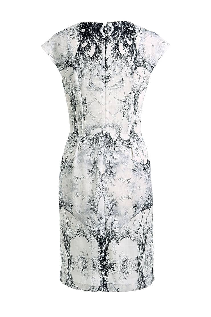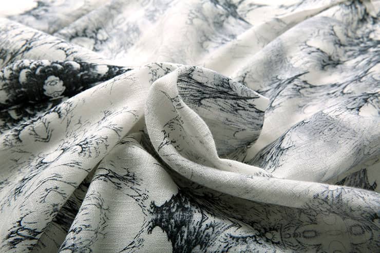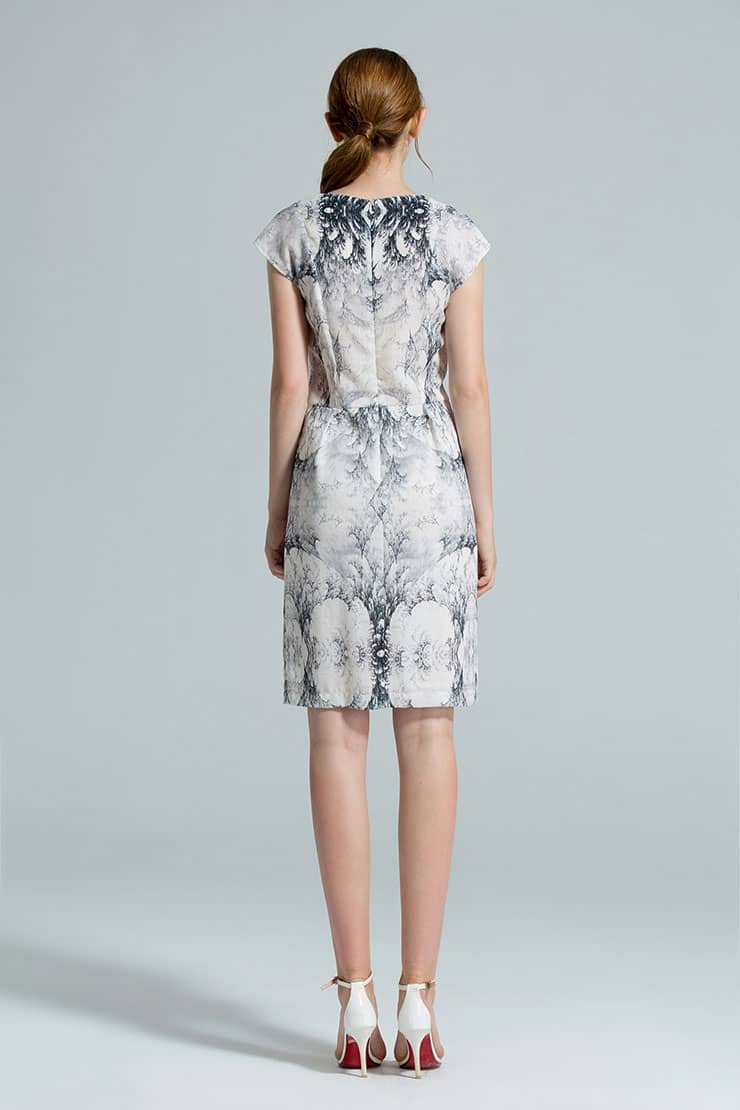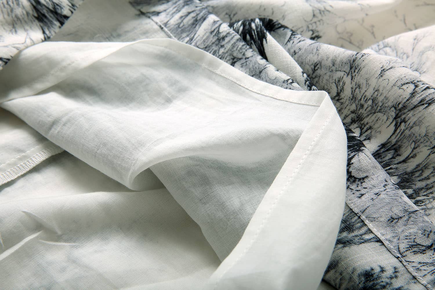 迷人的水墨印花面料,胸前交叉式小V领,连肩半袖设计,收腰版型,上身效果更好,彰显典雅复古气质。