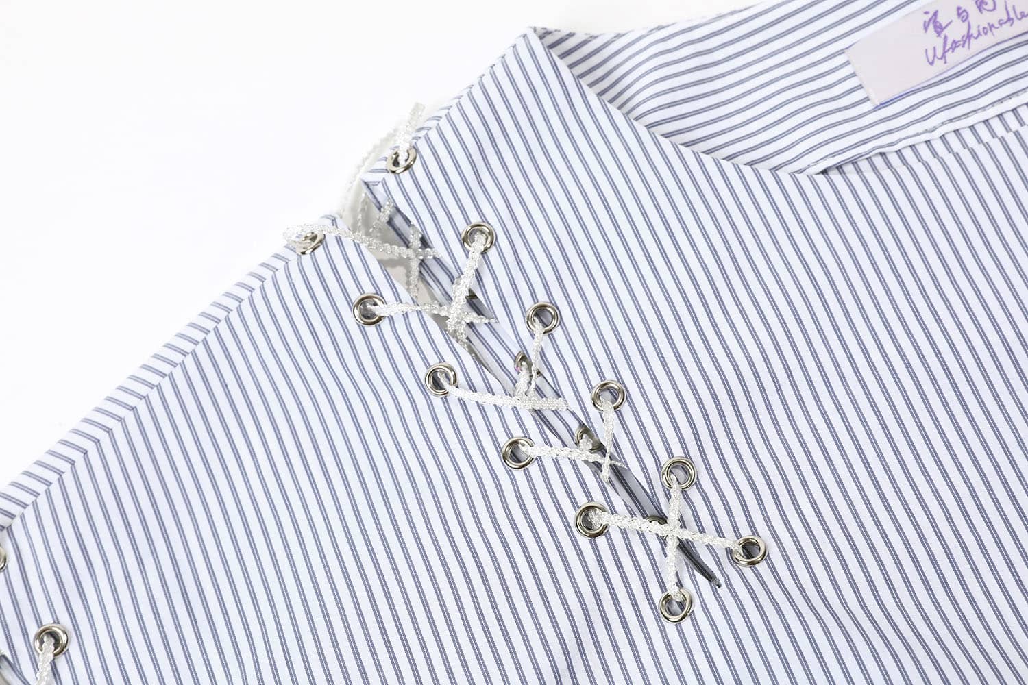 船领不对称绑带条纹衬衫