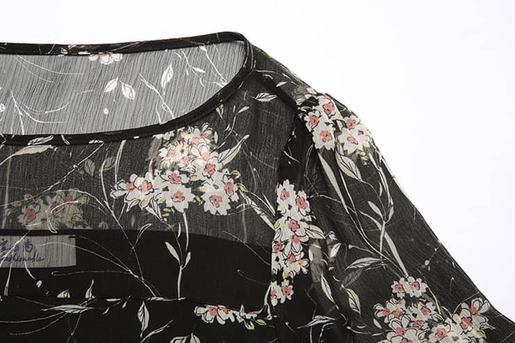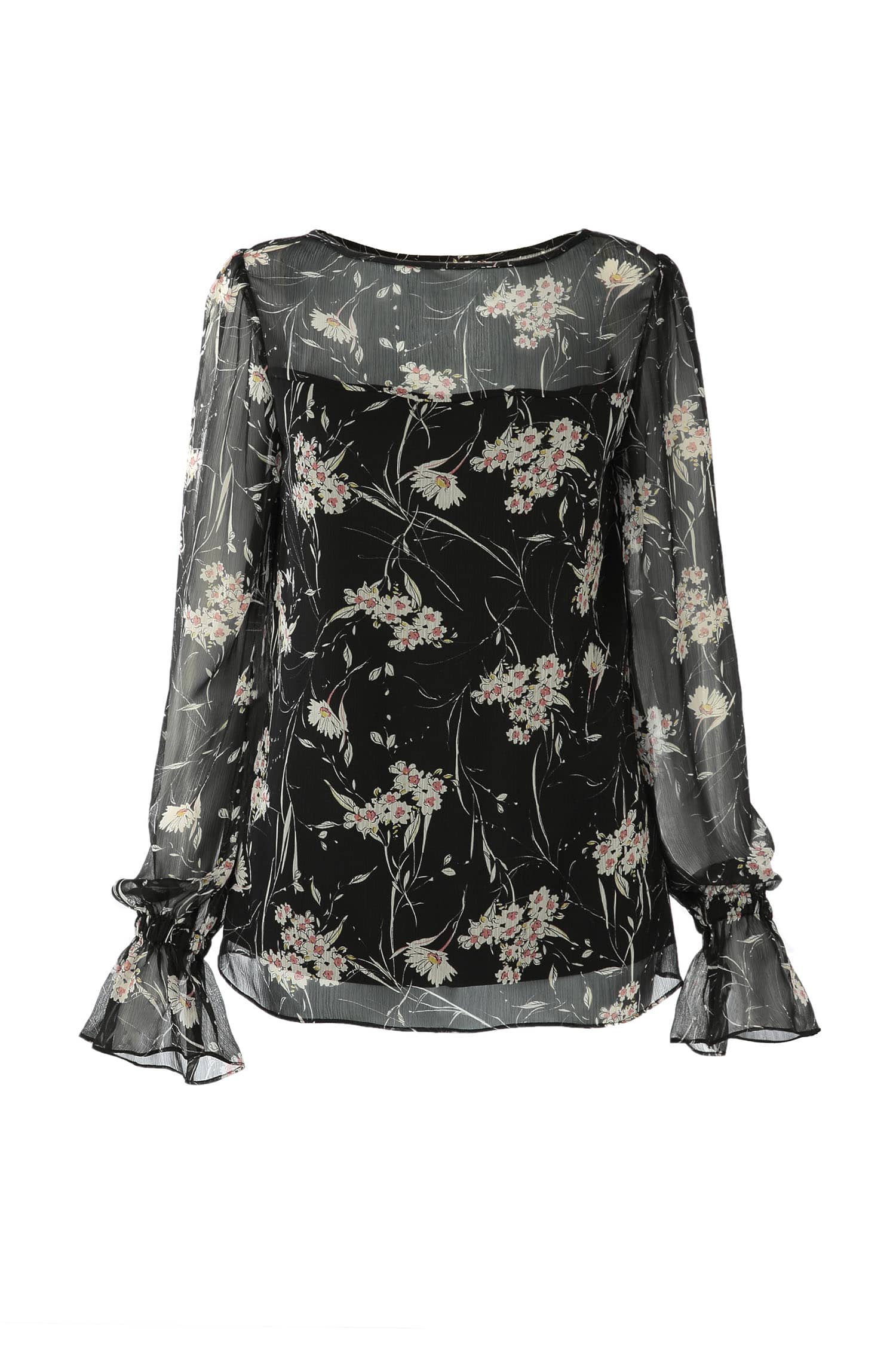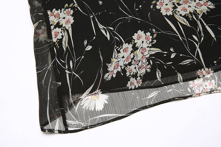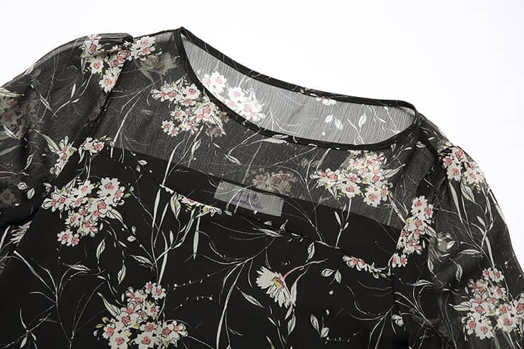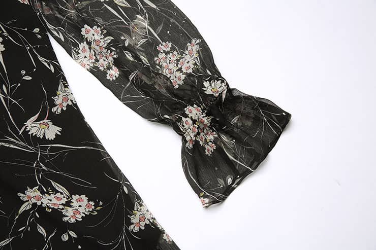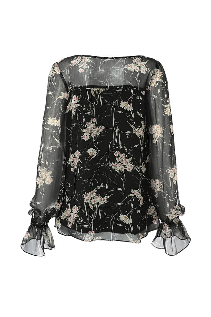 船领荷叶边长袖印花雪纺衫