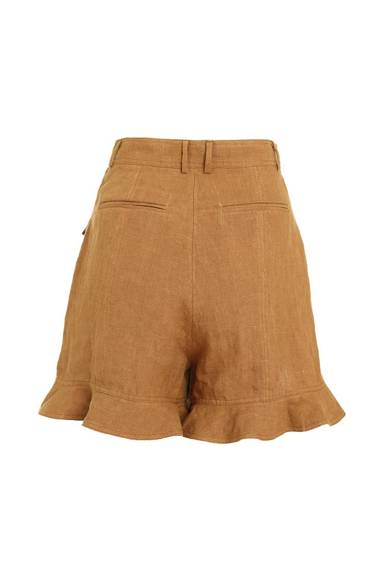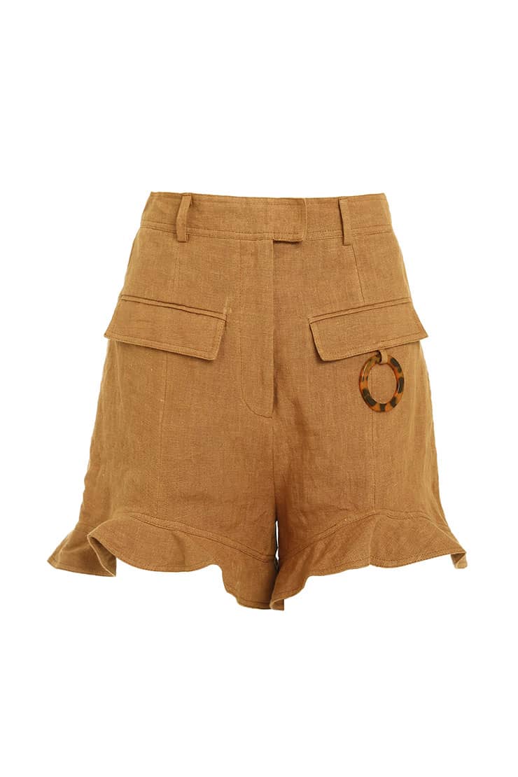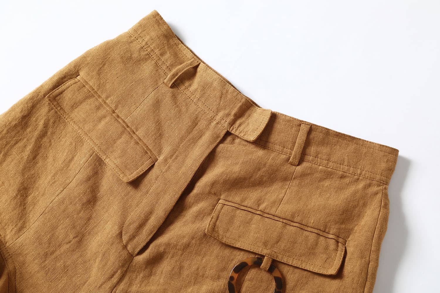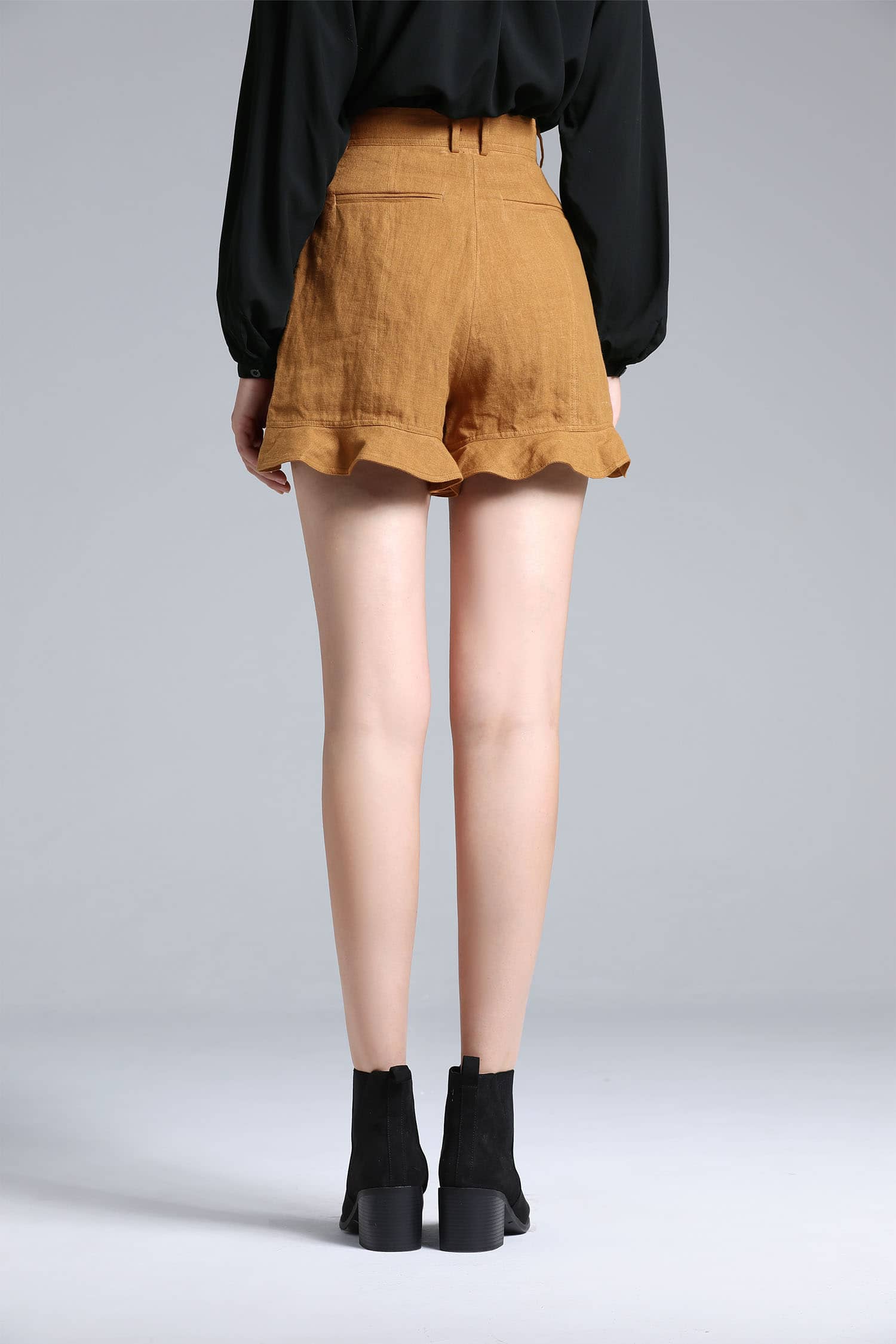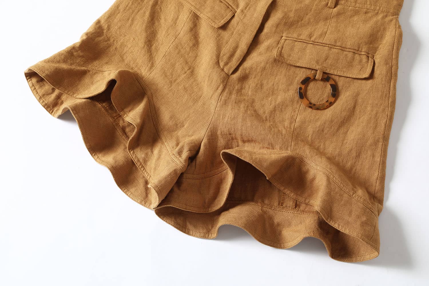 简约直腰头,拉链门襟,袋盖口袋,圆环装饰,荷叶裤边设计,令廓形更立体显瘦。