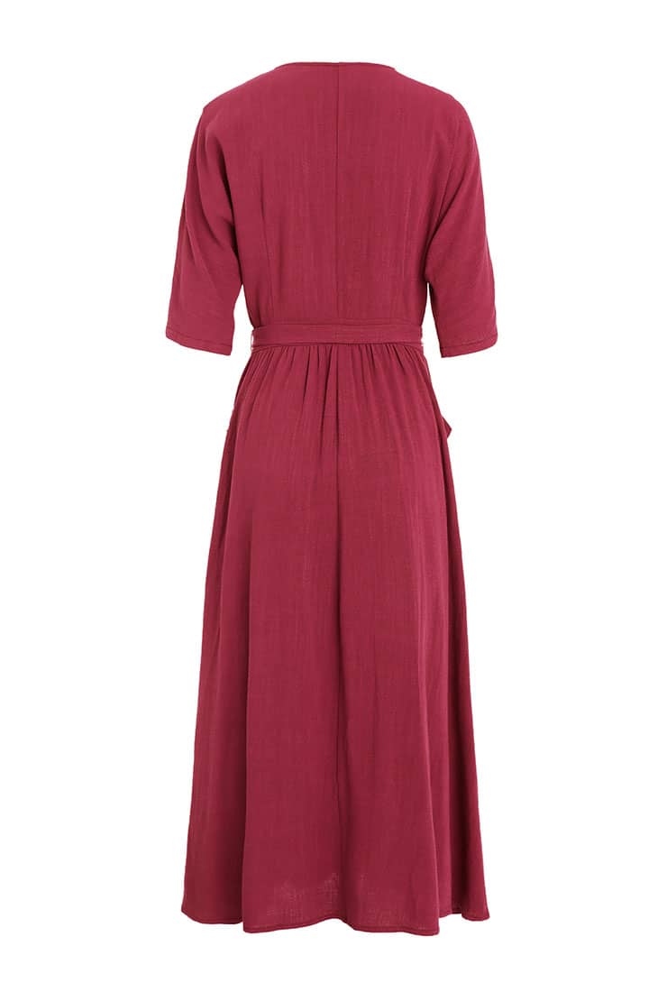 交叉V领绑腰带连衣裙