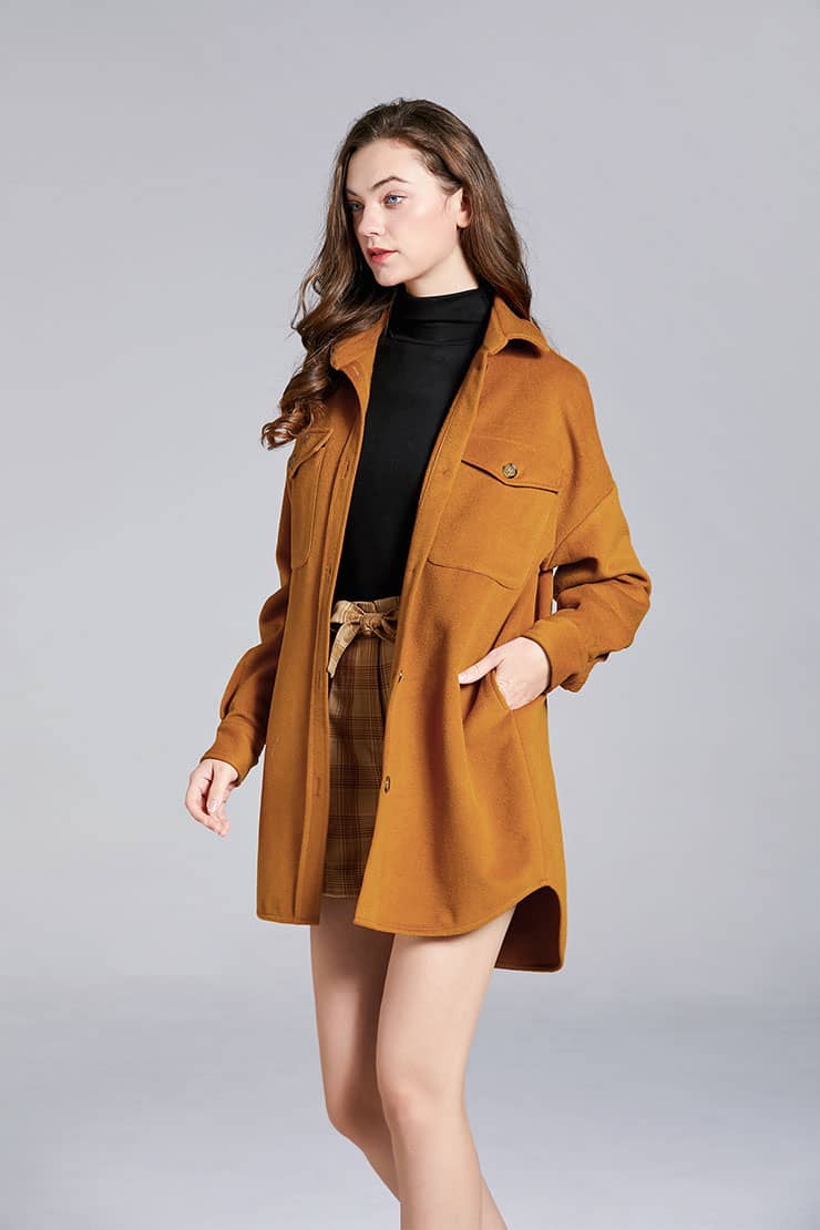 衬衫式毛呢外套