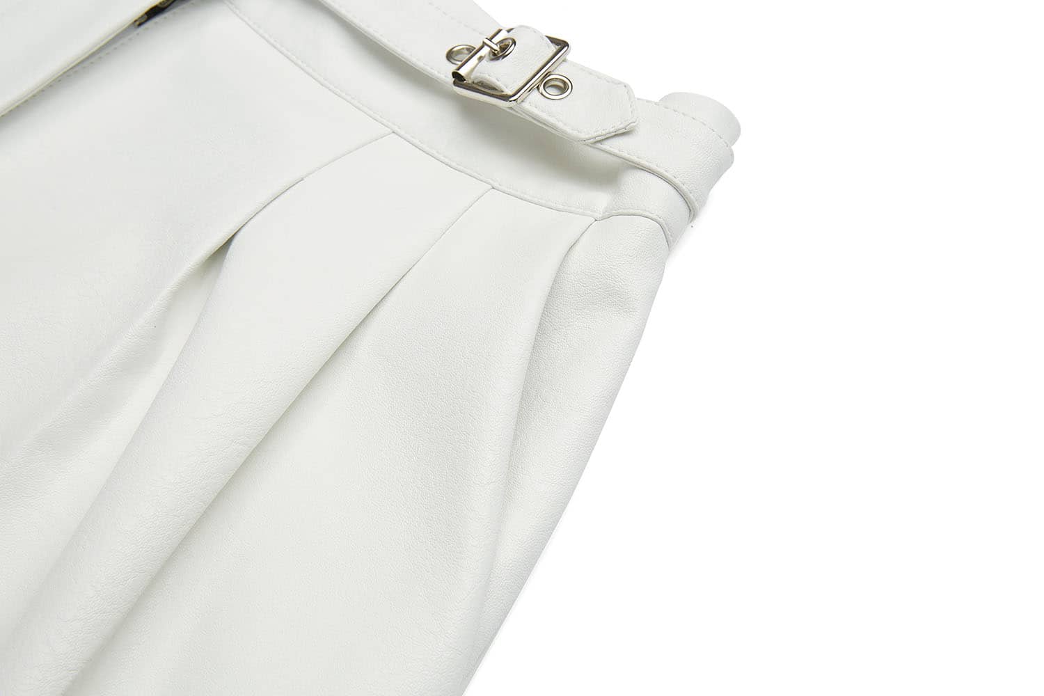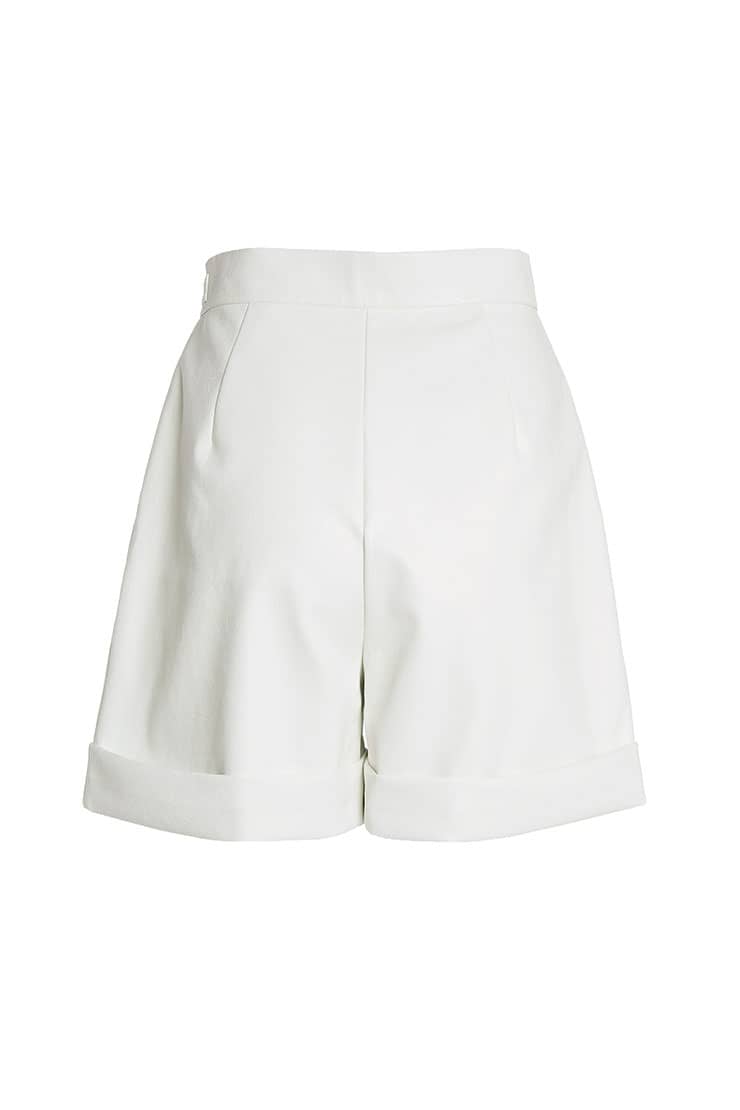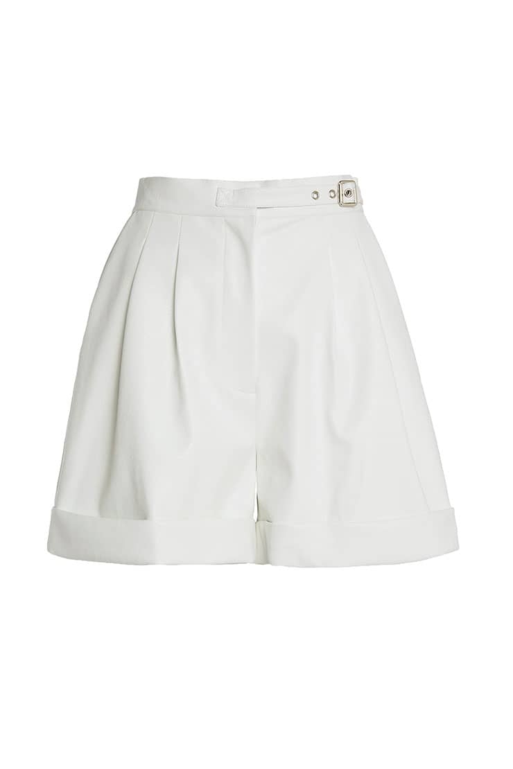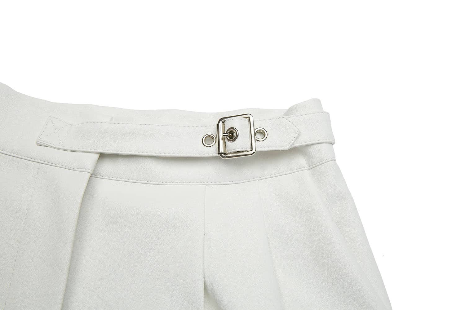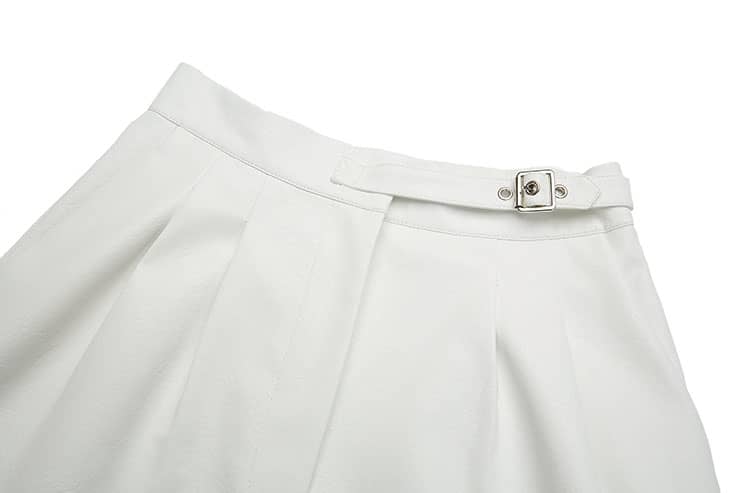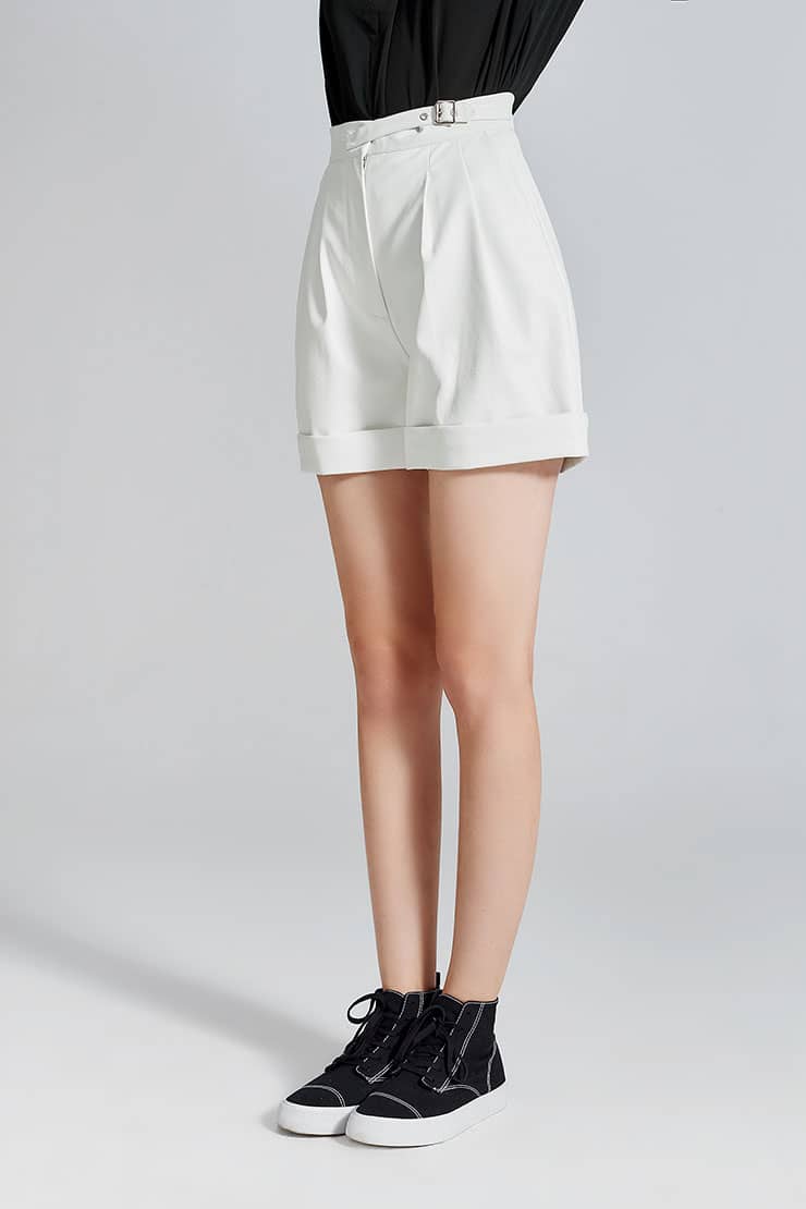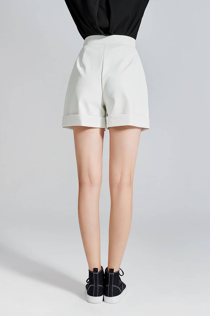 褶裥PU皮短裤