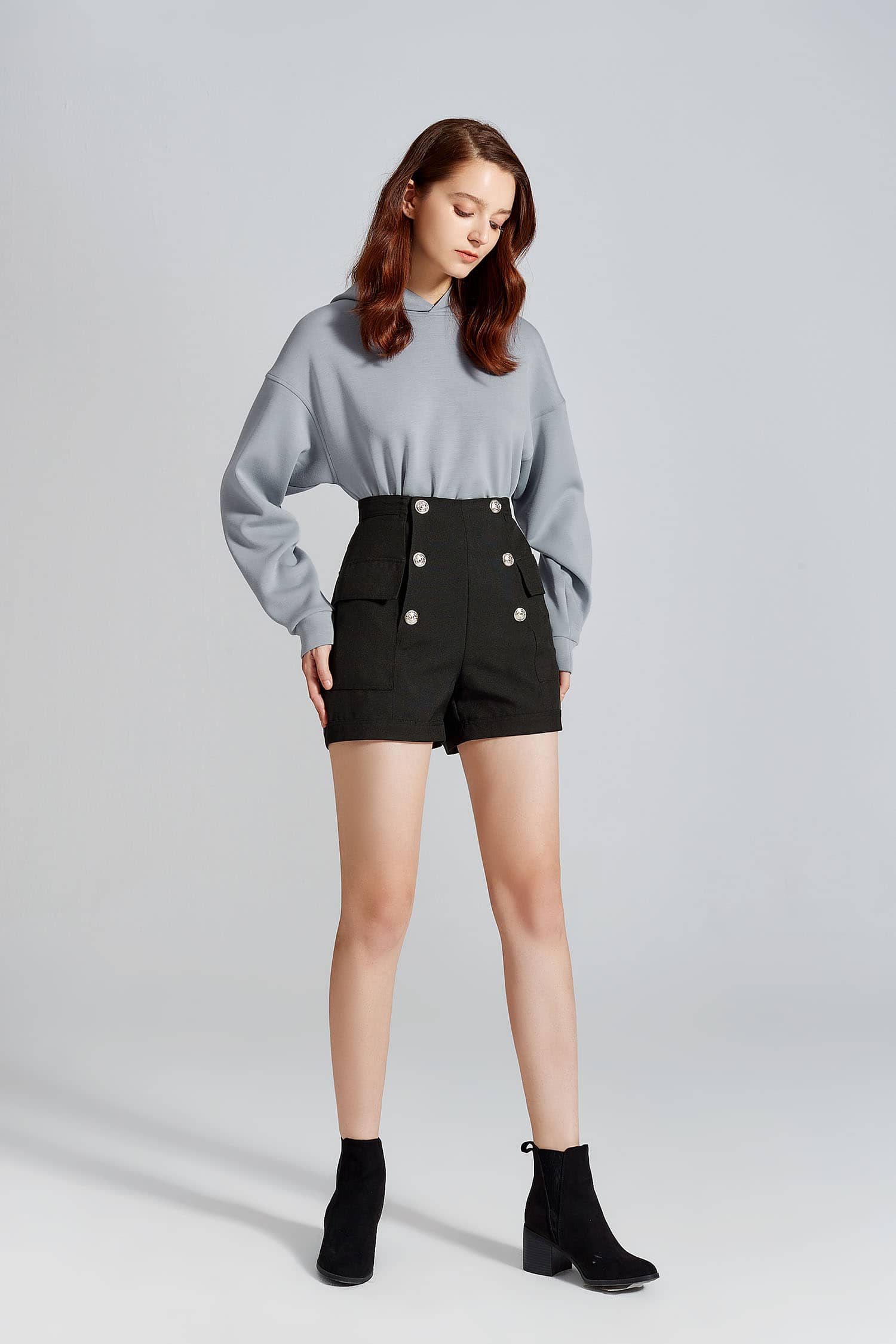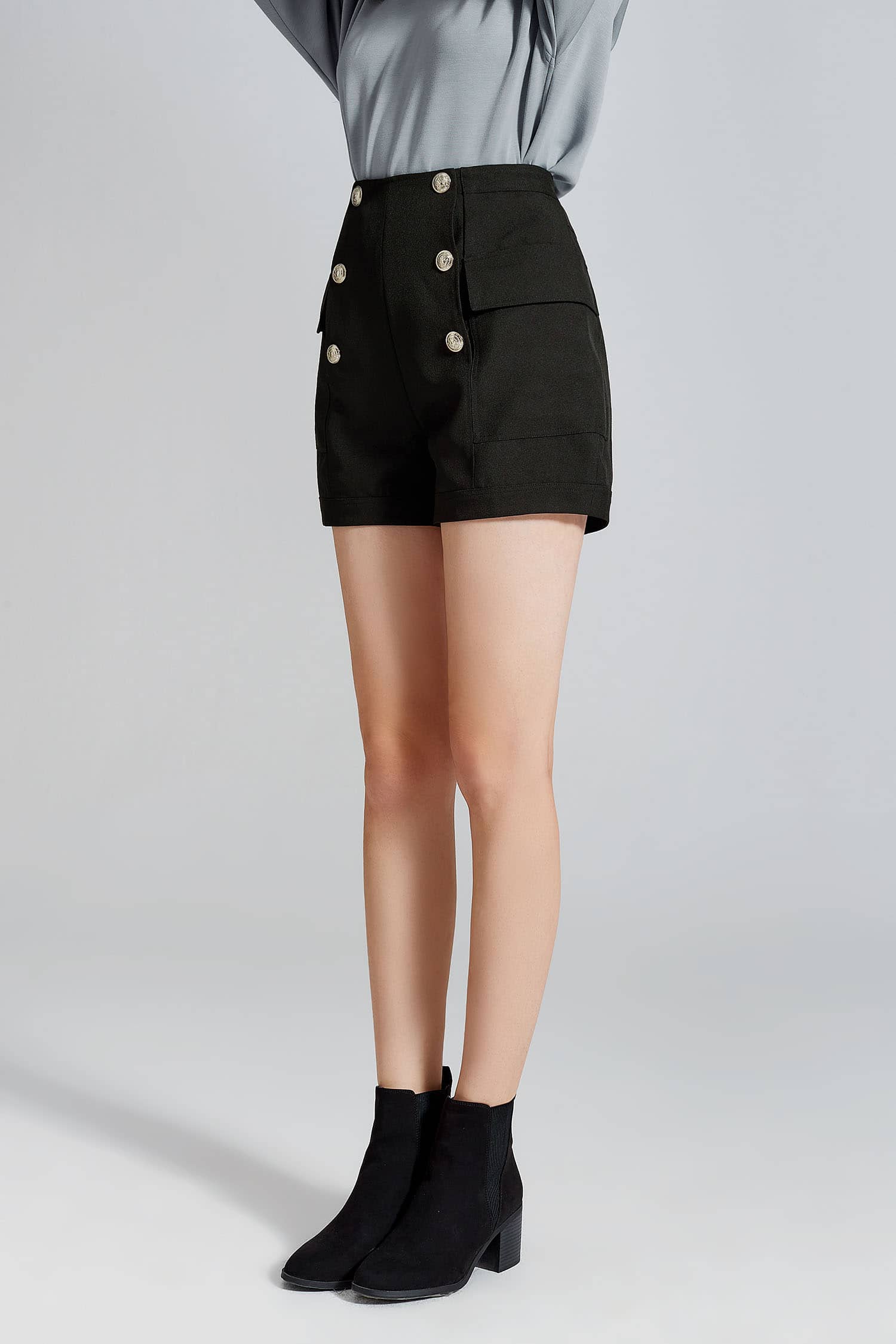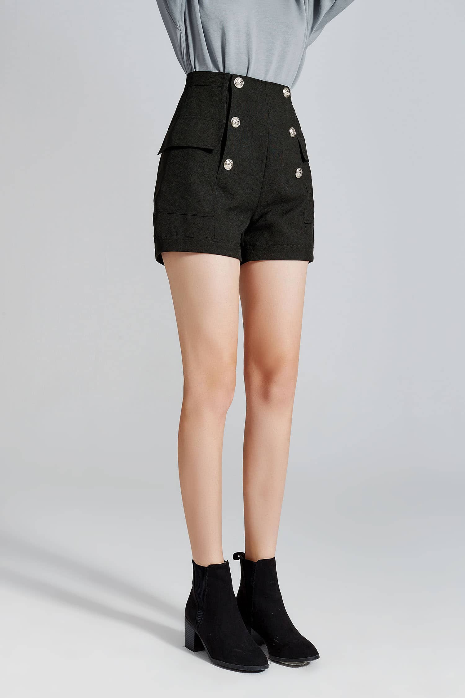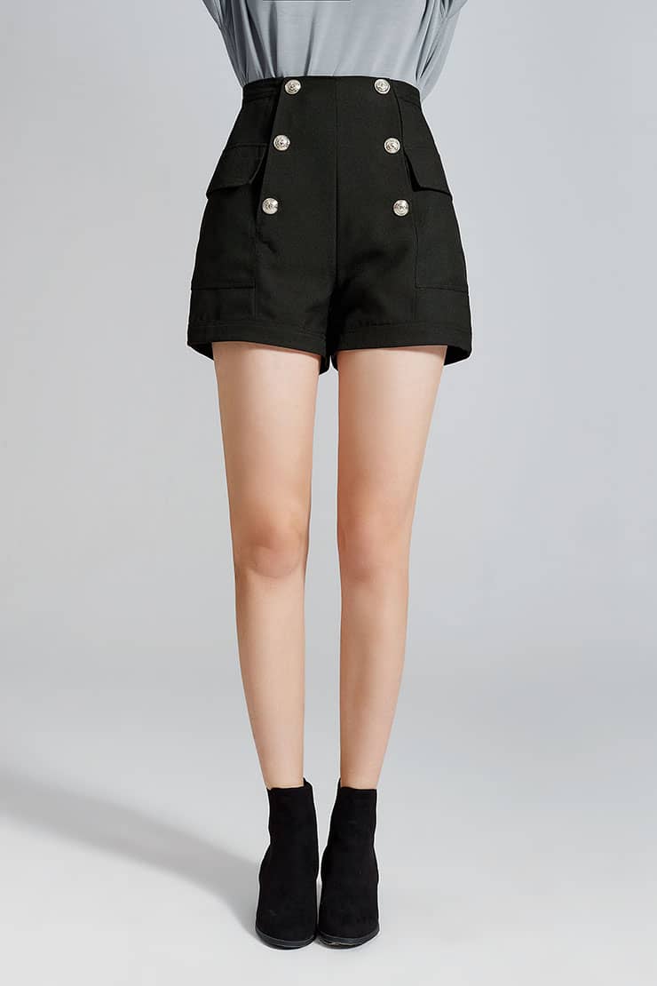 金属排扣装饰短裤