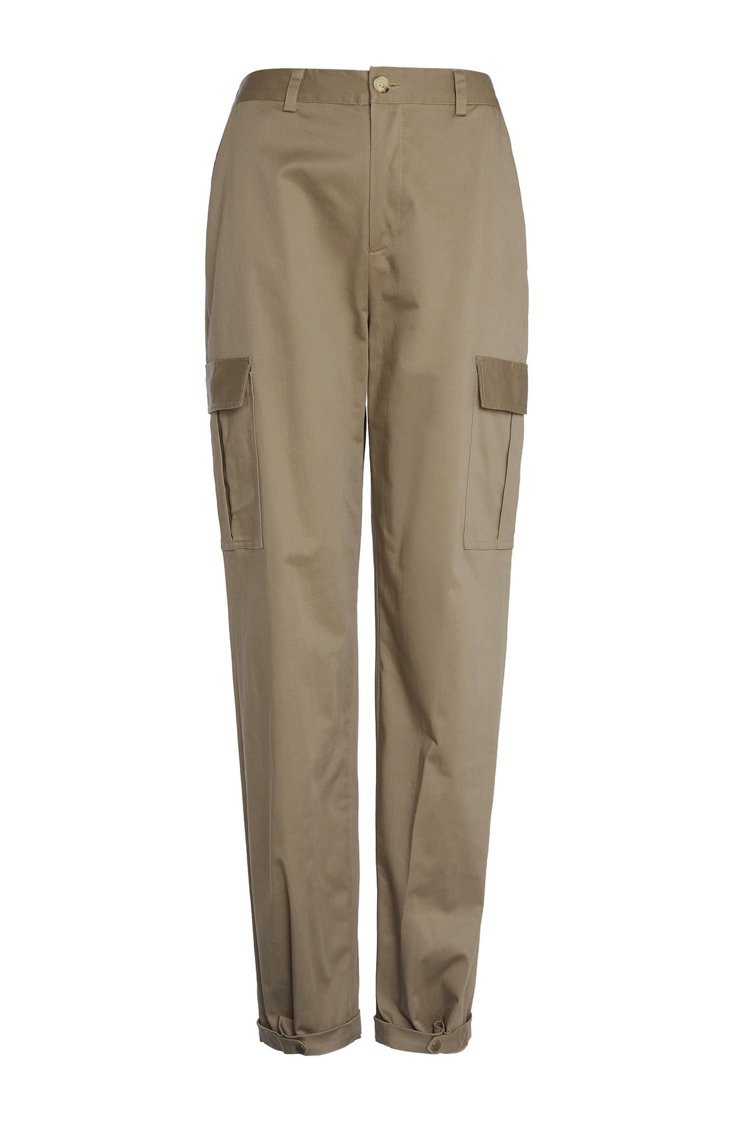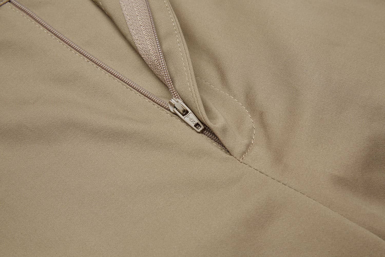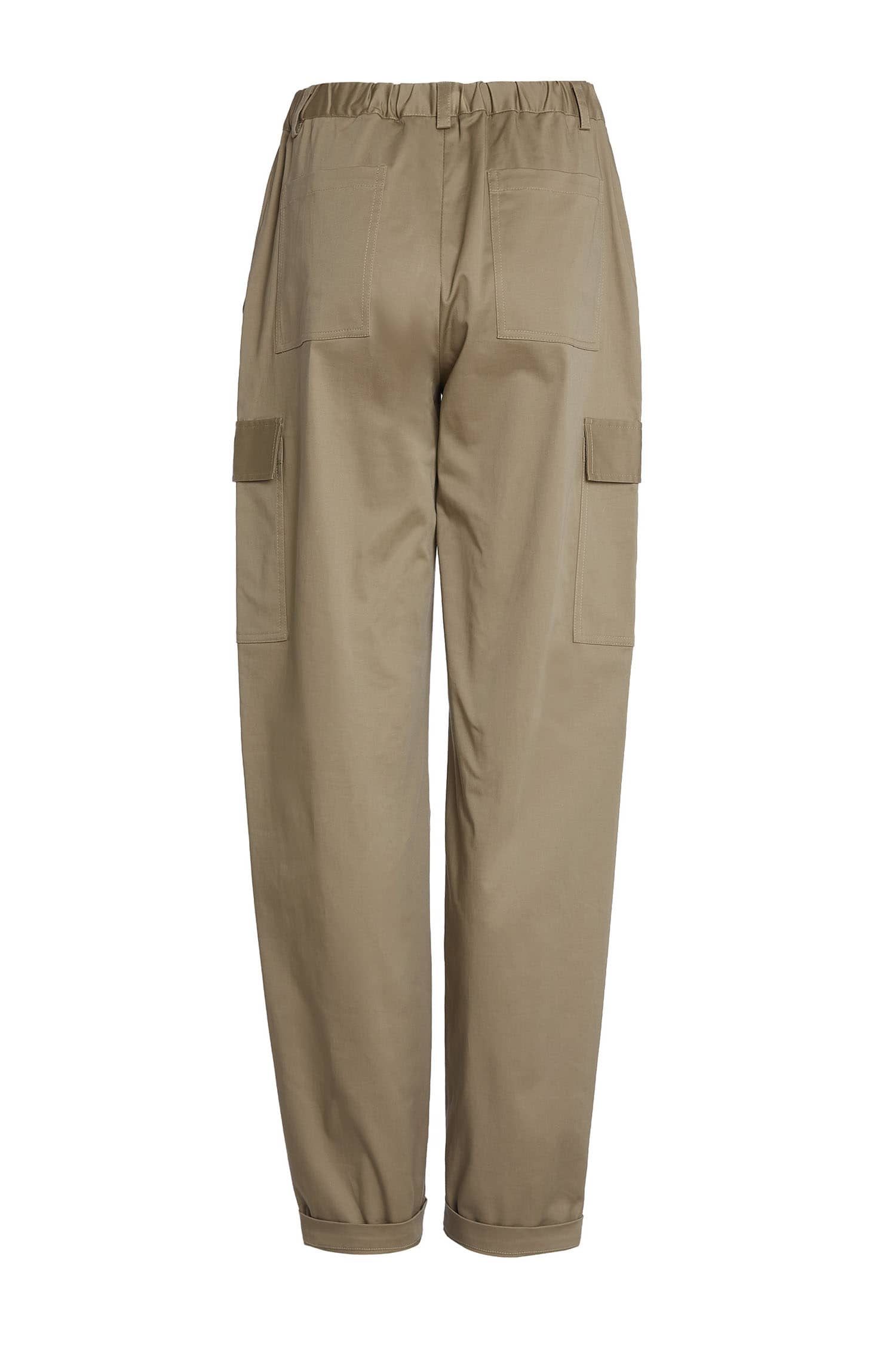 松紧调节贴体腰头,侧边斜插袋,前中纽扣拉链门襟,后幅方形贴袋,腿侧工装风翻盖大贴袋;四合扣收拢裤脚,可开合转换多种造型;过踝裤长,合体锥形廓形,时尚帅性;梭织混纺面料,手