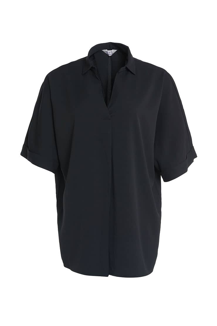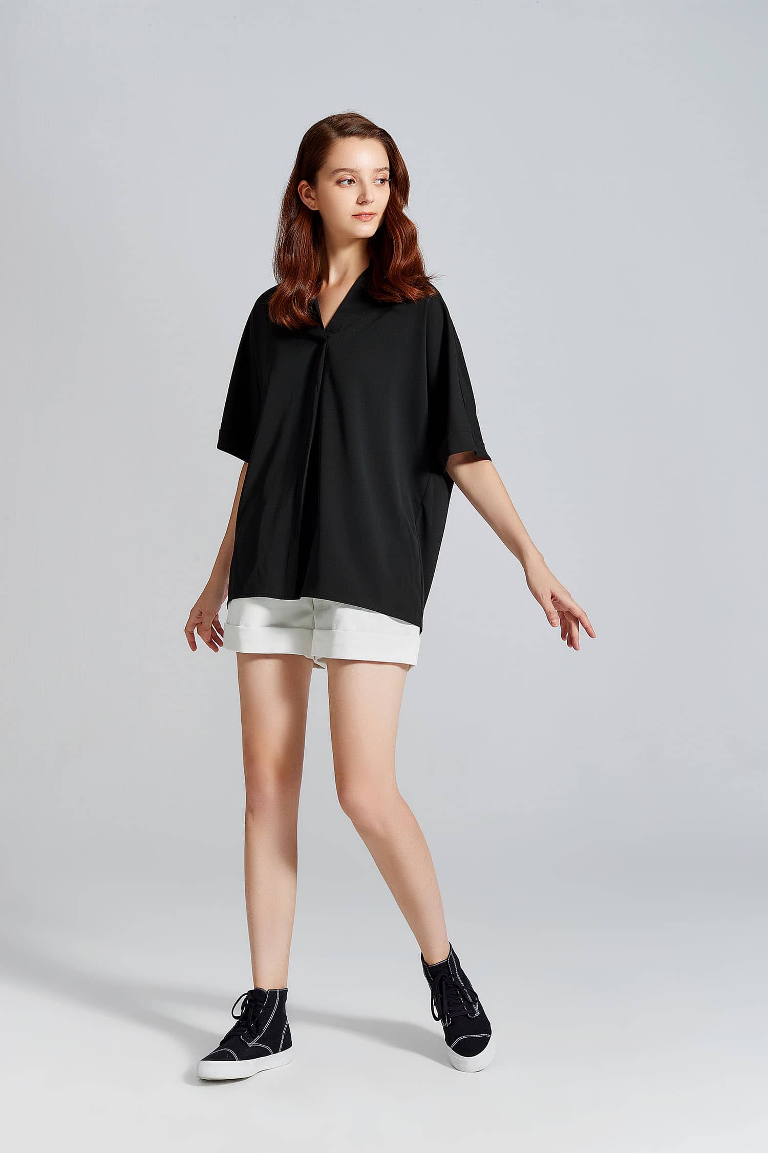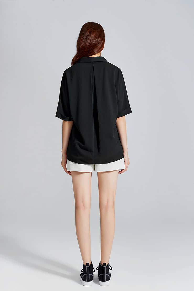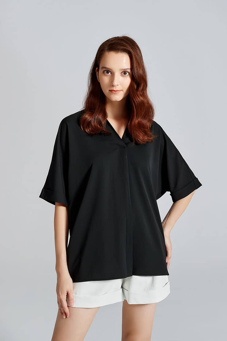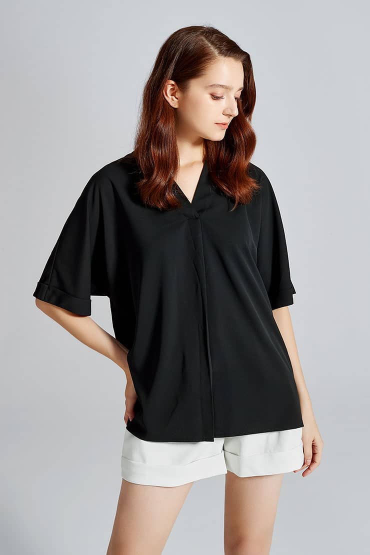 蝙蝠中袖翻领上衣