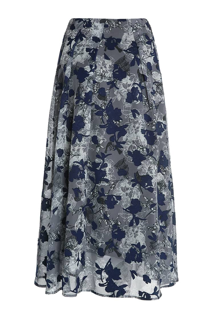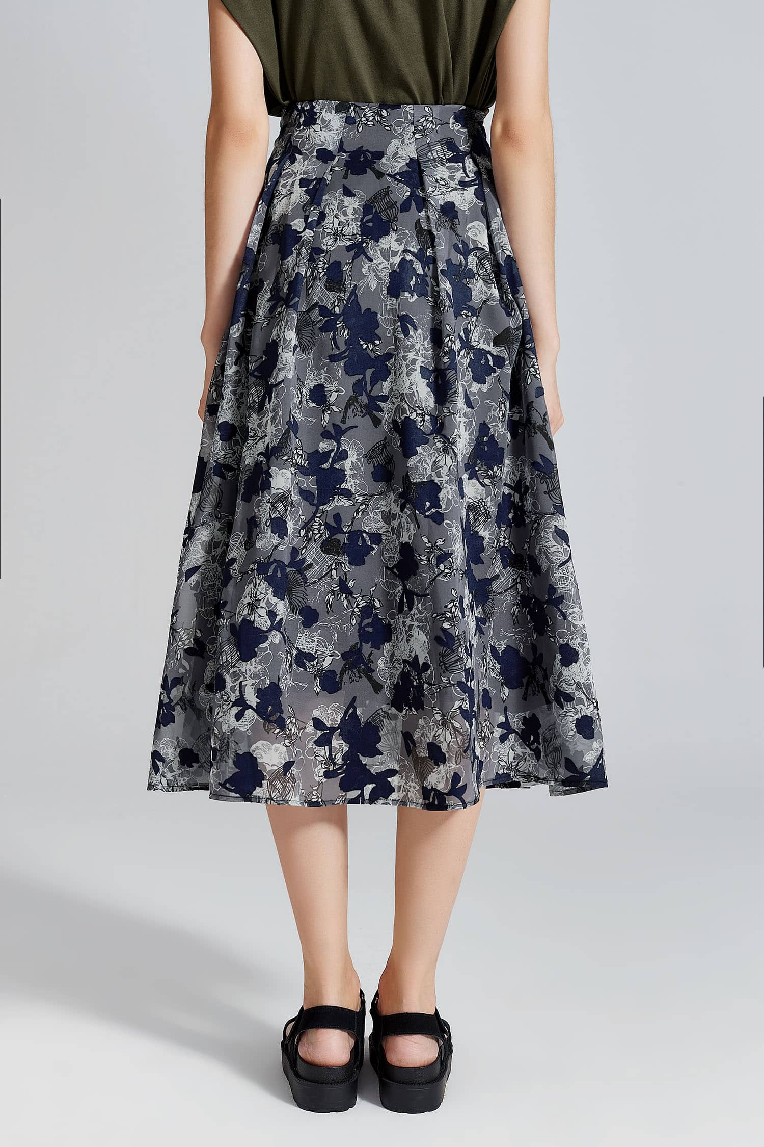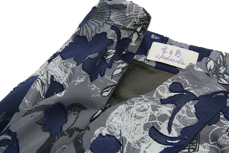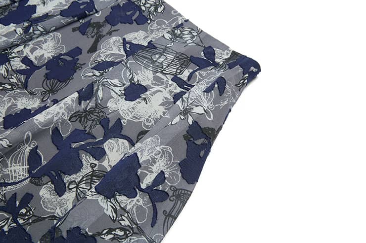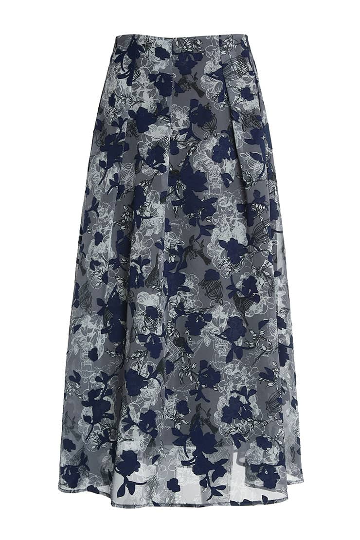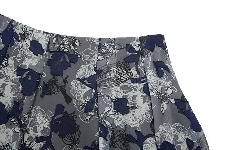 连腰高腰,右侧边拉链开襟,裙长过膝及腿肚,腰间多对褶裥,视觉层次立体,肌理感烧花欧根纱面料,更显灵动俏皮;一年四季可穿的半裙,上身立体有型。
