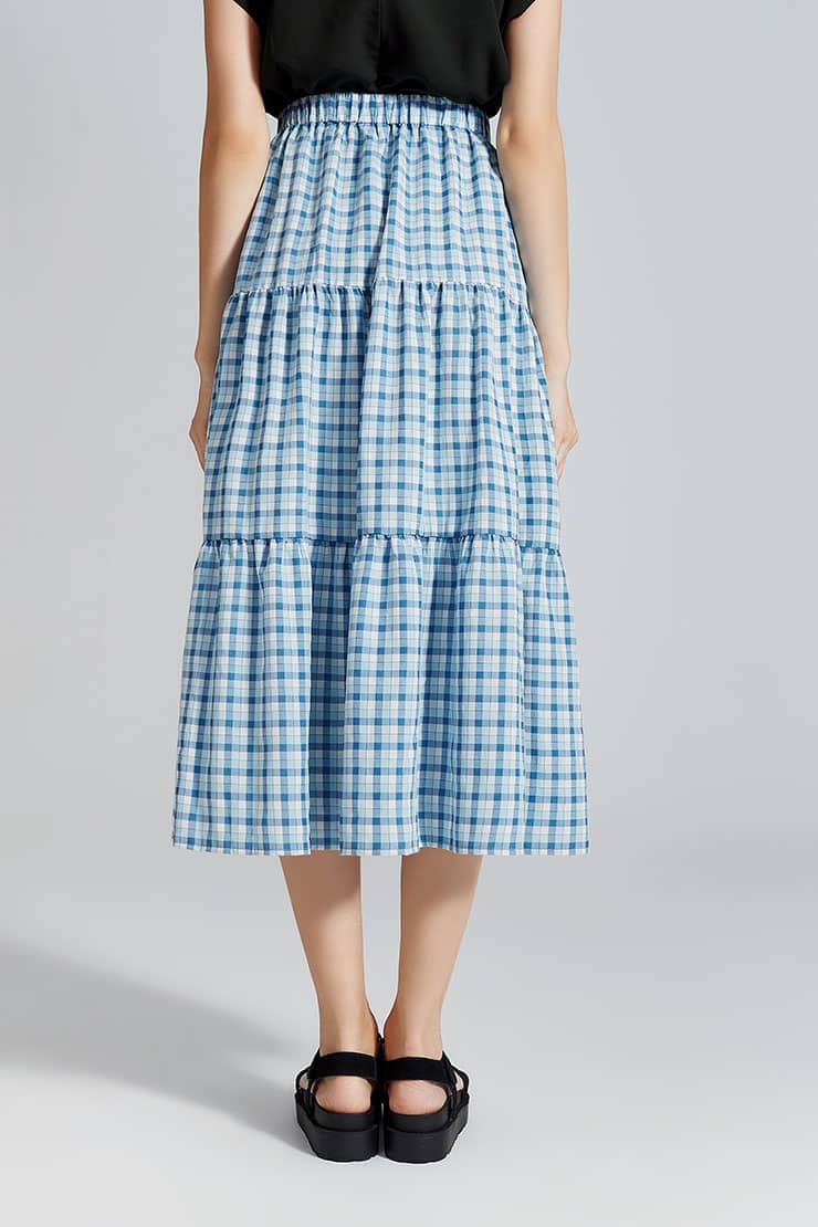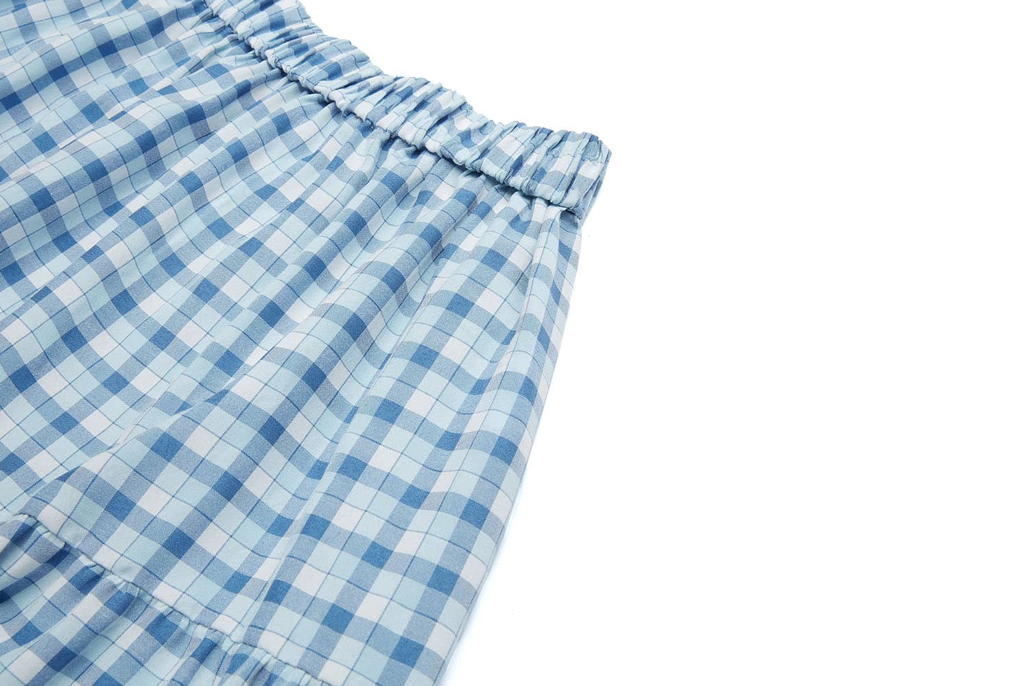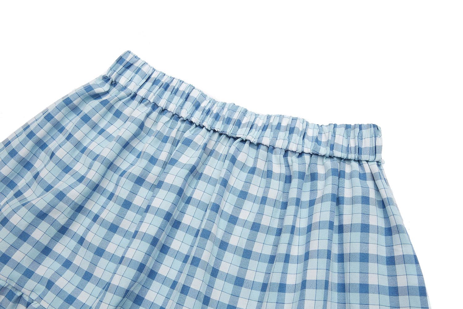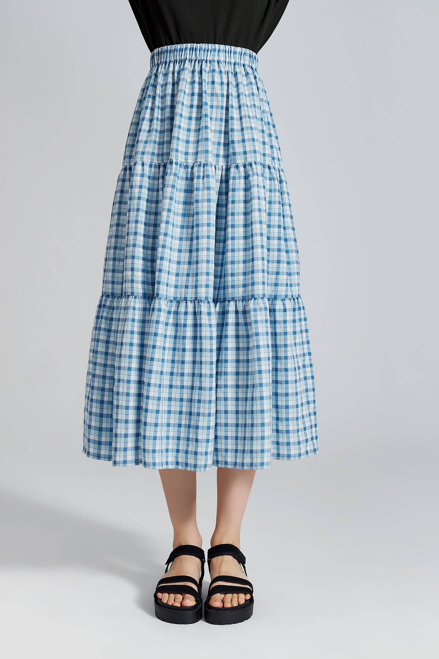 松紧直腰头,舒适易穿;蛋糕裙裙长过膝及腿肚,层次波浪裙摆,飘逸灵动;清晰格纹,面料柔软,穿着舒适百搭。