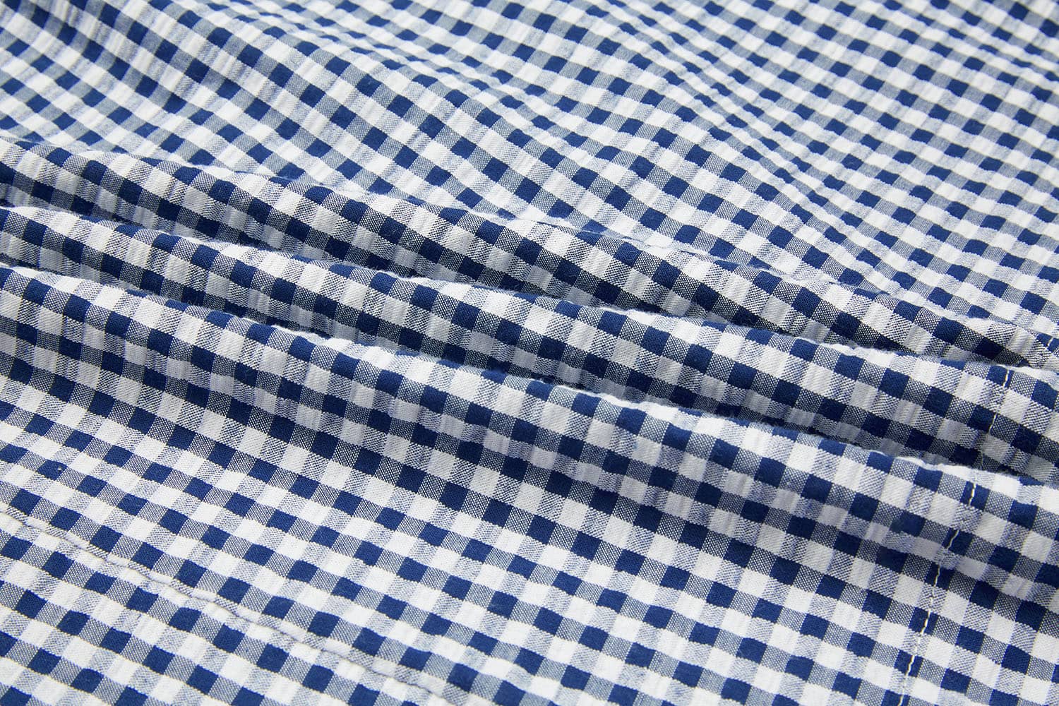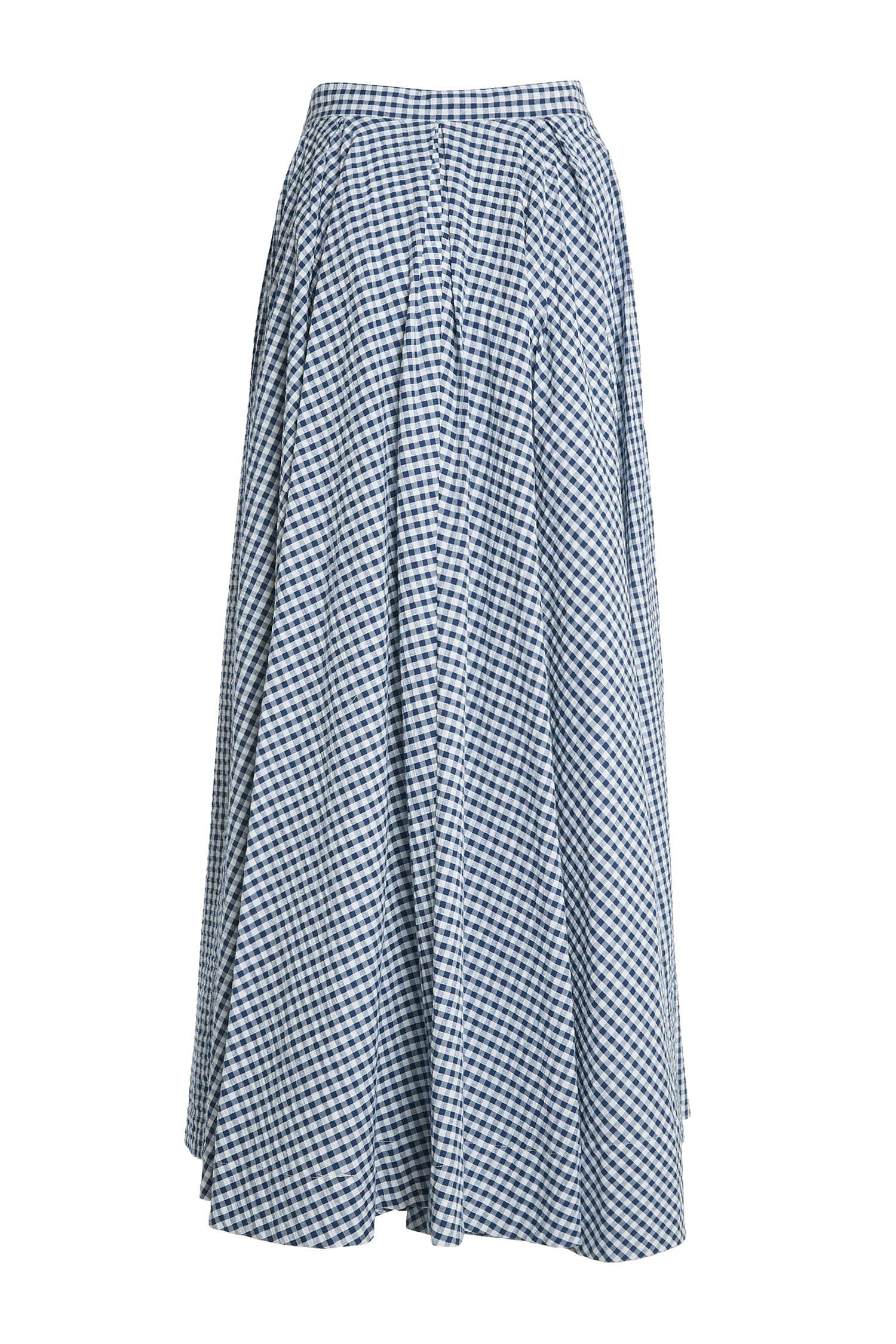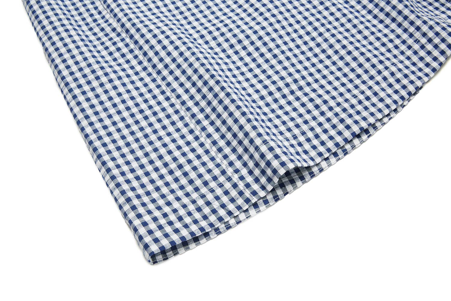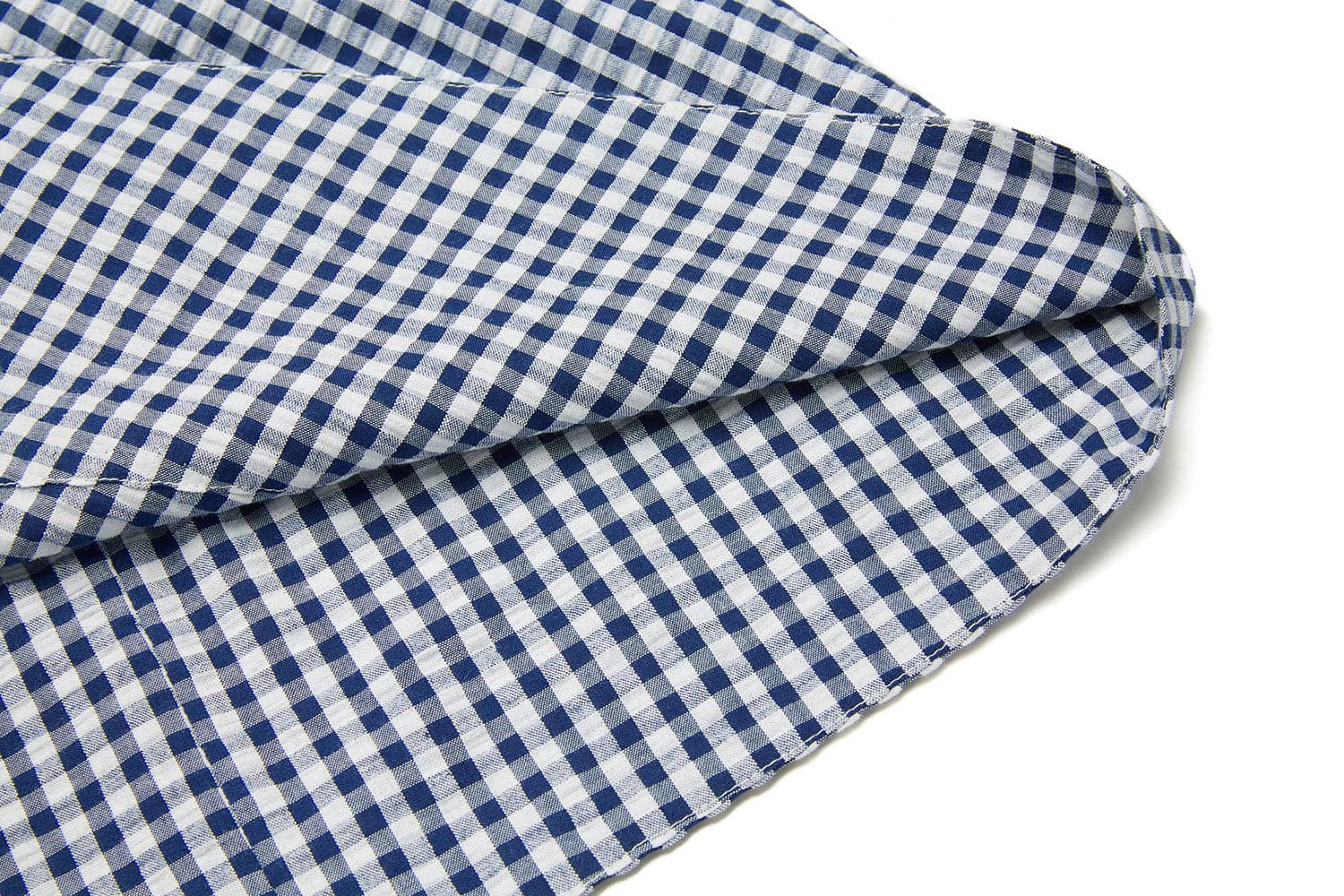 简约直腰头,侧边隐形拉链,裙长过腿肚;波浪斜裙加多个A形工字褶,裙摆波浪层次立体,线条丰富有型;全棉格纹面料,清纯个性,舒展自然。