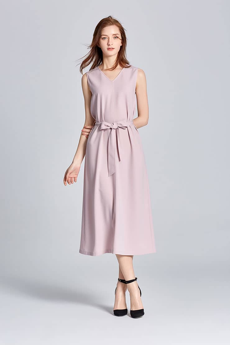 V领套头绑带无袖连衣裙