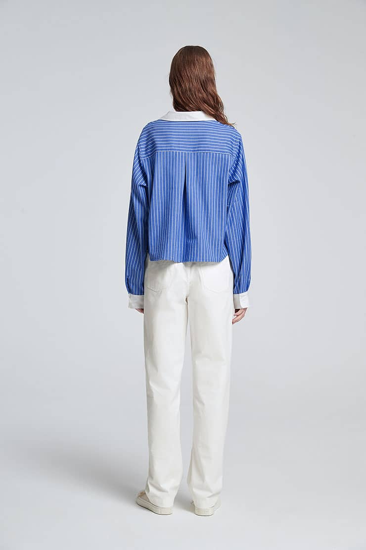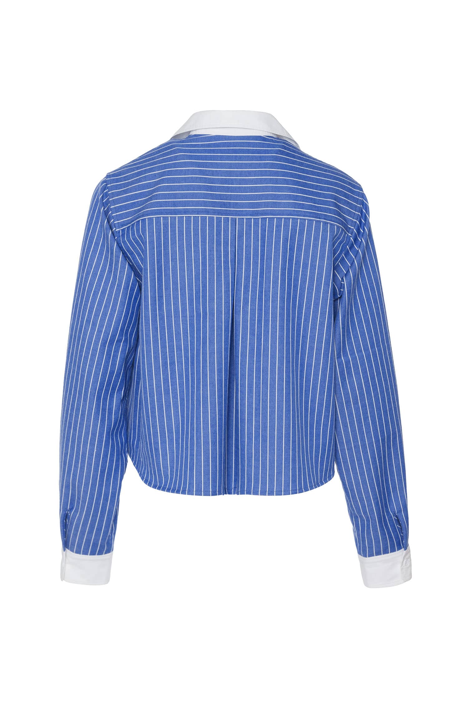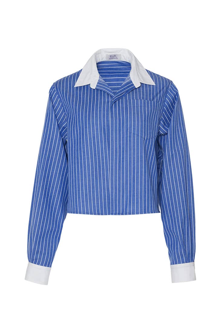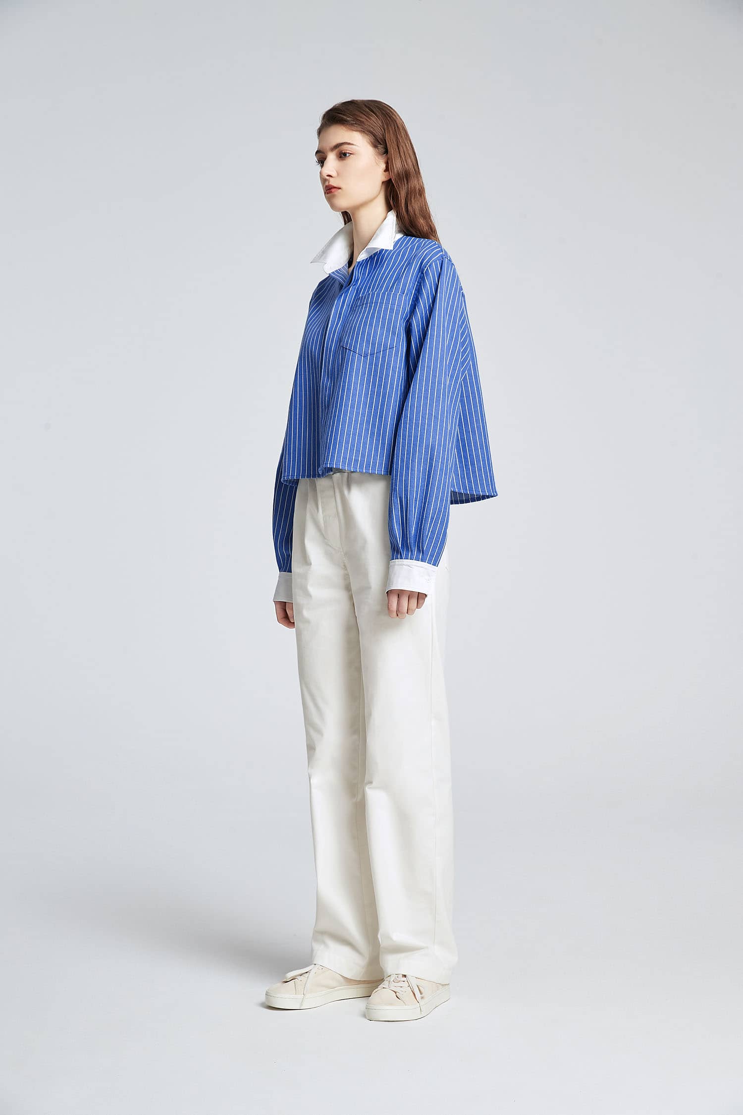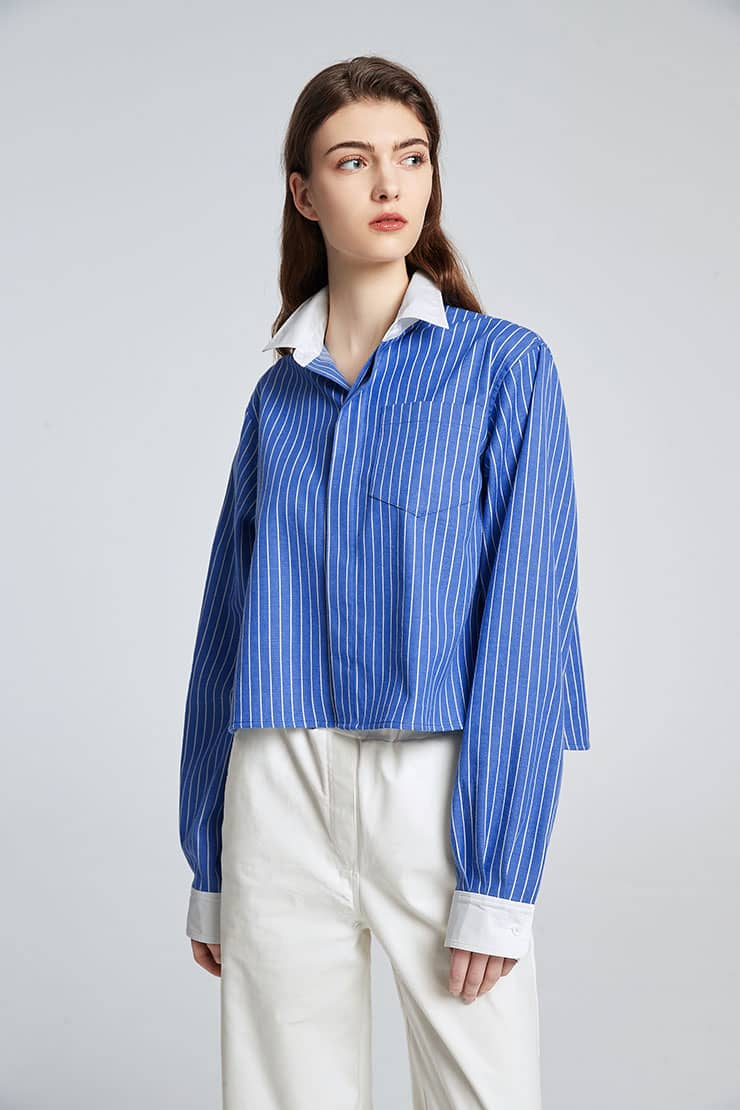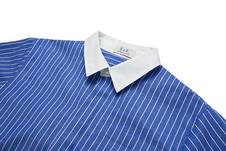 翻领和袖口用撞色拼接,增添视觉冲击;左贴胸袋设计,挺阔有型;活泼短款廓形,时尚百搭。