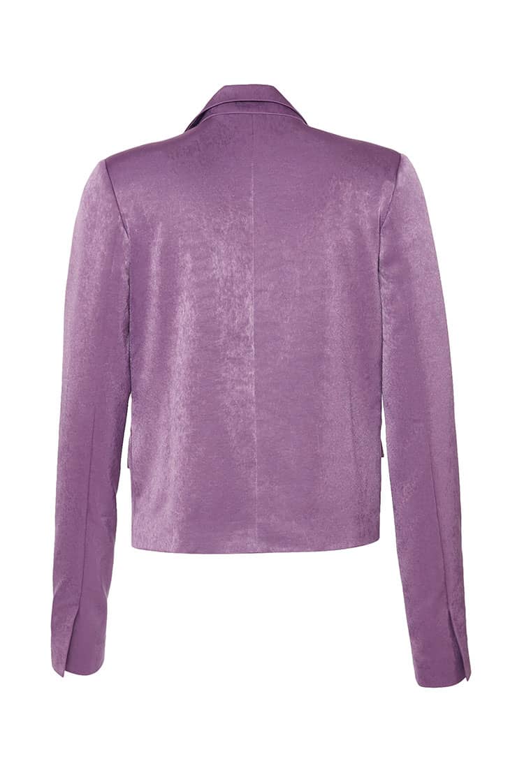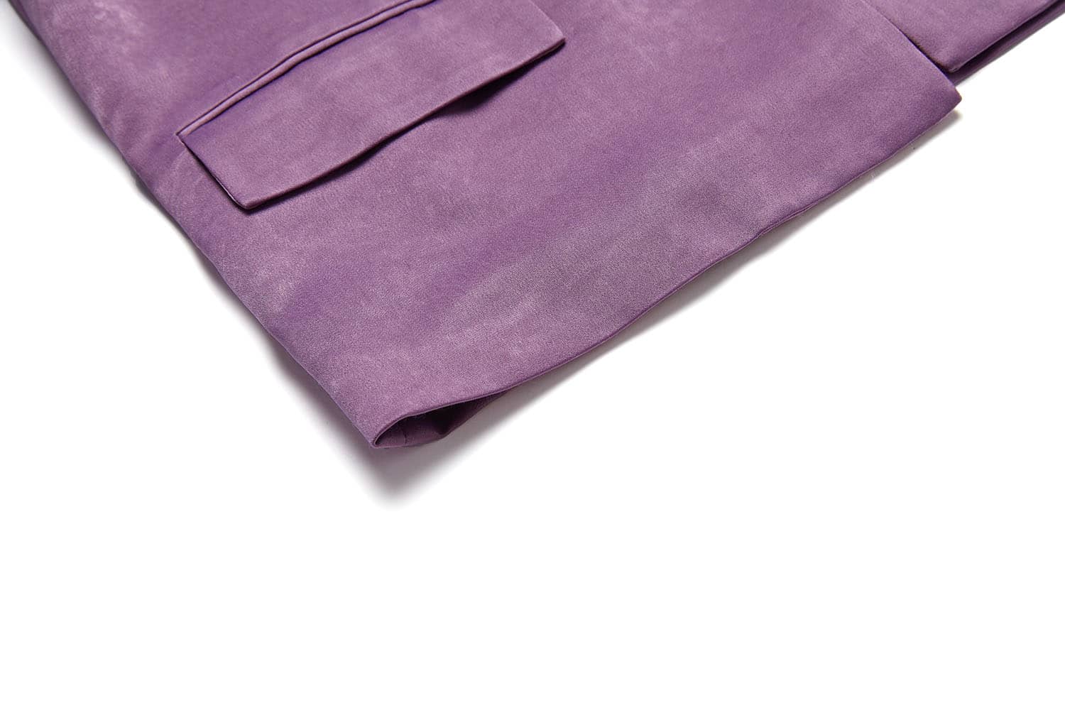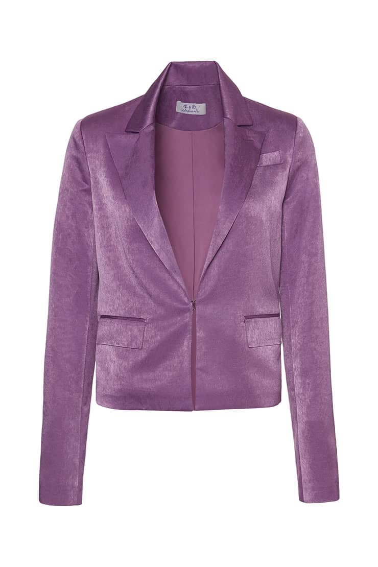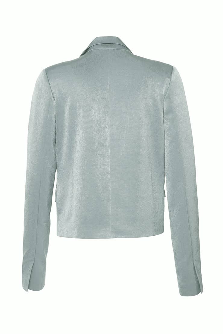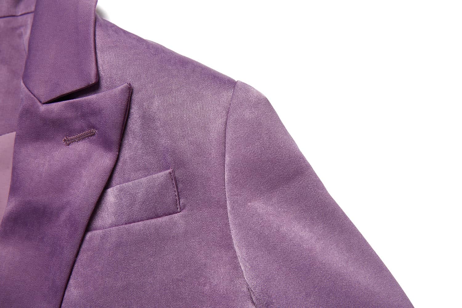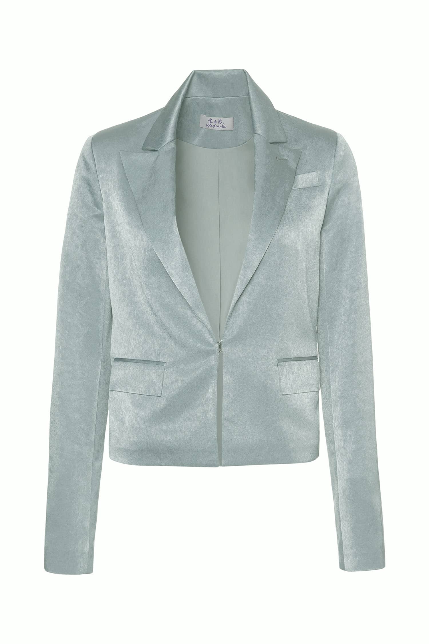 经典戗驳领,呈V字领型,内置垫肩,翻盖口袋设计,实用美观;合体的短款剪裁;前中门襟有隐形勾扣,丰富衣身经细节,兼具实用性
