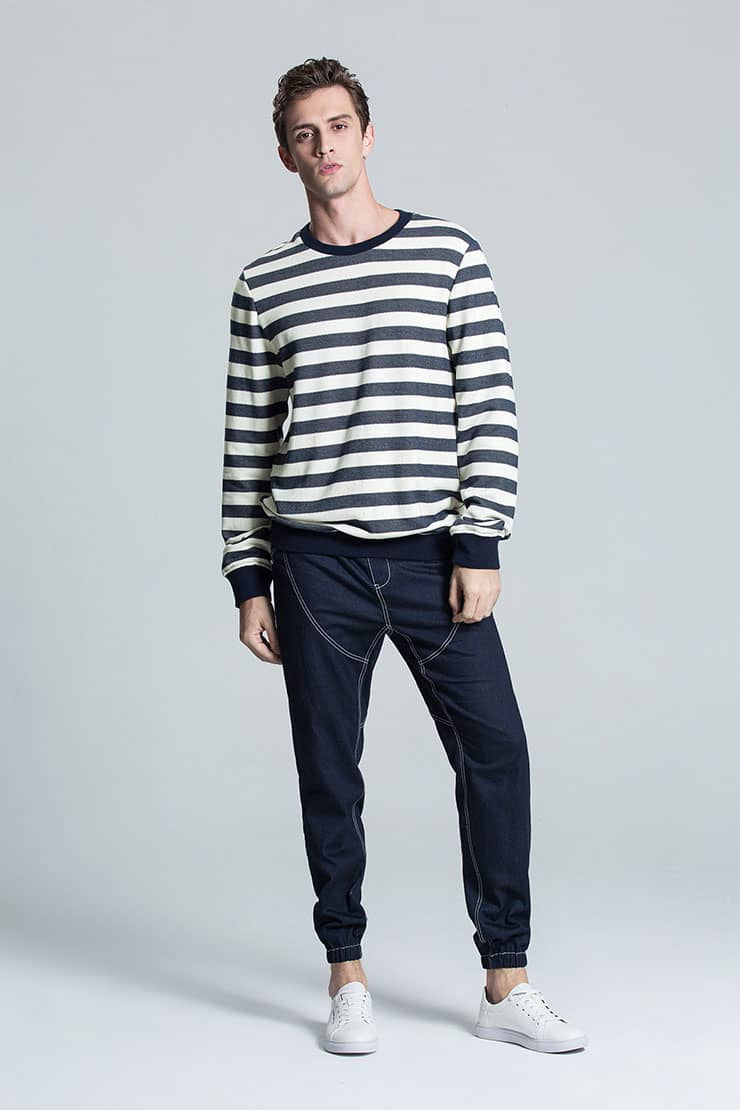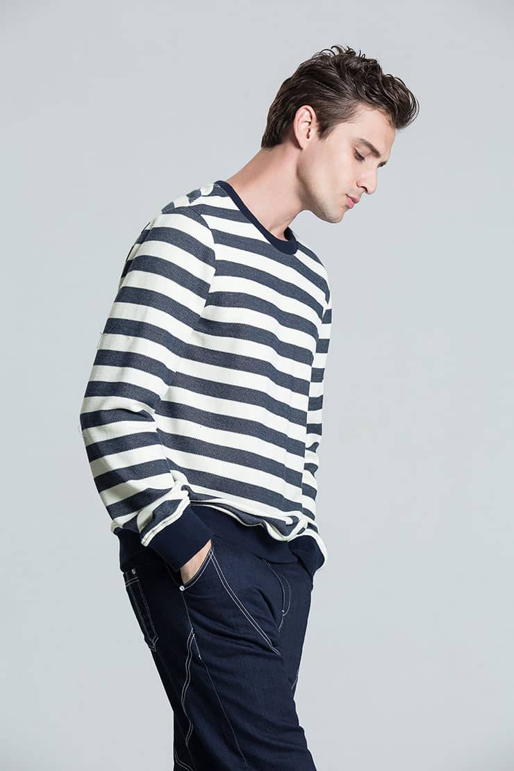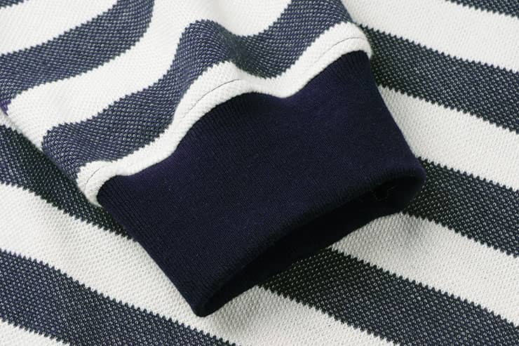 简约套头圆领,休闲直筒版型剪裁,下摆罗纹束口,采用棉质条纹POLO衫面料,高纱支高密度,耐洗抗皱,穿着舒适。