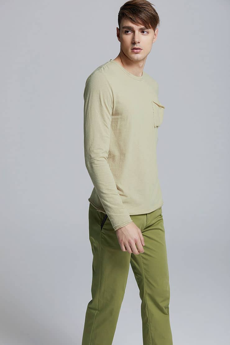 卷边圆领设计,彰显年轻时尚的动感活力;袖口下摆同样卷边处理,车线均匀流畅, 简约百搭款,精选优质棉料,细腻新肤,加入氨纶成分,使面料富有弹性不紧绷。