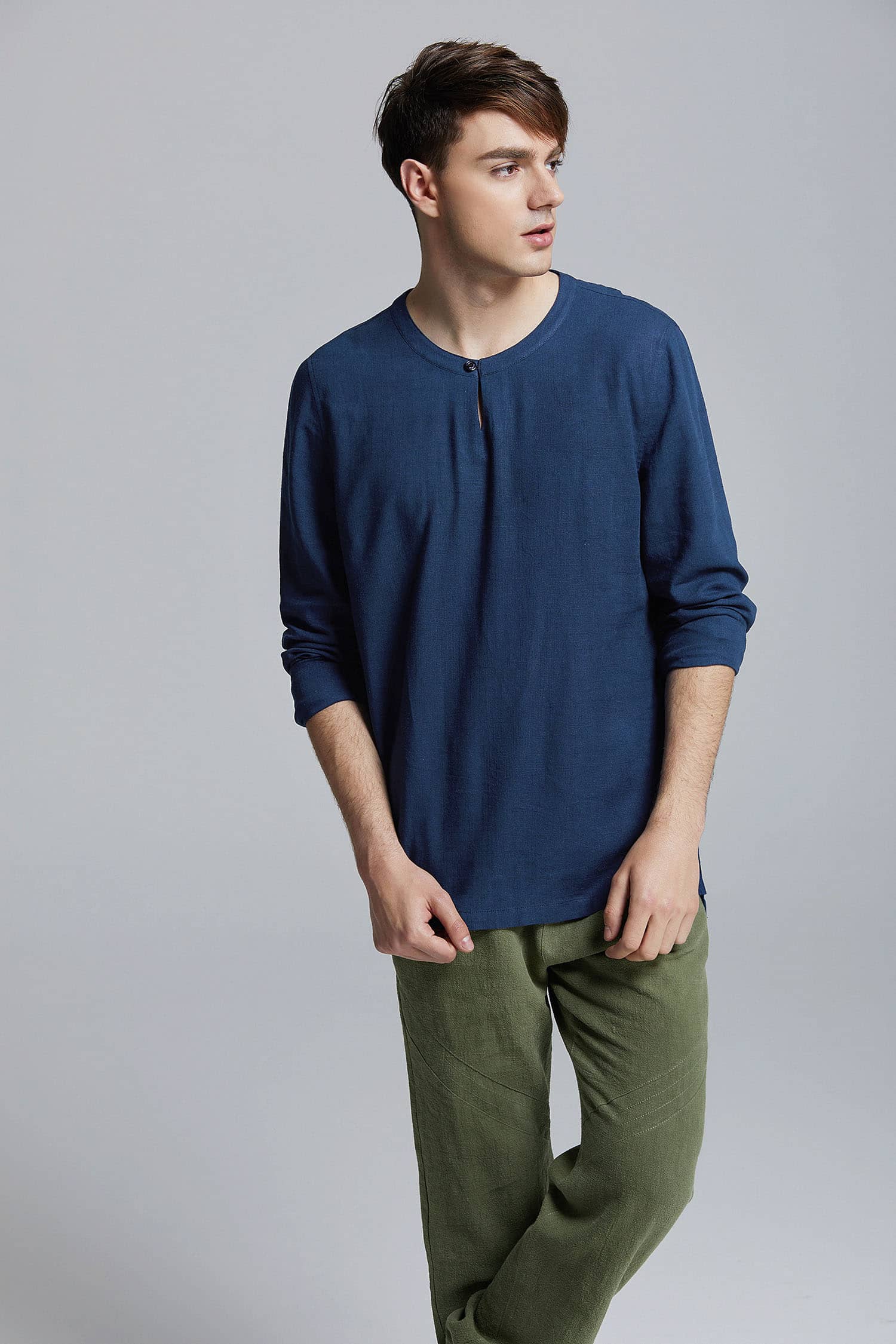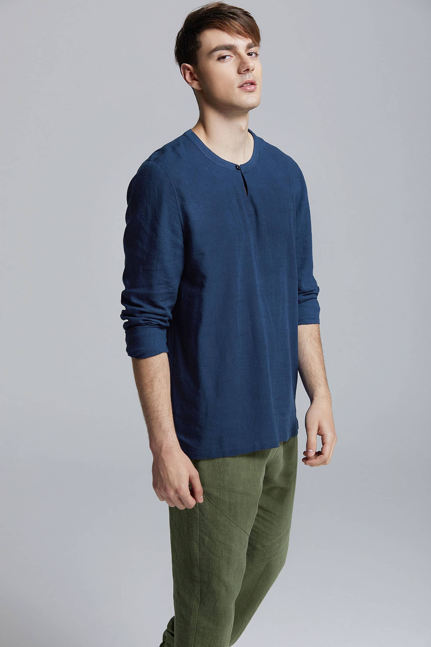 开叉套头长袖衬衫