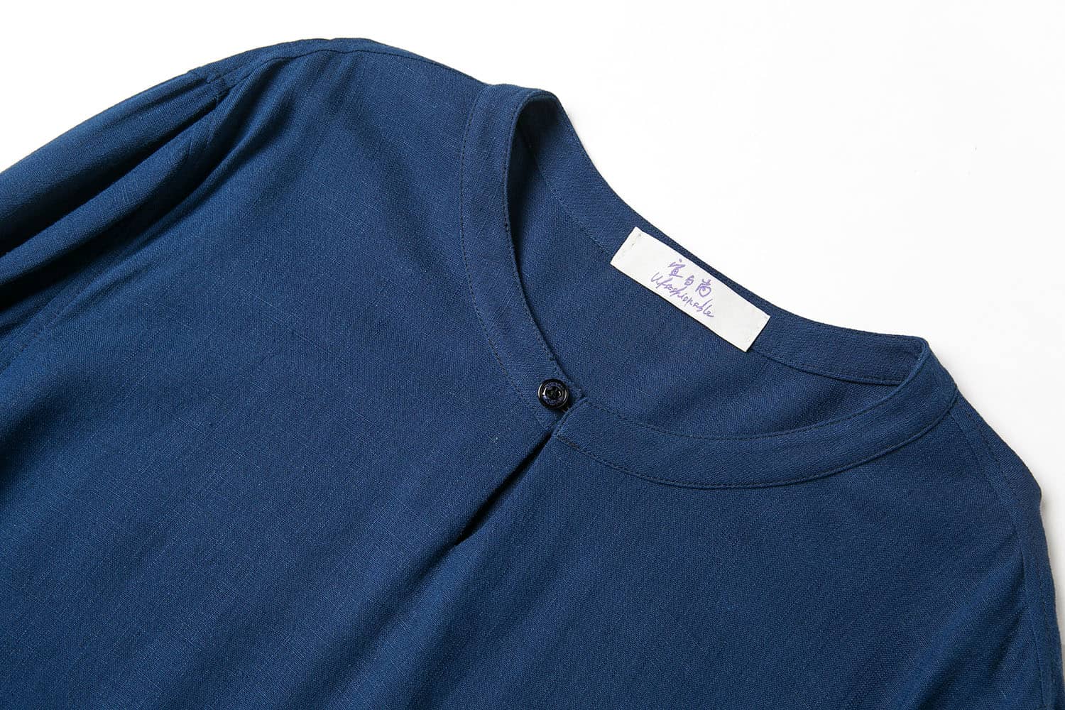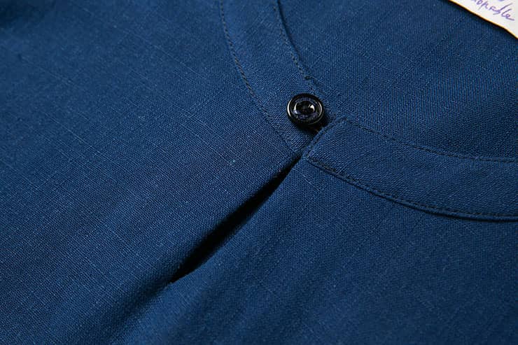 一粒扣开叉圆领设计,下摆两侧开叉剪裁,随性自由;简洁合体的版型,立体裁剪,百搭易穿; 精选优质的棉麻混纺面料,手感柔软舒适,穿着吸湿透气。