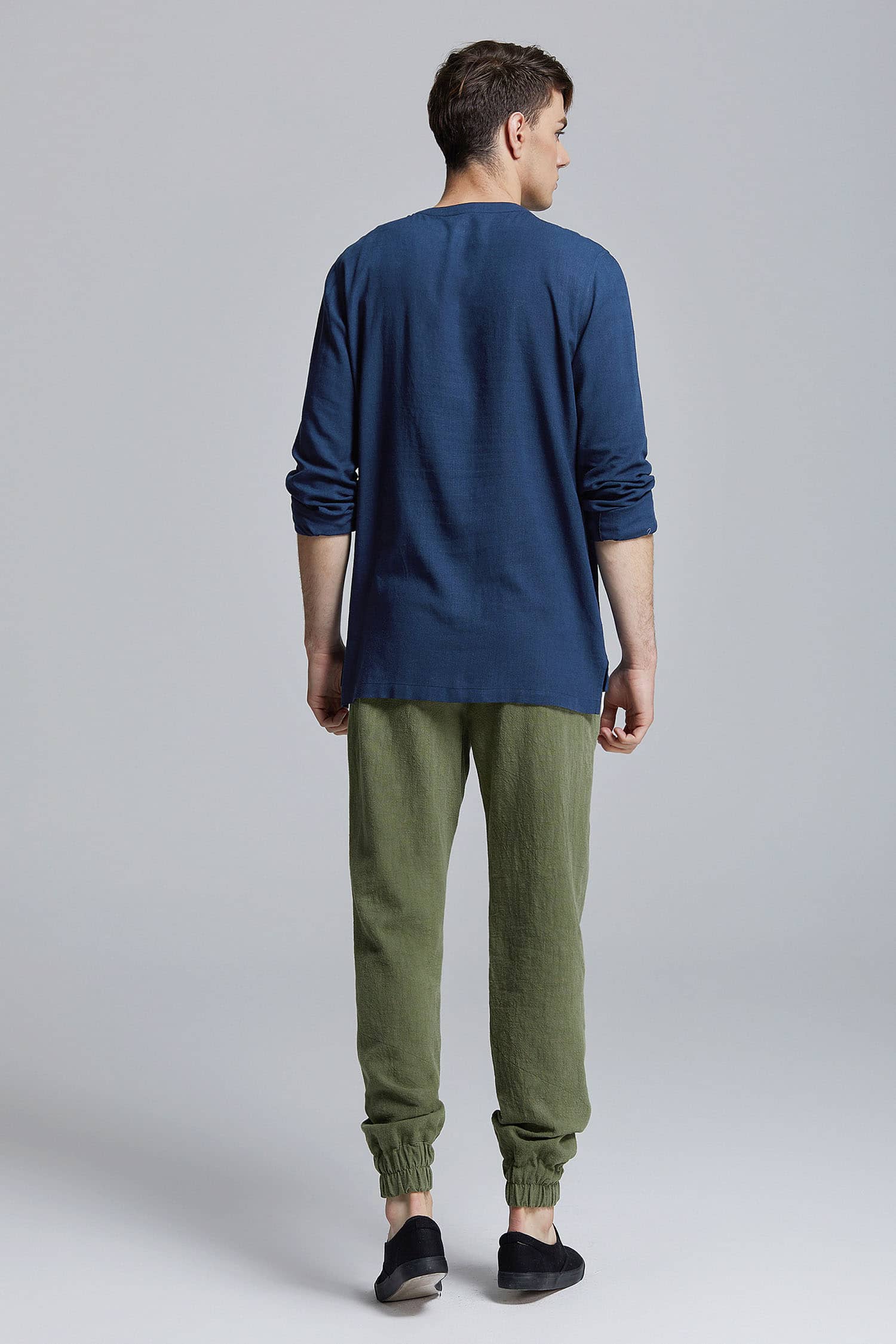 简约松紧腰头设计,人性化的侧口袋剪裁,裤脚松紧束口,不易变形,锥形裤版型剪裁,修饰腿部轮廓;天然的纯苎麻面料,透气舒爽,质朴清新,干爽不粘腻。