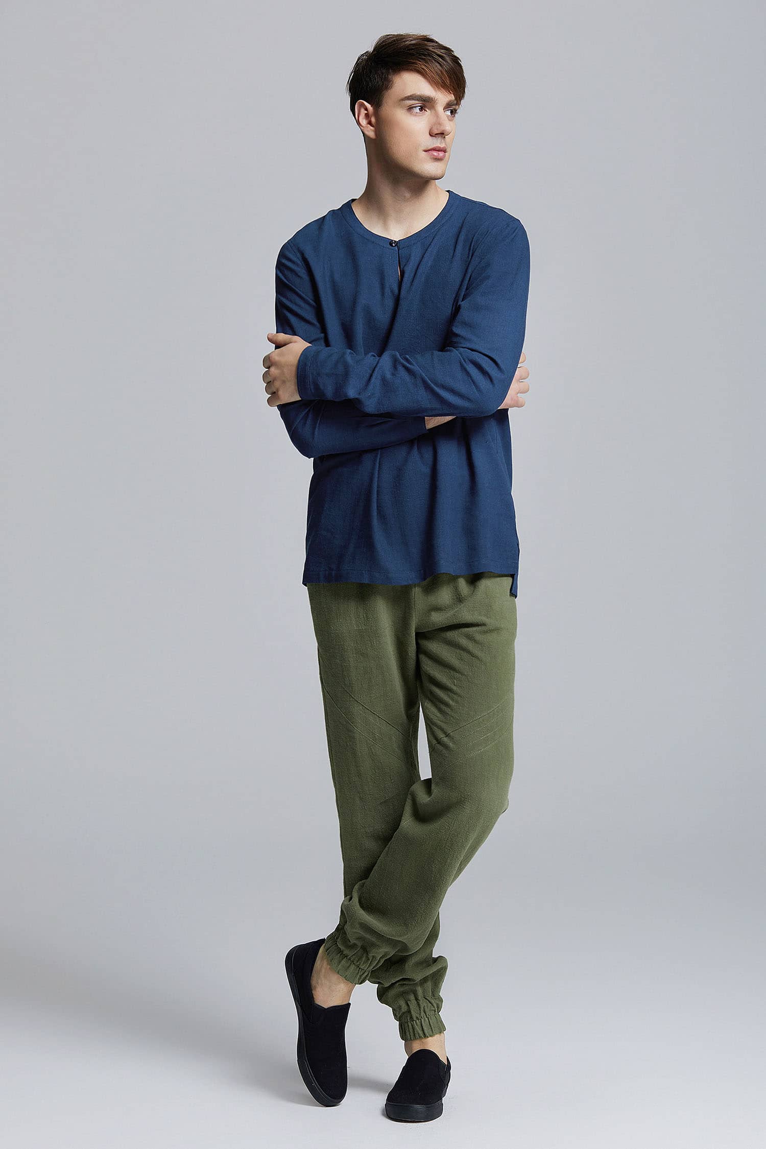 苎麻束脚裤