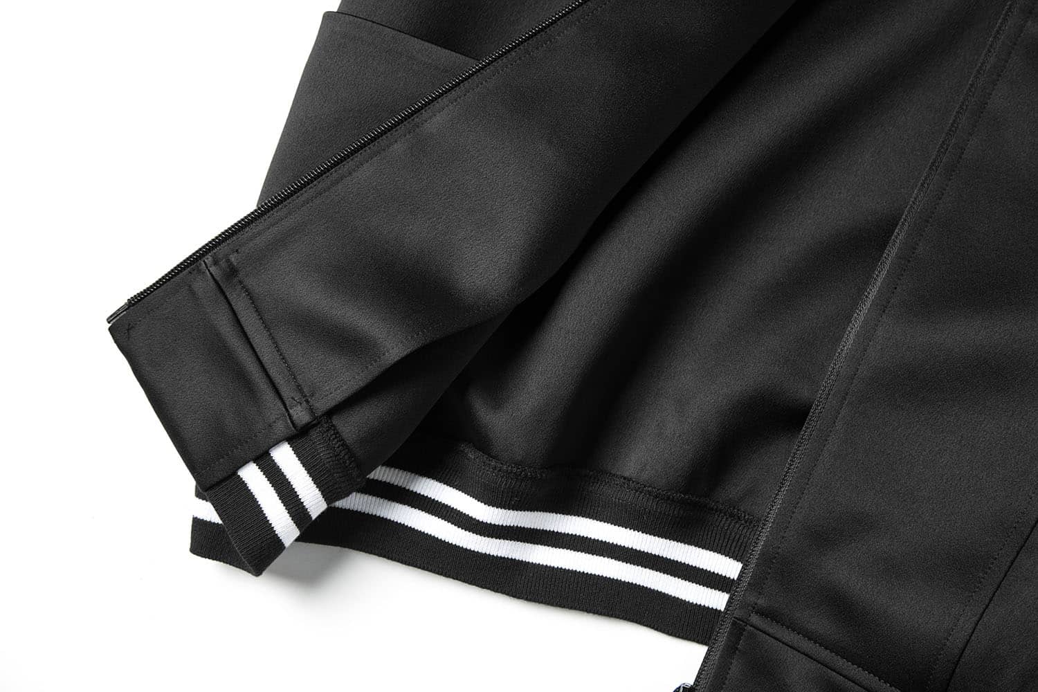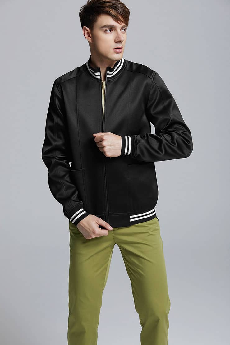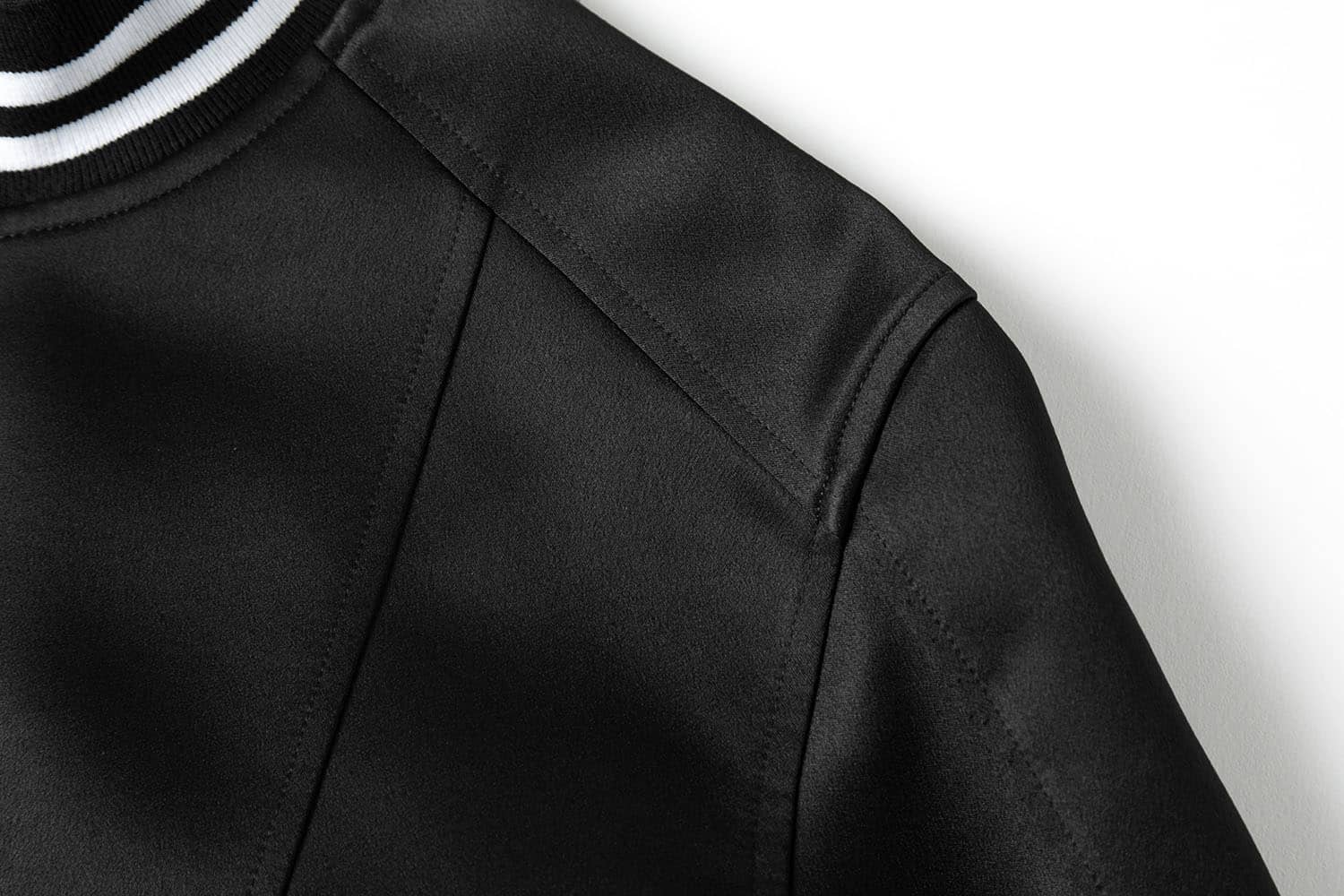 简约的罗纹立领,前幅个性的几何线条分割,个性贴袋设计,门襟装有定制拉链,下摆袖口罗纹收口,采用高档的醋酸面料挺括有型,温暖舒适。