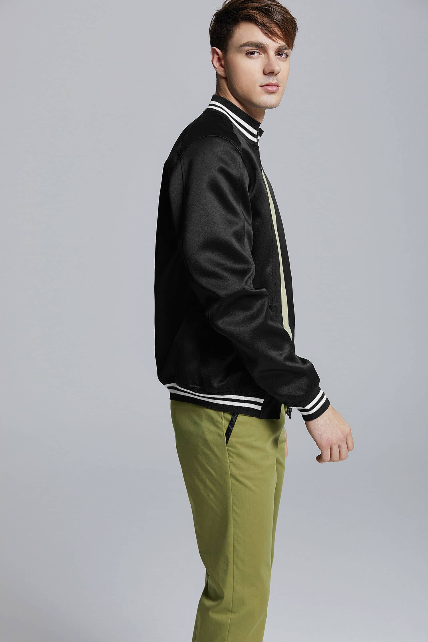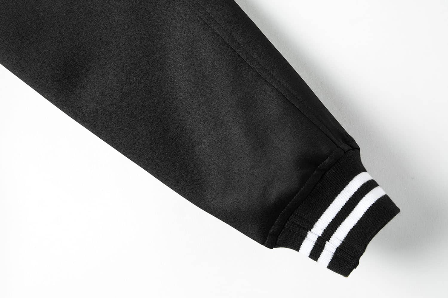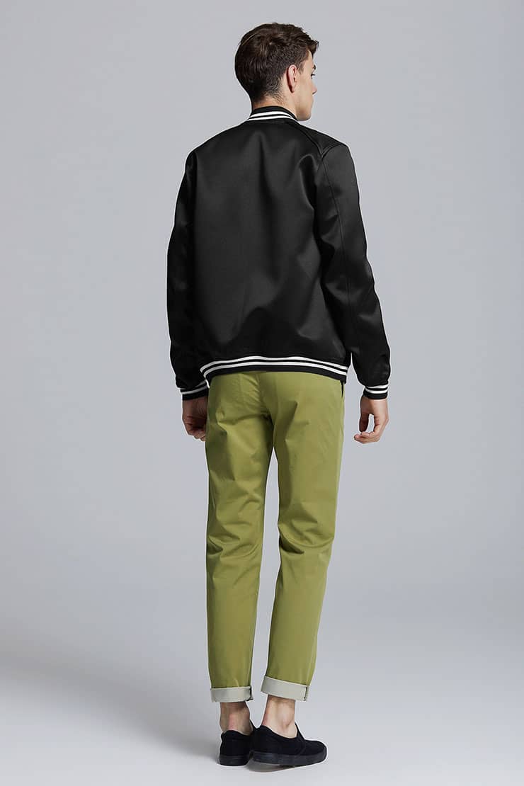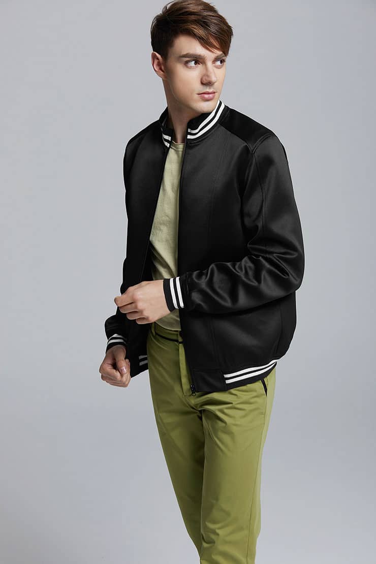 简约的罗纹立领,前幅个性的几何线条分割,个性贴袋设计,门襟装有定制拉链,下摆袖口罗纹收口,采用高档的醋酸面料挺括有型,温暖舒适。