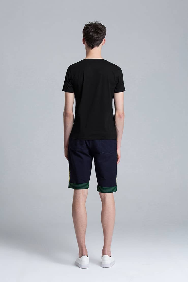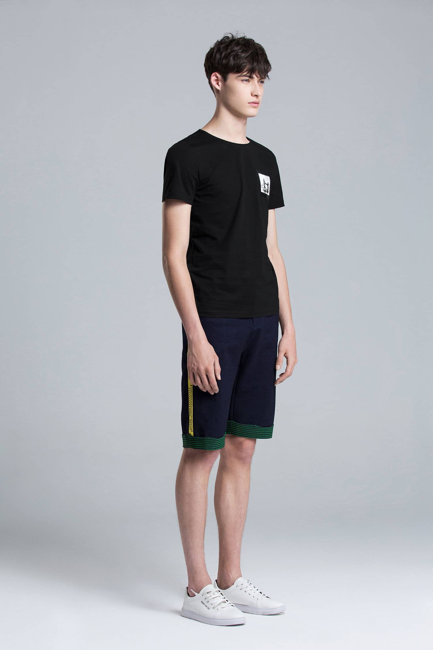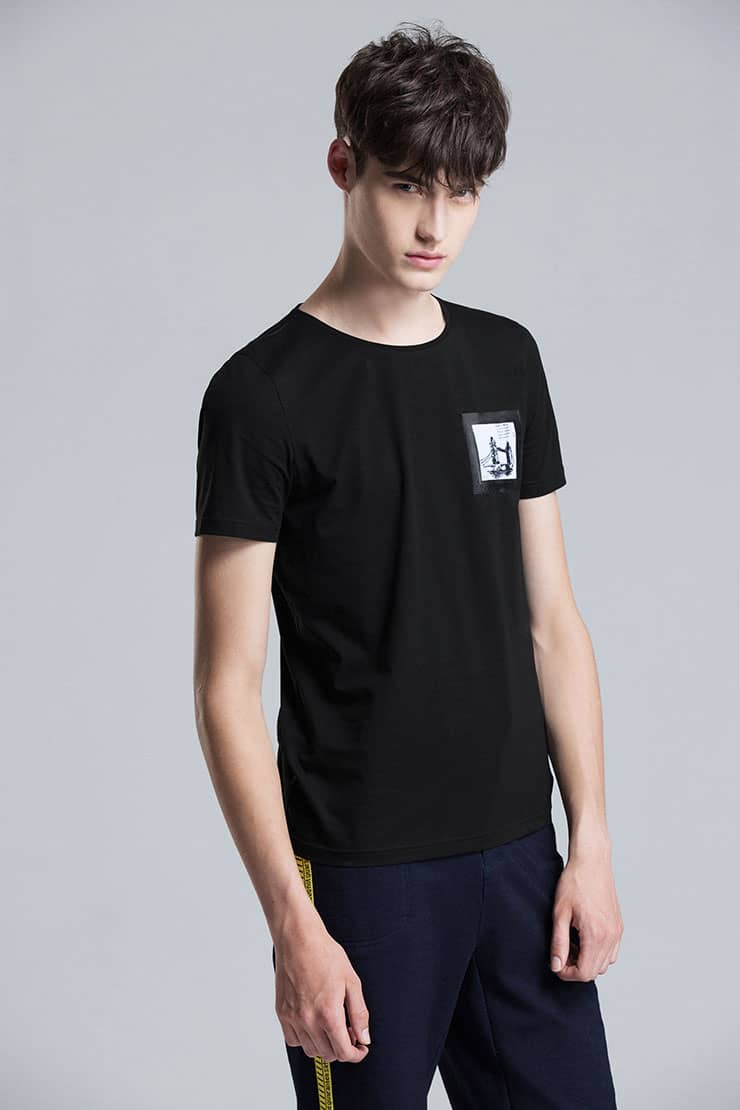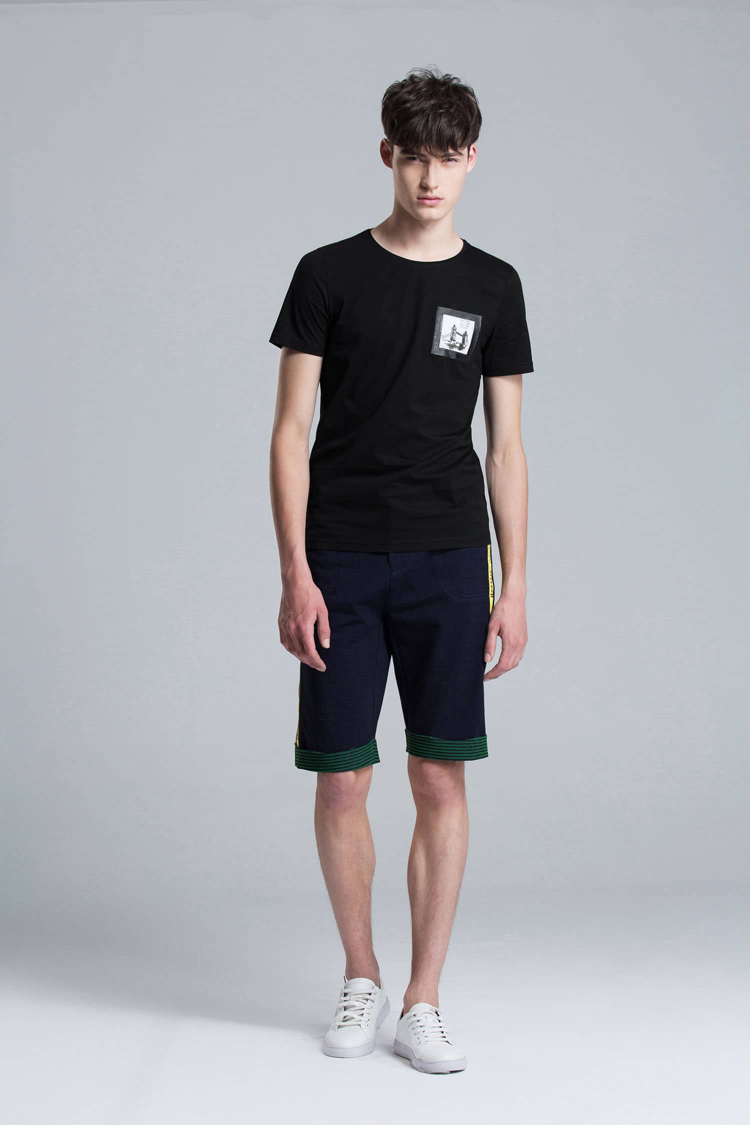 经典的圆领套头,合体短袖剪裁,前胸创意贴布绣与黑胶组合,新潮吸睛;精选优质的莱卡棉面料,柔软亲肤,舒适透气紧贴而不紧绷。