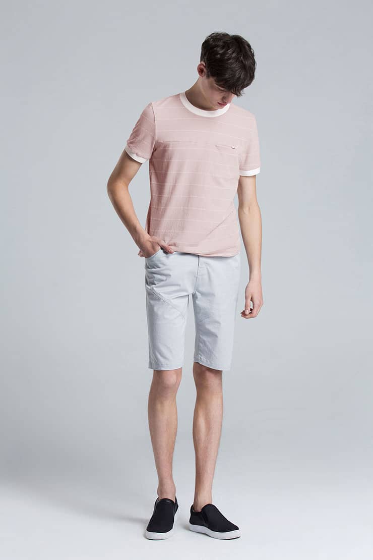 简约的中腰,月牙插袋,裤身几何分割,辑明线装饰,流畅的合体版型,采用水洗纯棉面料打造,质感优异,耐磨抗皱,穿着舒适免烫,不易变形。