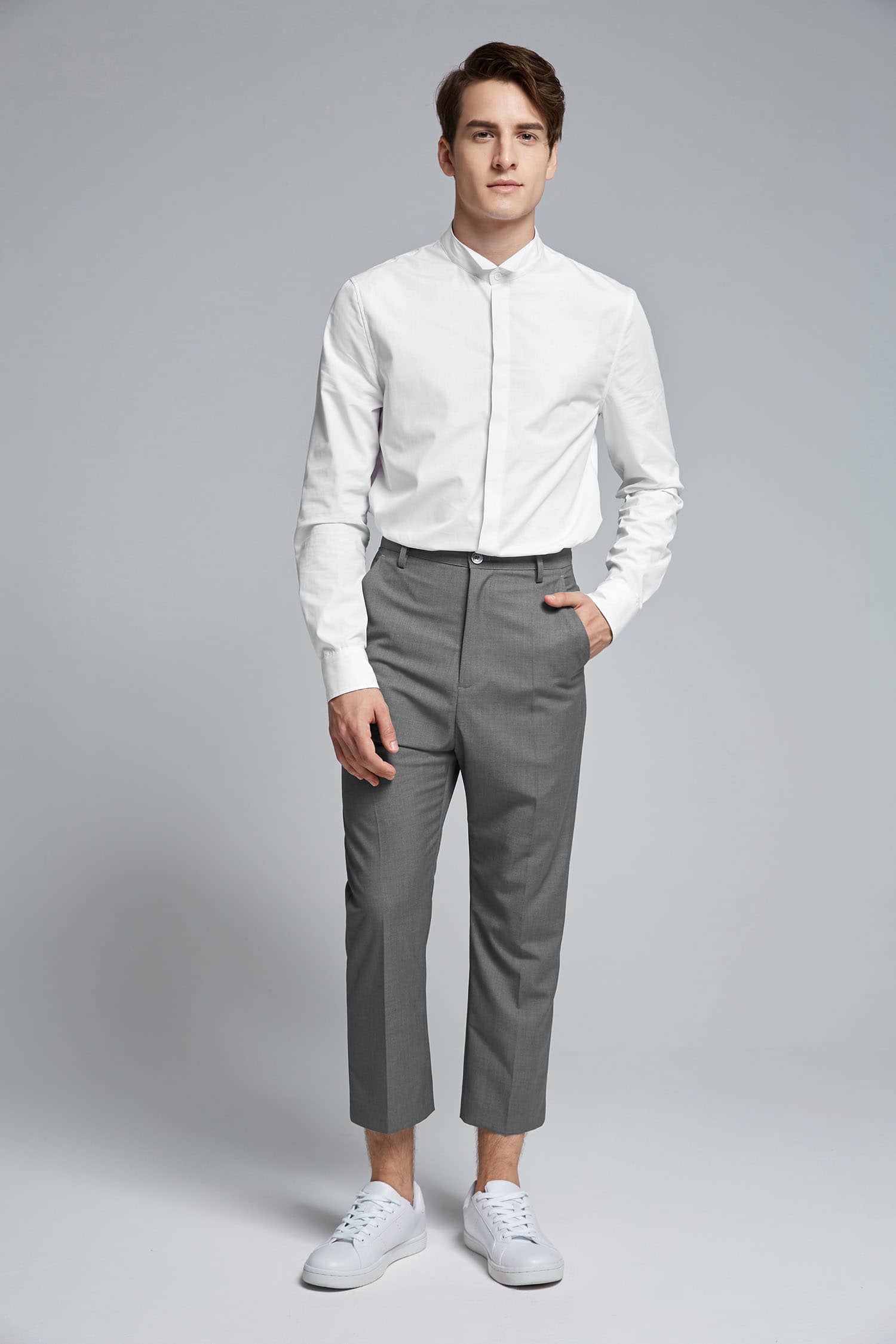 斜插袋八分西裤