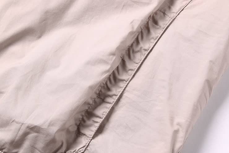 腰带松紧抽绳设计,侧边拉链口袋,裤身前中及膝盖位打条设计,后幅对称单唇袋,落裆束脚,贴合脚踝,宽松萝卜裤型,穿着轻松休闲。