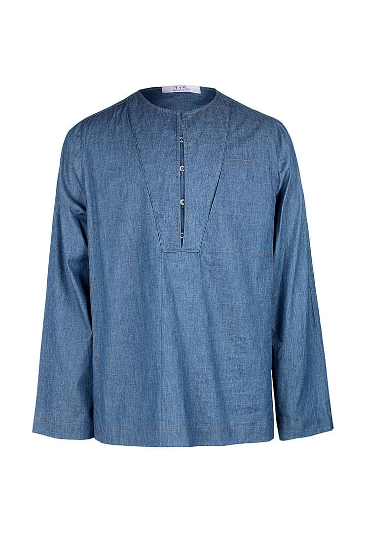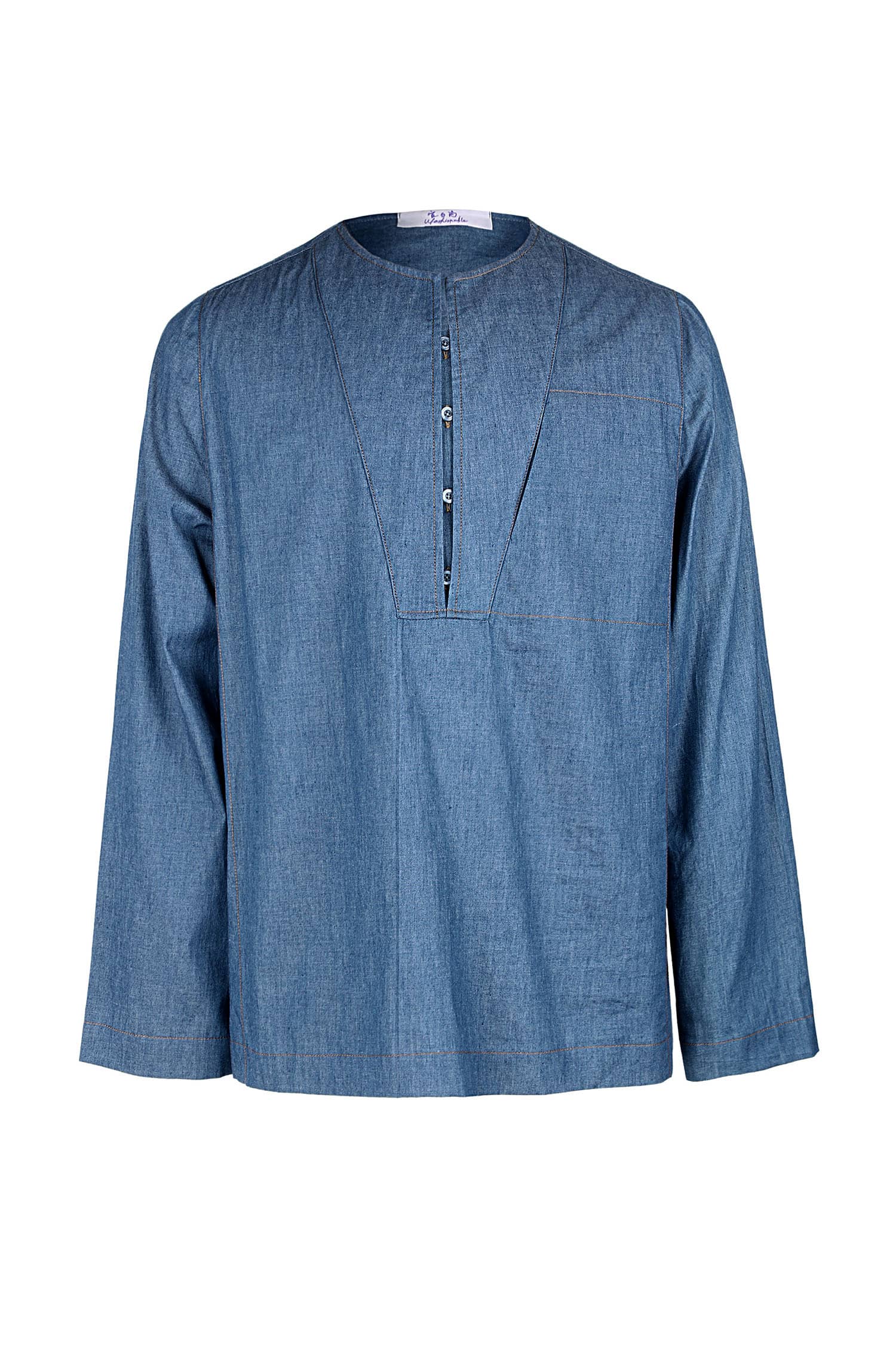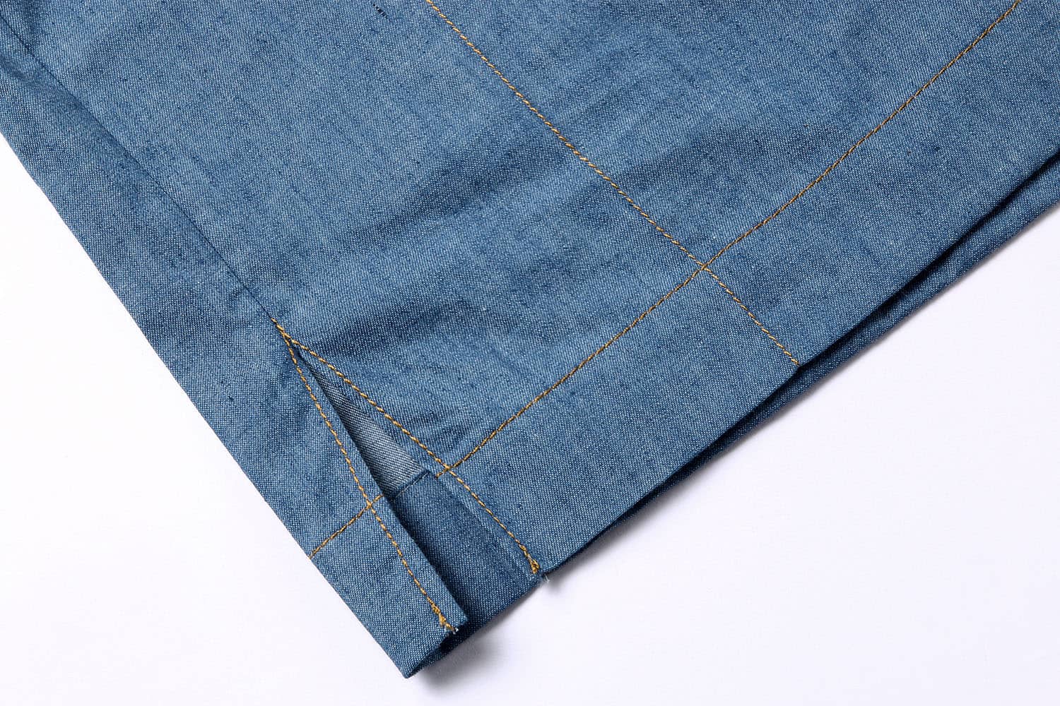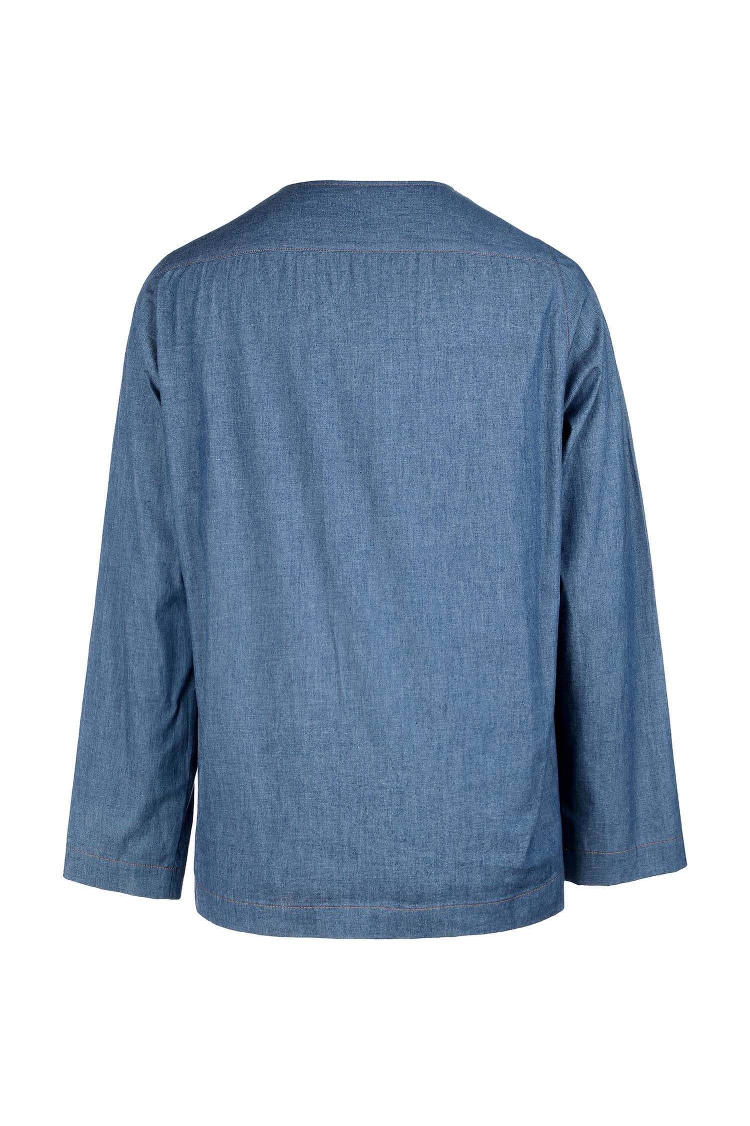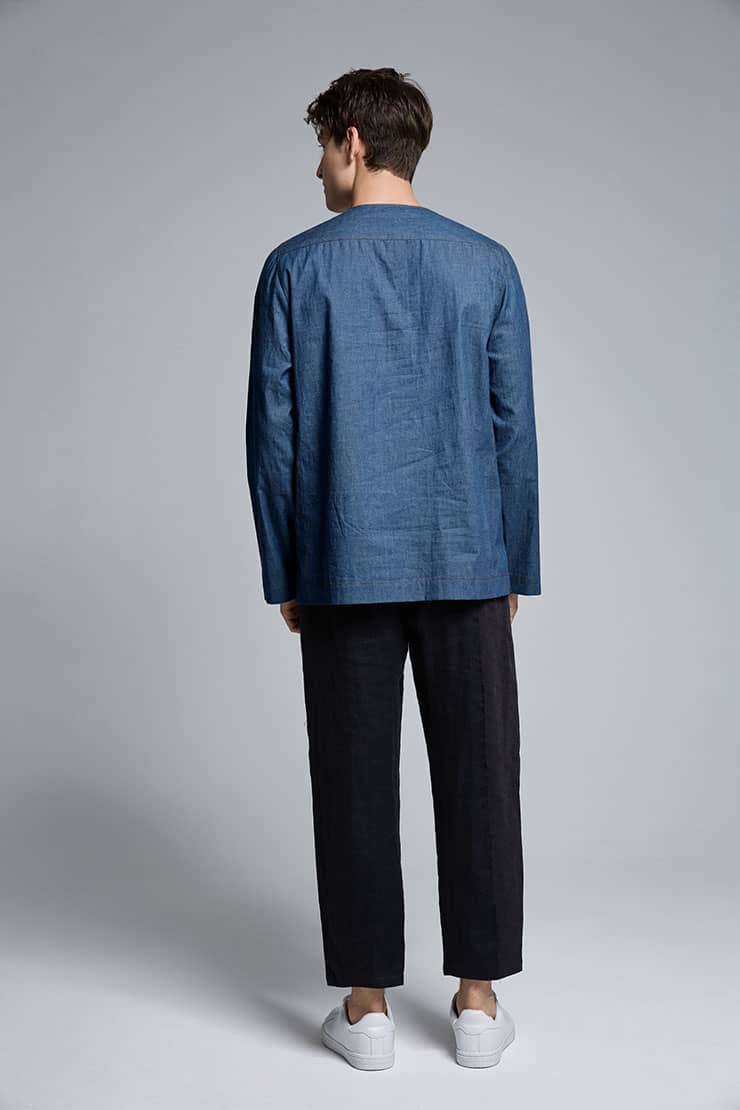纯棉牛仔长袖衬衫,圆领半开襟双层设计,搭配胸前挖袋,衣服撞色辑明线,勾勒简约时尚轮廓,微松的版型剪裁,直线下摆,侧开衩,穿着舒适。