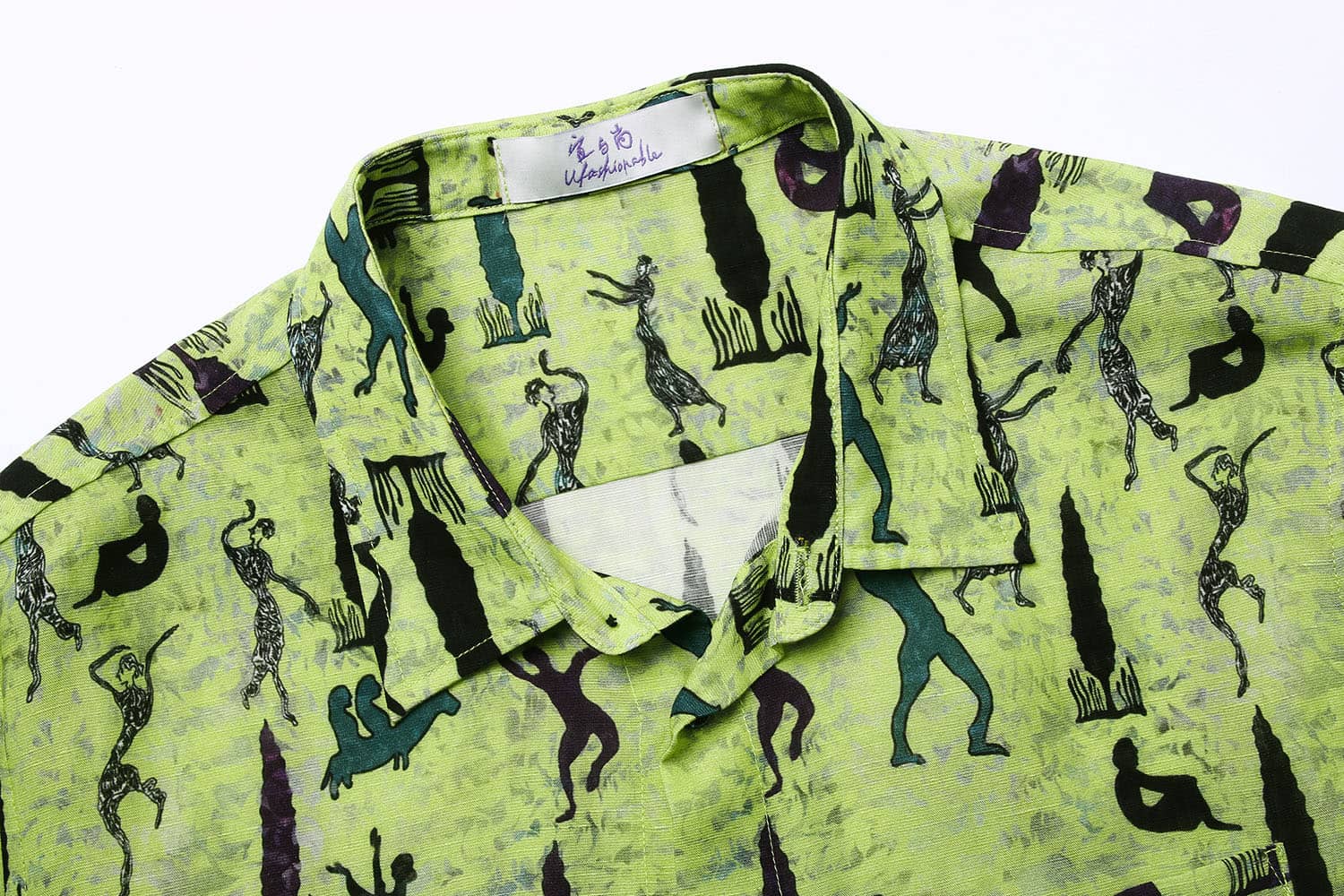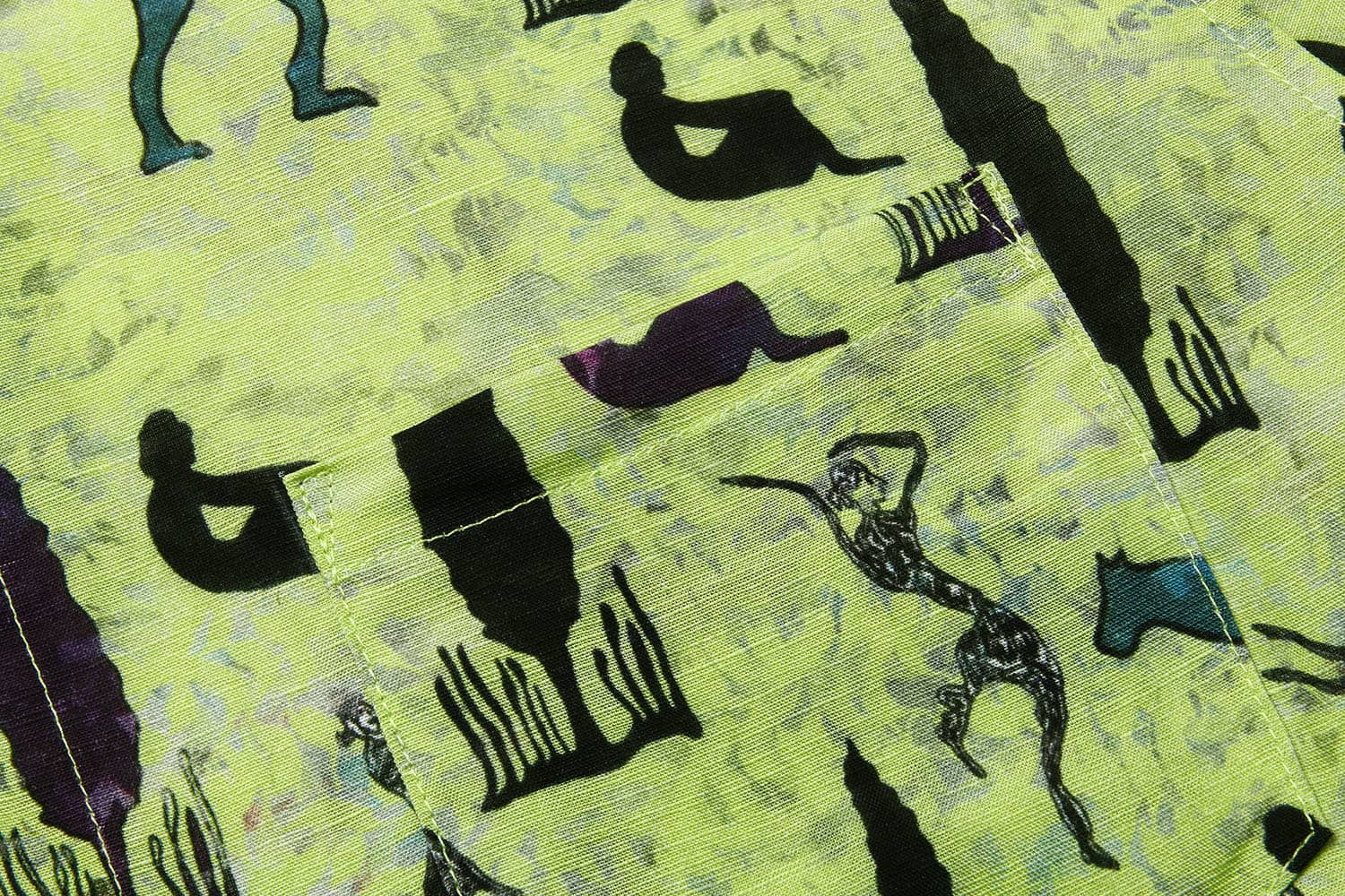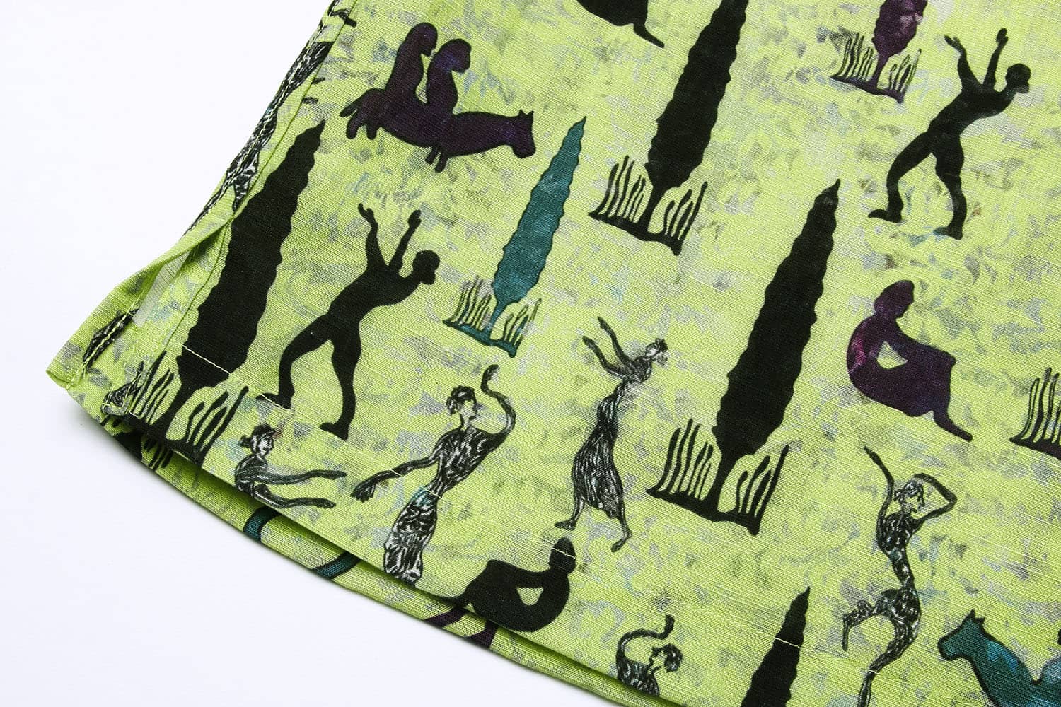 亚麻印花短袖衬衣,尖角企领,经典前襟,左前胸贴袋,后背担干分割,平直下摆,侧下摆开衩,打造舒适合体版型。