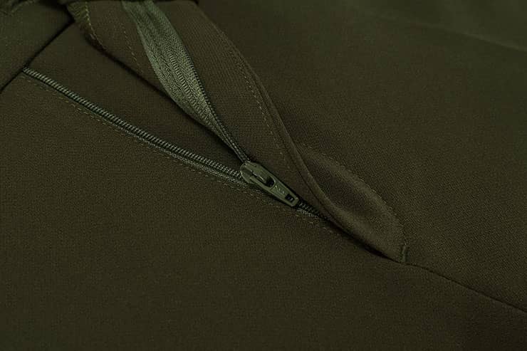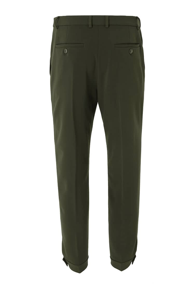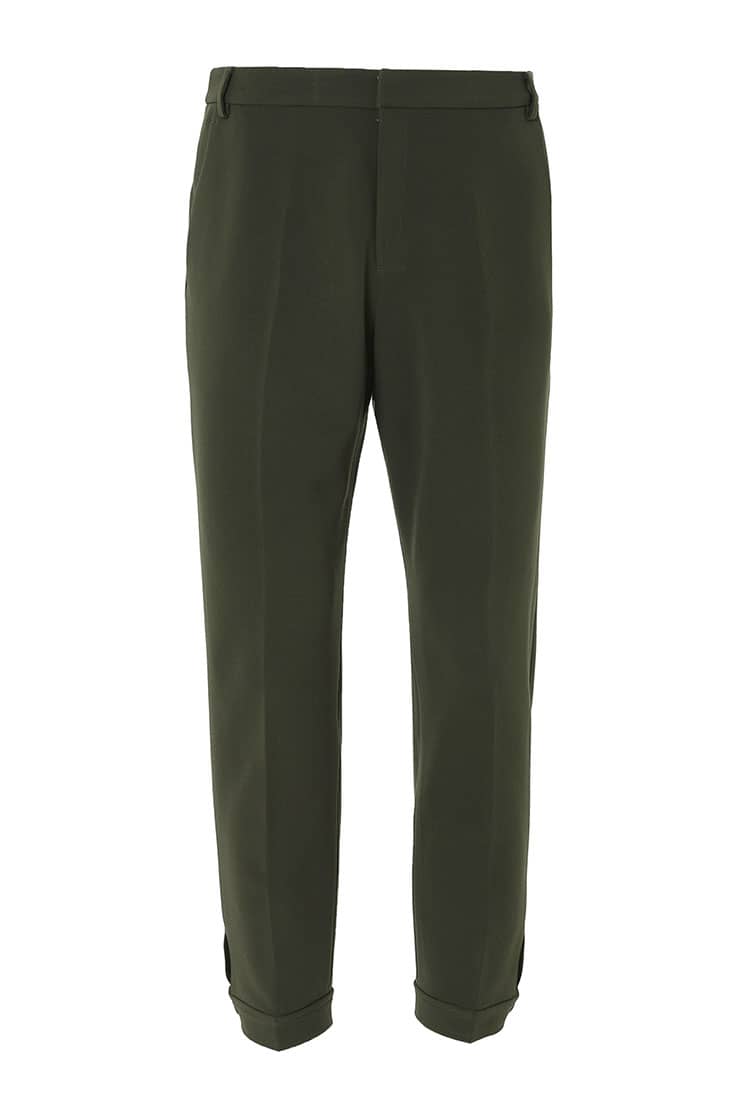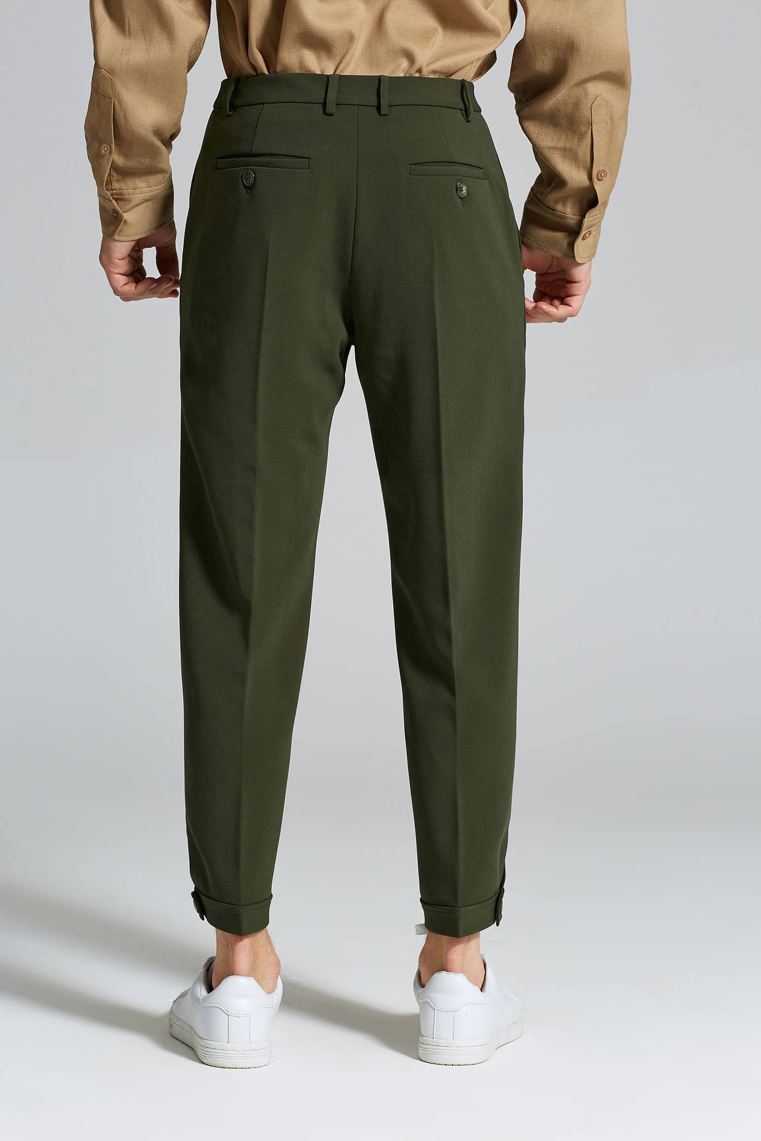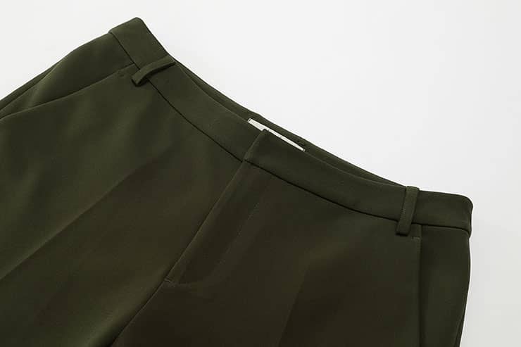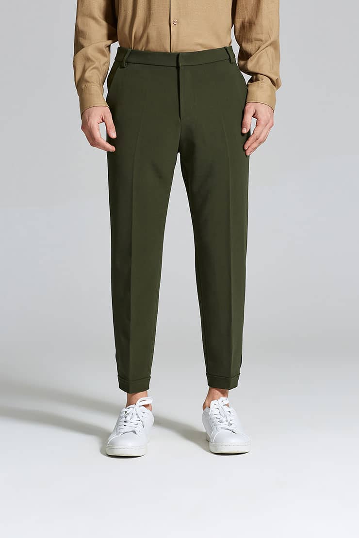 优质的聚酯纤维收脚口九分裤,前中腰头隐藏钩扣与底扣二次加固,裤子两侧对称斜插袋,两端打枣,脚口开衩收口,打破刻板印象,令穿着更加有型。