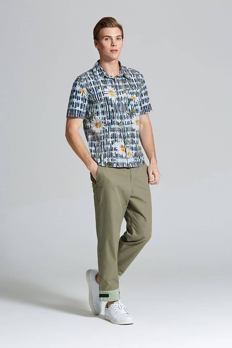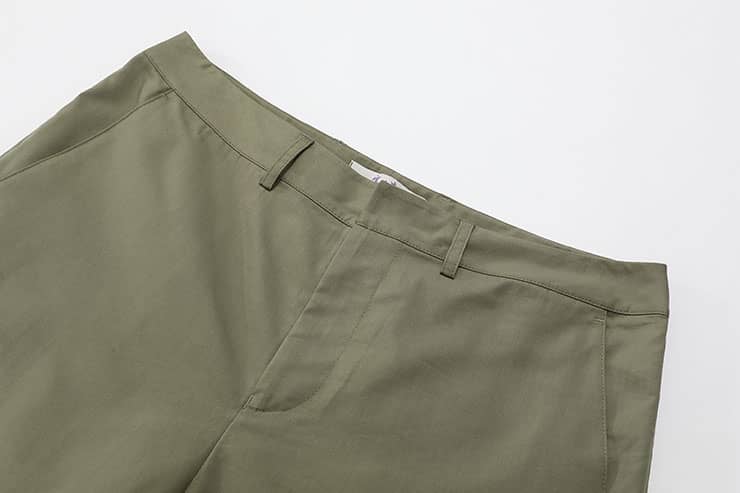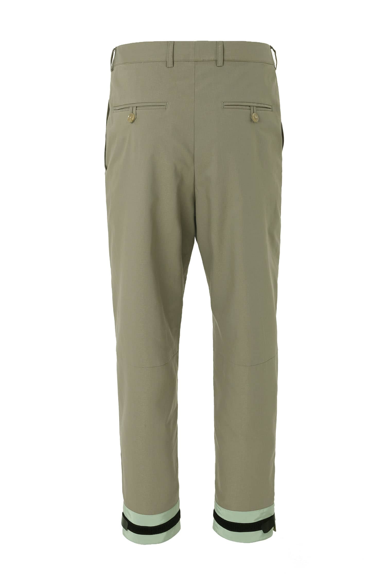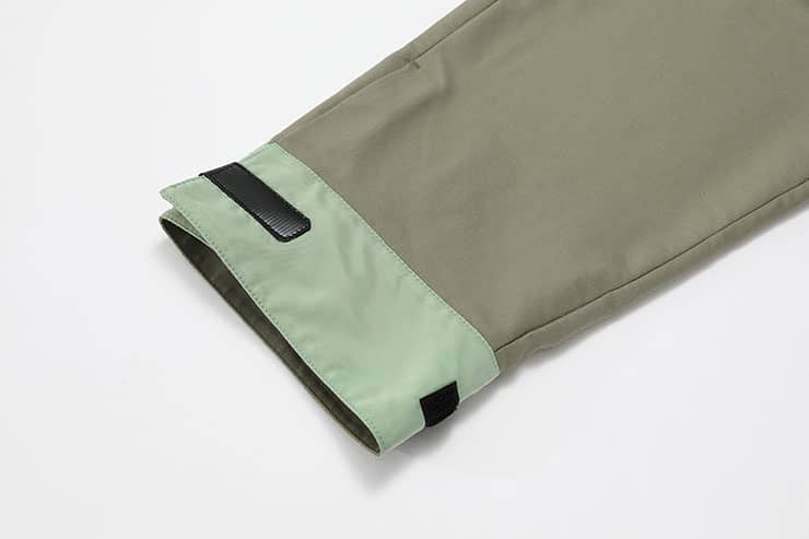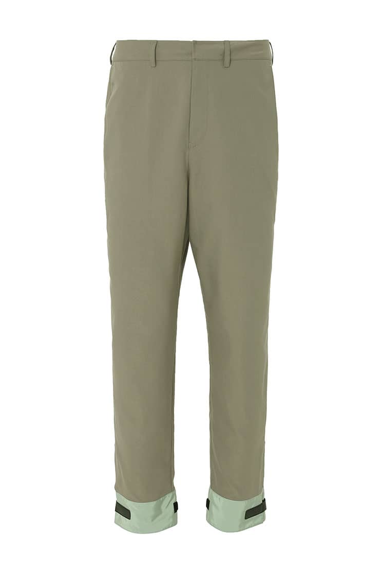 棉质休闲九分裤,门襟装拉链,左右两侧对称斜插袋,后膝围做破骨结构,脚口拼接撞色面料,开衩,配合新型魔术贴点缀,英伦风格中添加了运动气息。