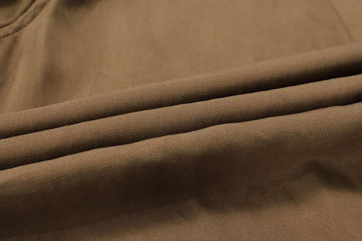 棉质斜纹长款风衣,亚光色调,大翻驳领,双排四粒扣,经典的前落肩后插肩袖,配上大廓形剪裁,腰间可卸腰带,前后面料撞色毛边拼接,后领独特的领袢立领设计,彰显气场的同时又赋予功能性。