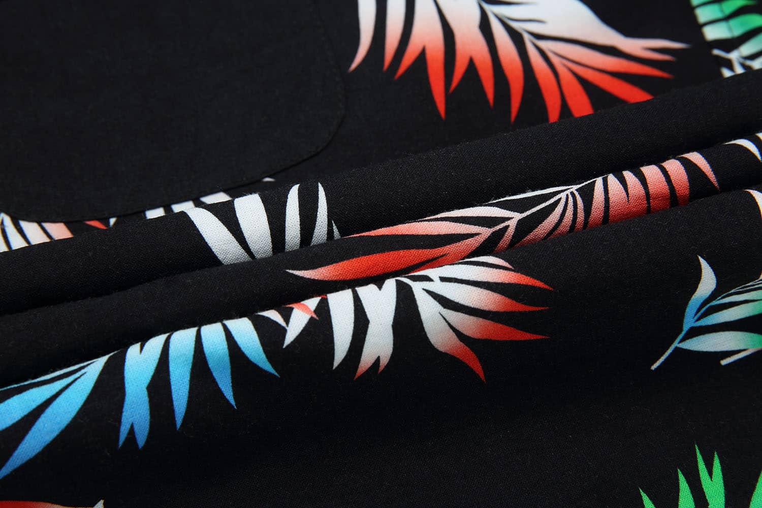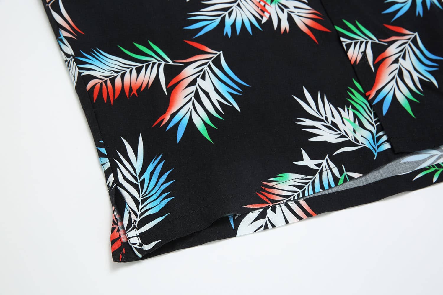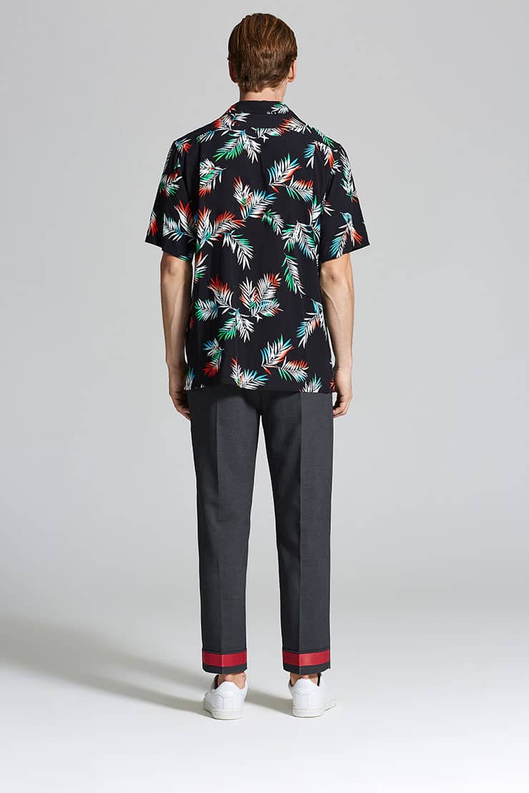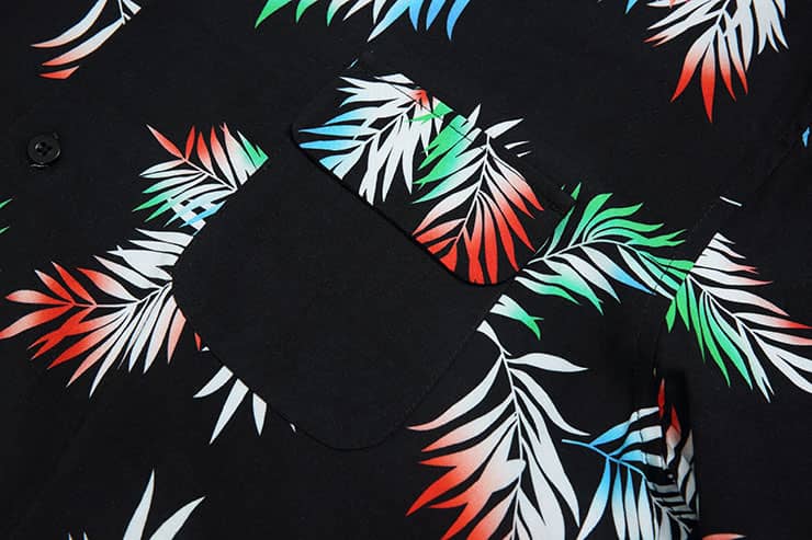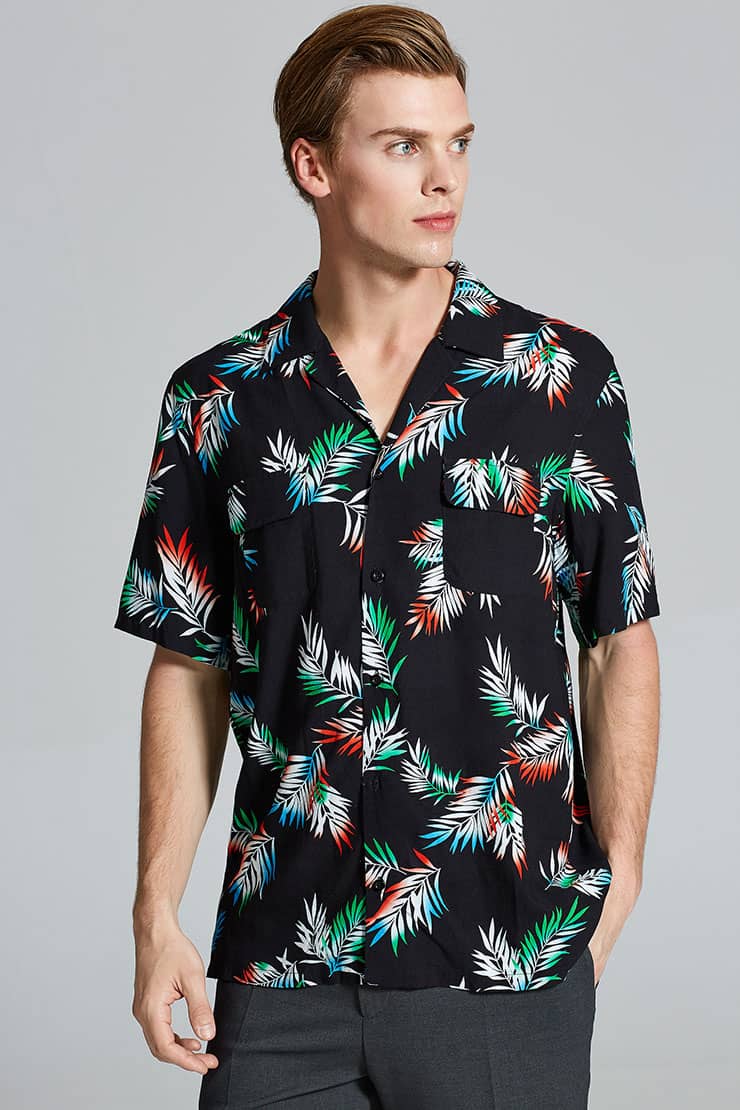 人棉印花短袖衬衣,翻领,胸前对称圆角贴袋配翻盖,门襟钉纽扣,直筒宽松式落肩短袖剪裁,平直下摆,舒适自如。