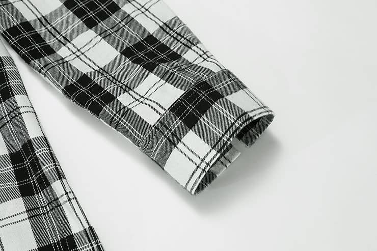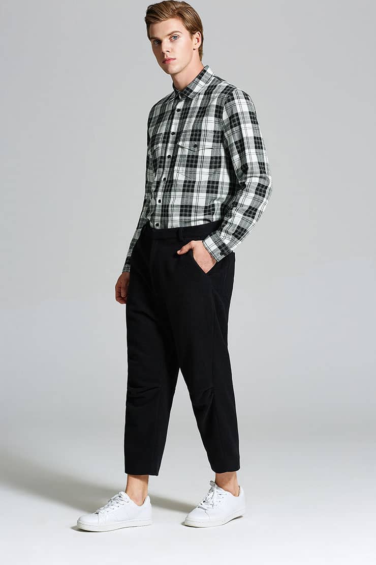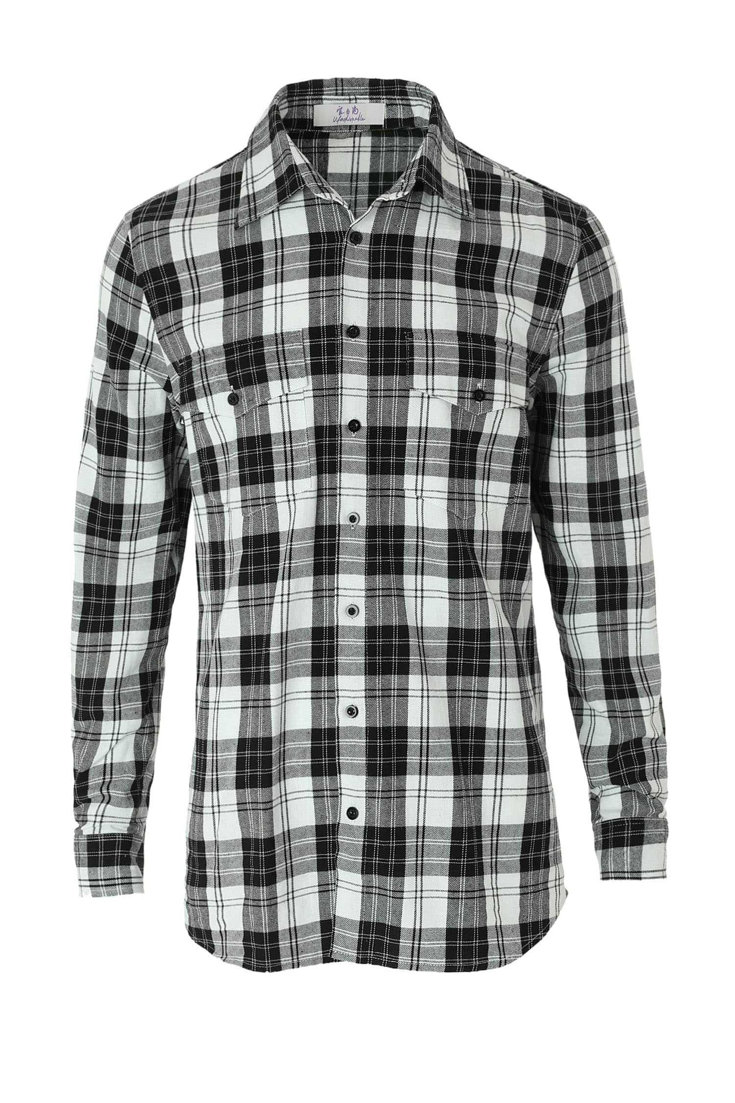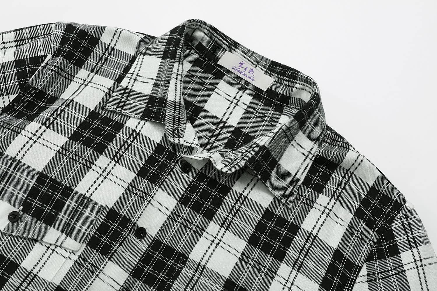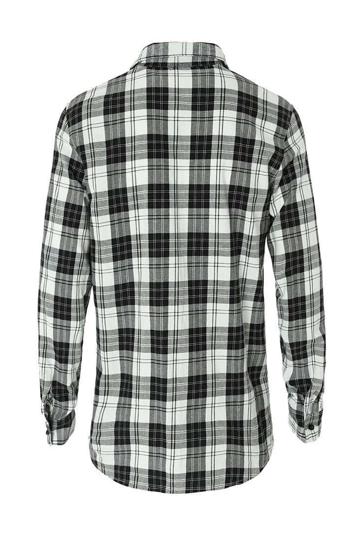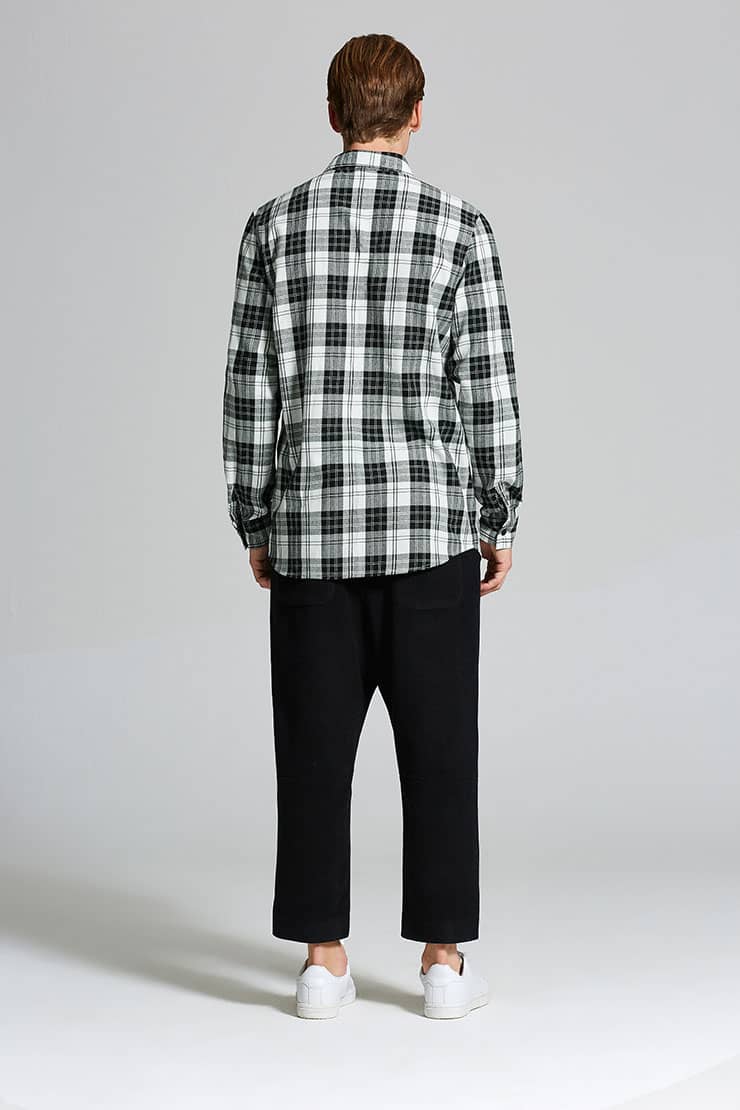 全棉长袖衬衣,尖角企领,胸前对称贴袋配翻盖,拼格与衫身融为一体,圆弧下摆,舒适休闲的版型,彰显气质,活动自由。