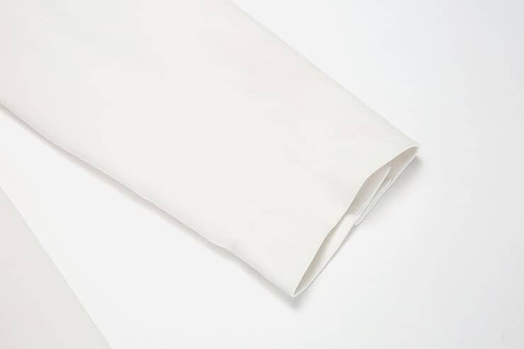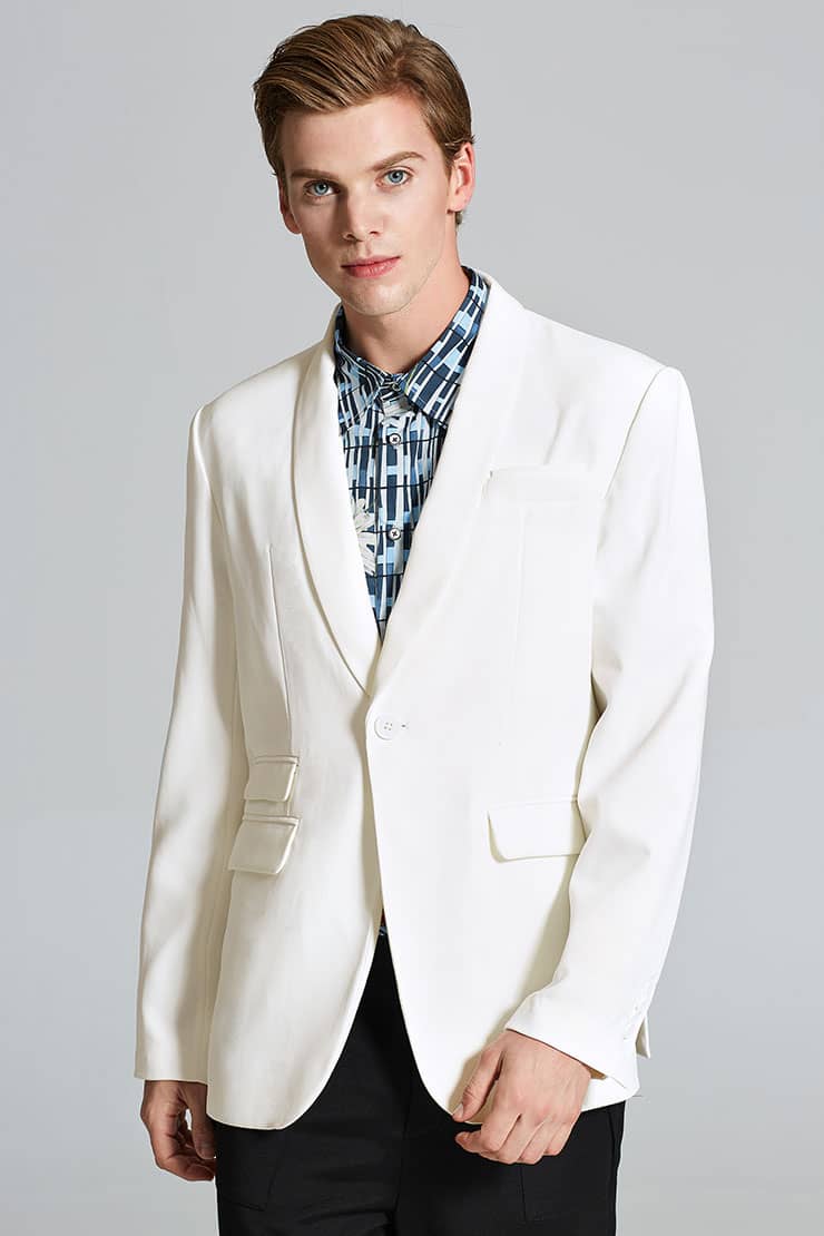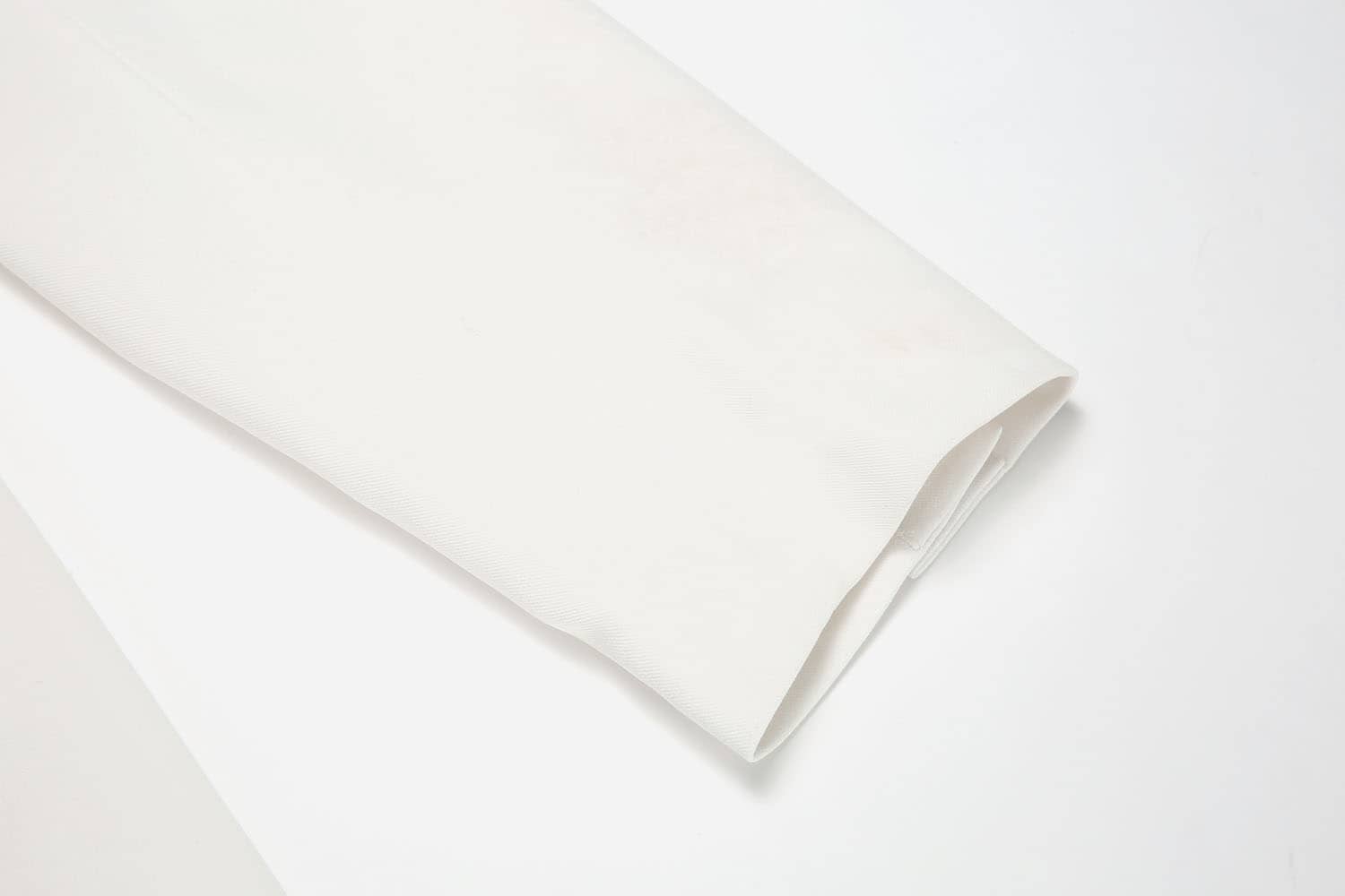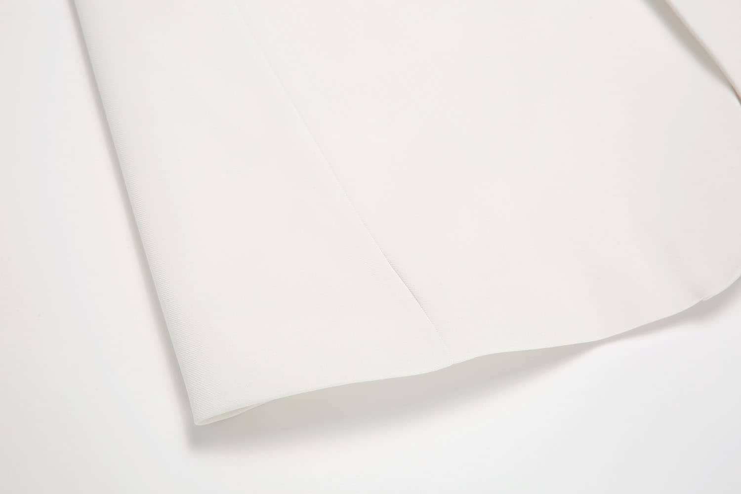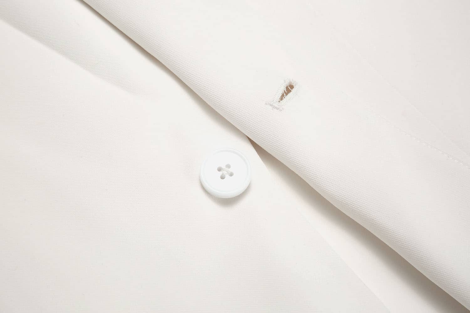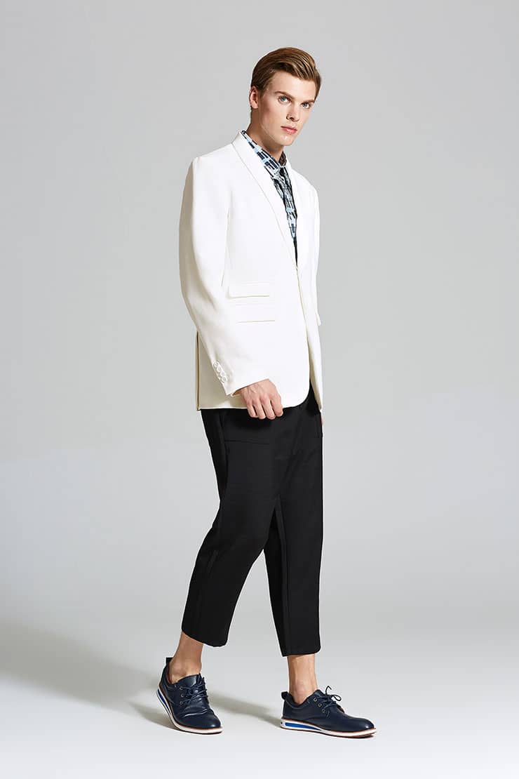 采用优质聚酯纤维,质地爽滑平实,挺括有型;青果领设计,门襟单纽扣,左胸重叠手巾袋,下边多个袋盖的一字袋,修身的版型,后下摆开叉设计,优雅有型。