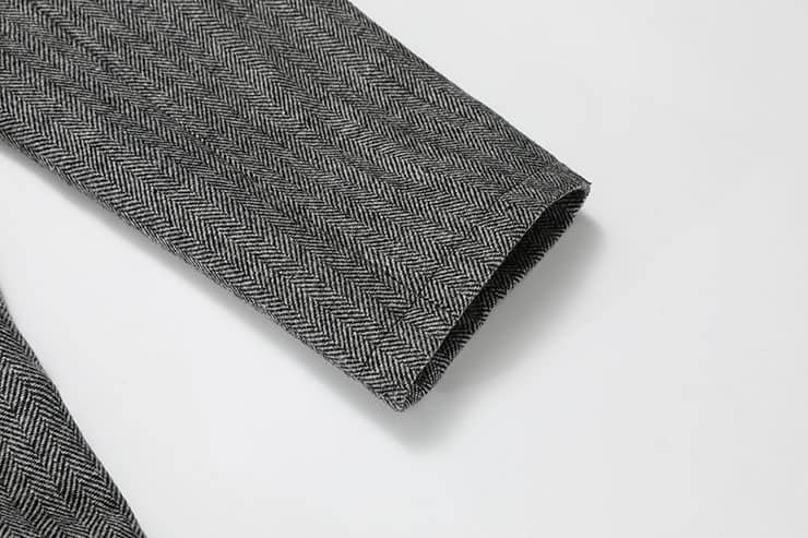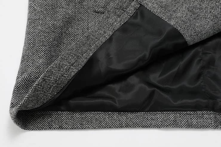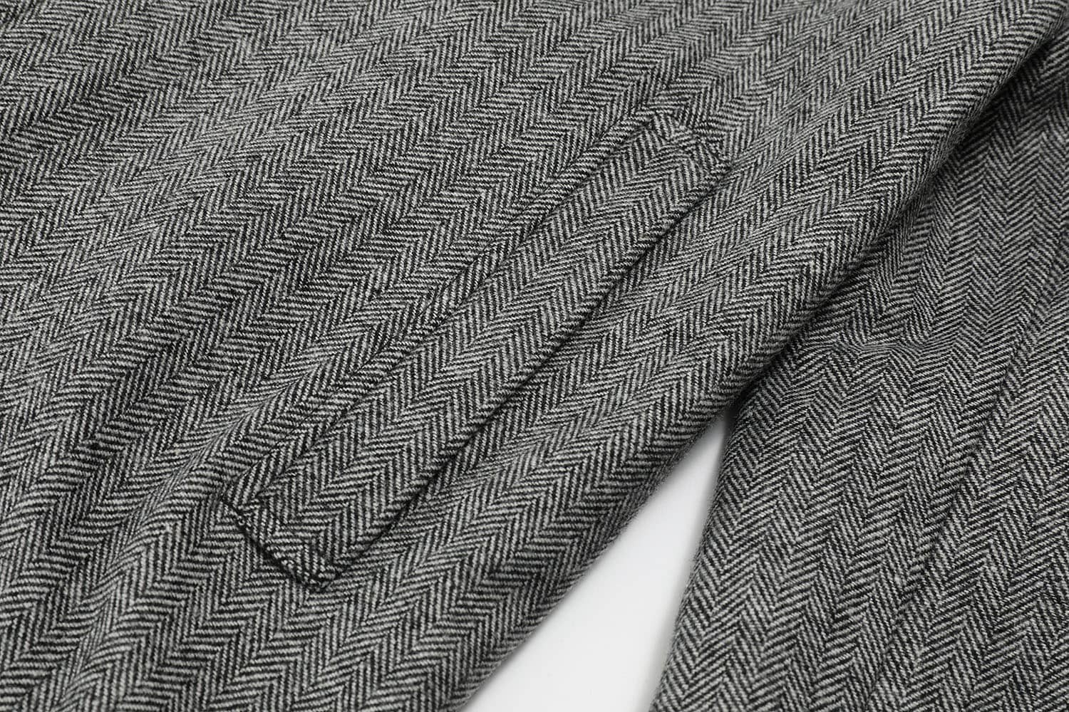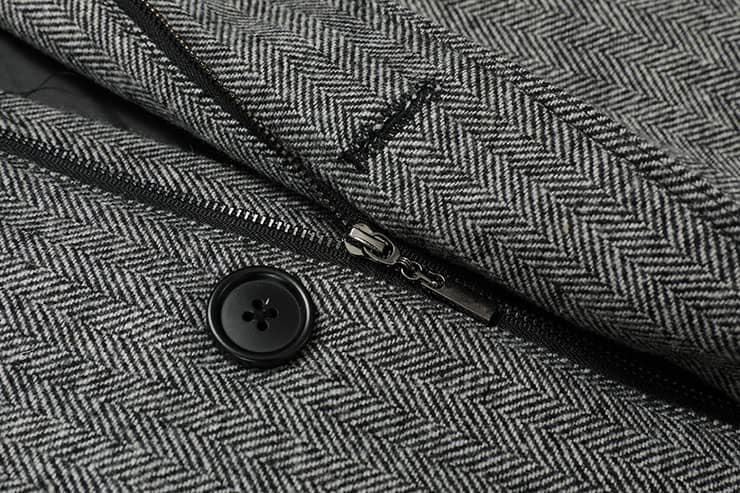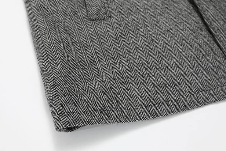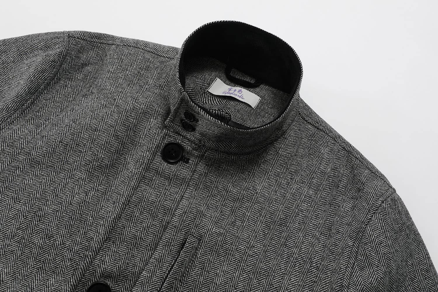 羊毛混纺面料,厚实、保暖,立领,门襟拉链加纽扣,前胸单唇袋藏拉链袋口,下边两侧斜插单唇袋,合体版型剪裁,后腰部合理分割,打造成熟稳重的男人魅力。