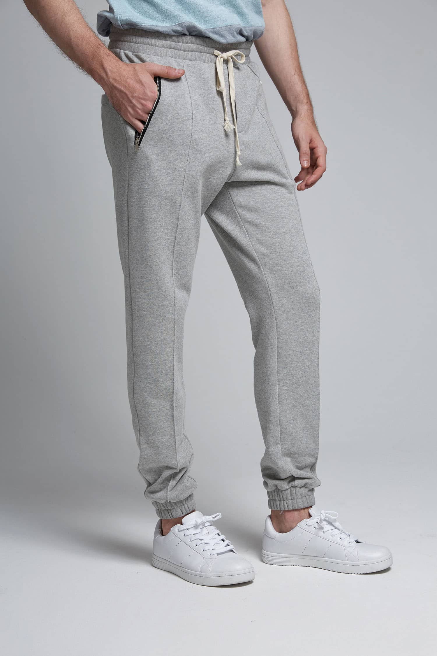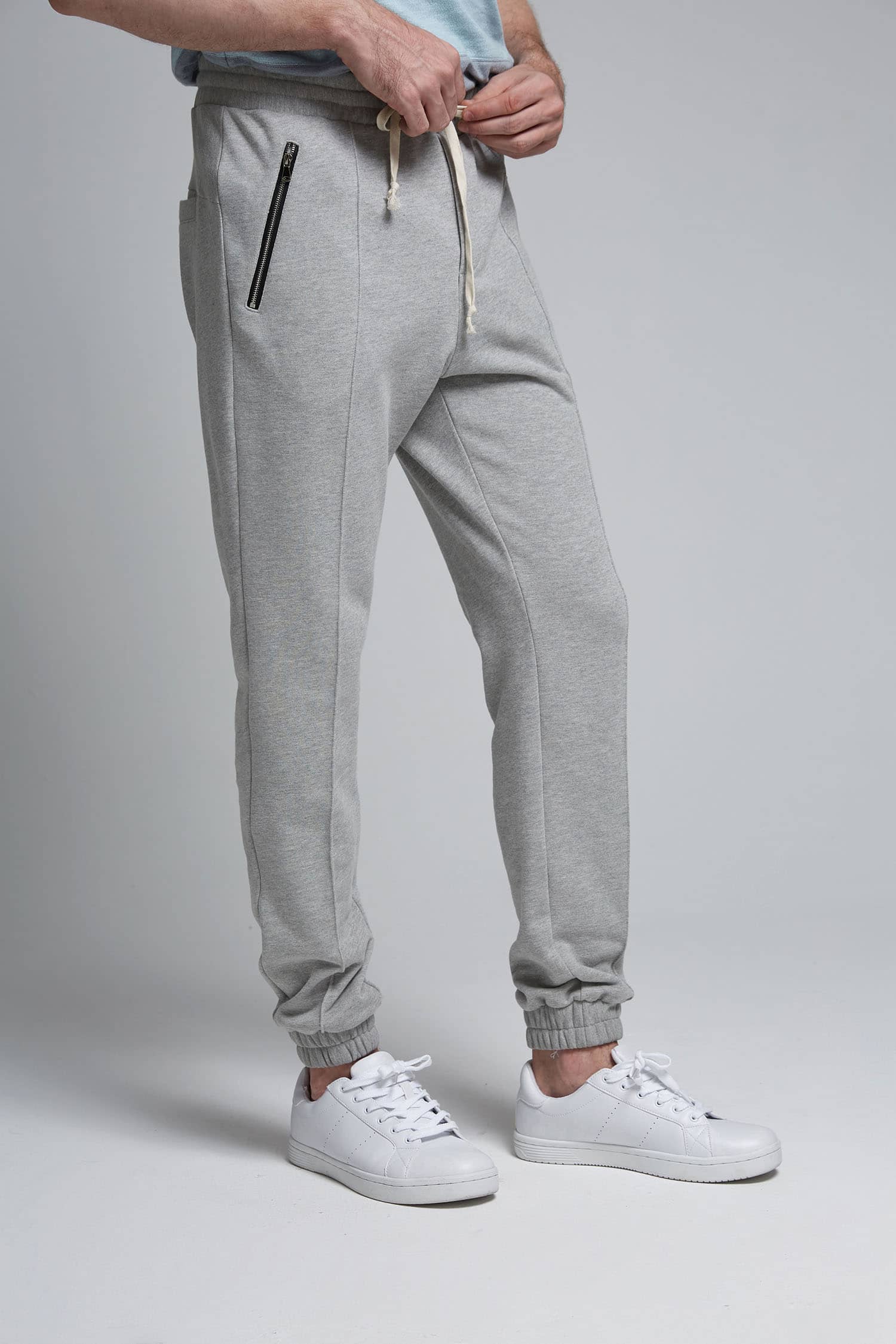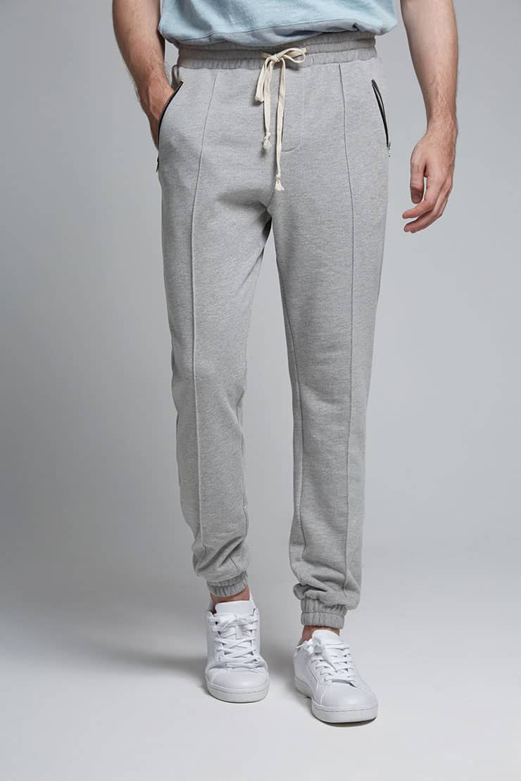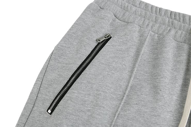 棉质毛圈针织面料,松紧腰头搭配抽绳,两侧口袋撞色拉链装饰,裤身前片立体中线处理,突显腿部轮廓更有立体感,下脚同样松紧束口,上下呼应,活力休闲。
