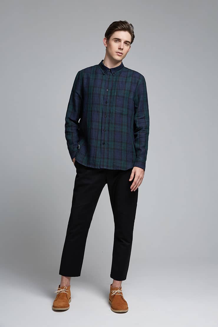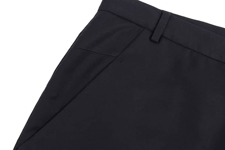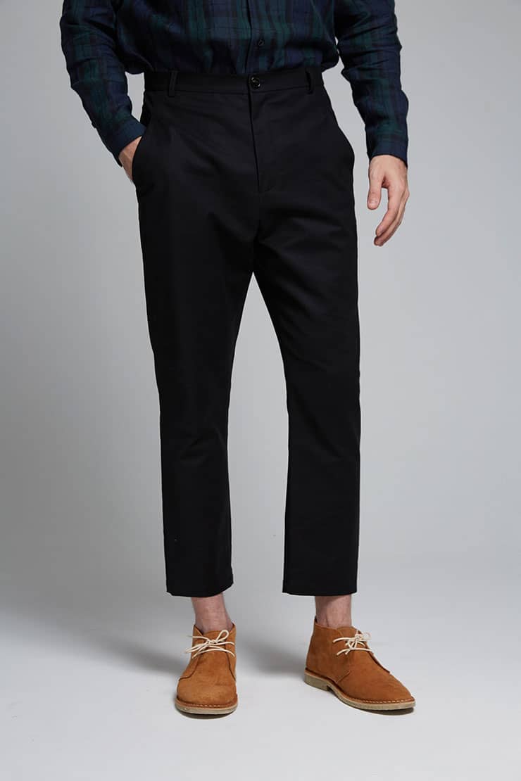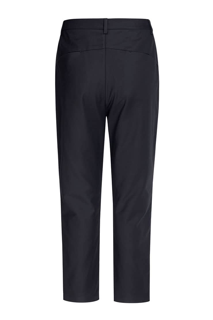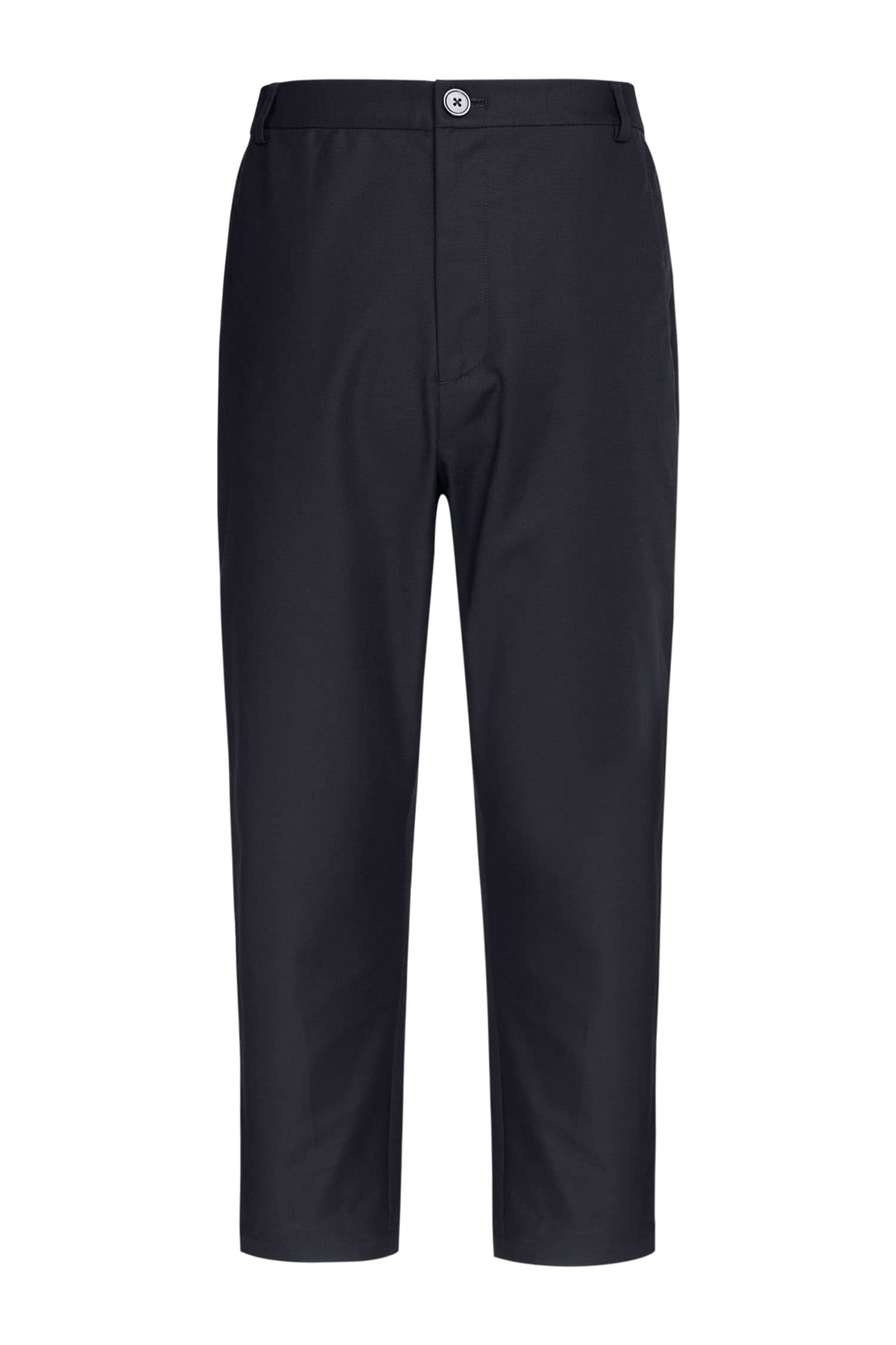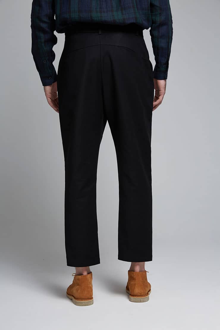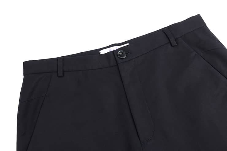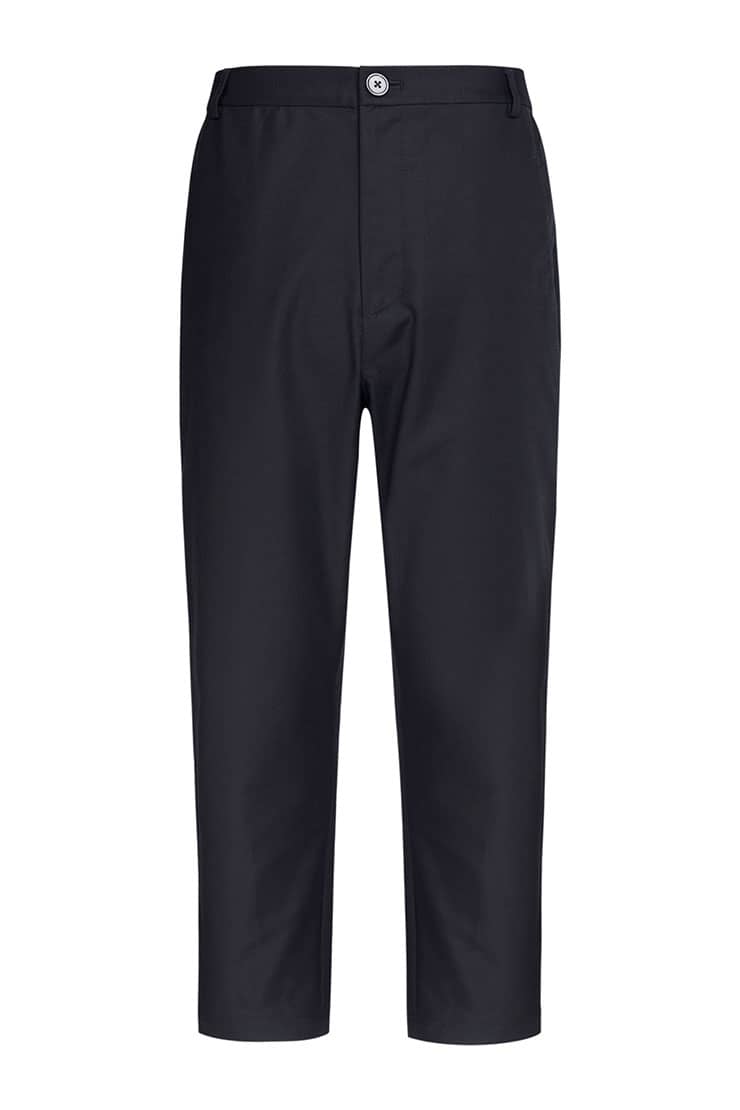 质地柔软,穿着舒服,腰部服帖,门襟装拉链钉纽扣,斜插口袋,后幅育克分割,缝内一字隐形横插袋,款式微松,落裆,收脚口,八分裤长,设计简约且不乏时尚。