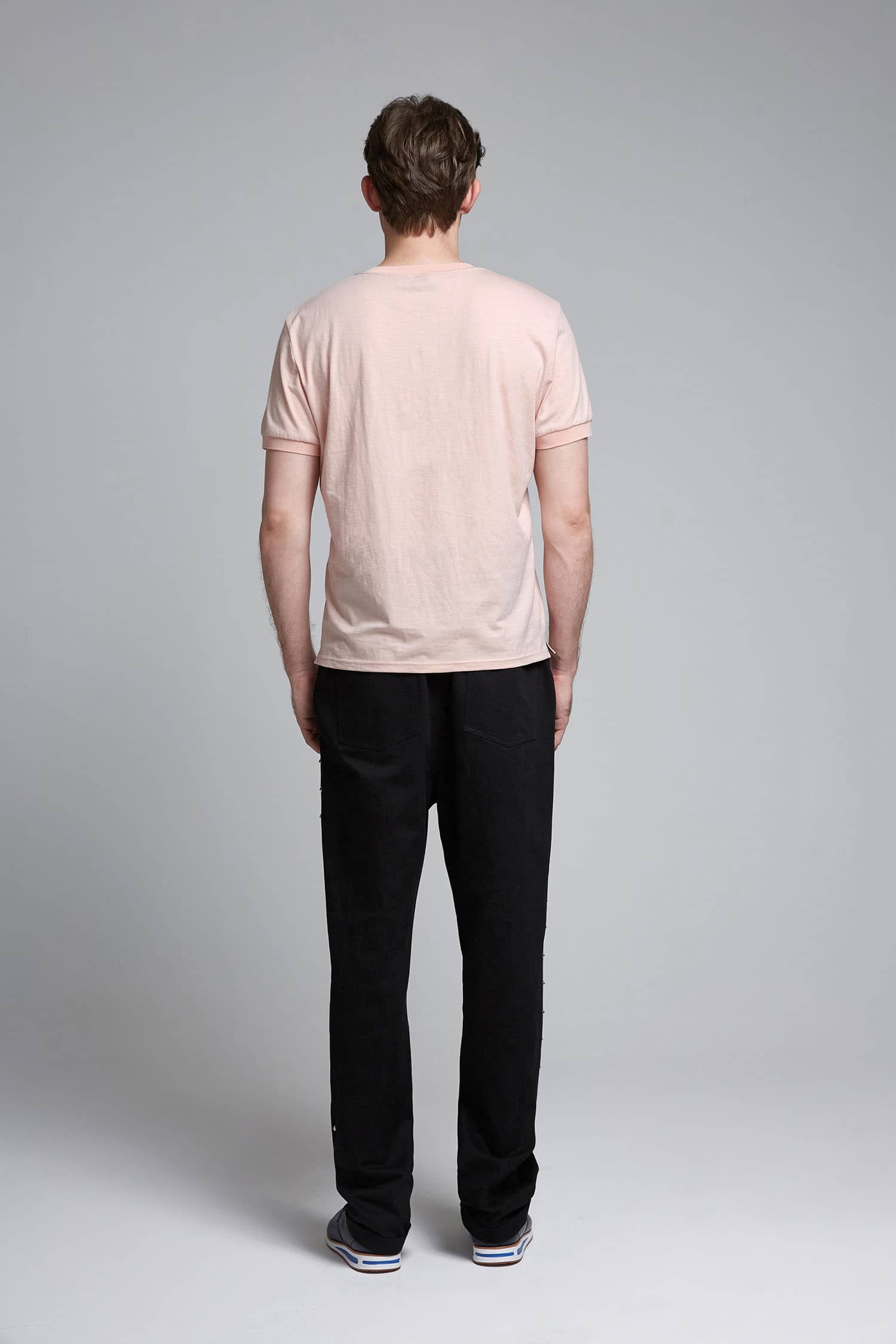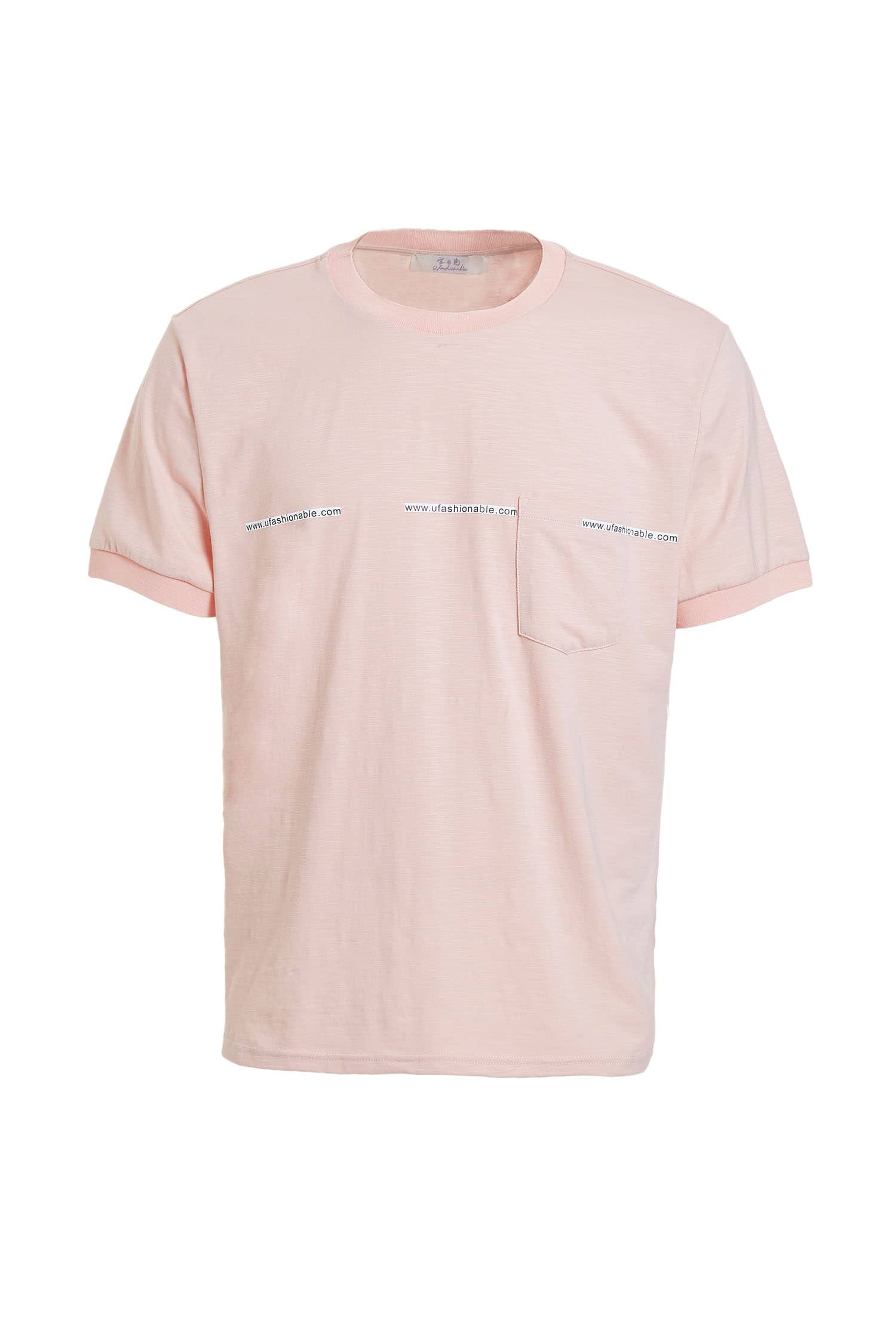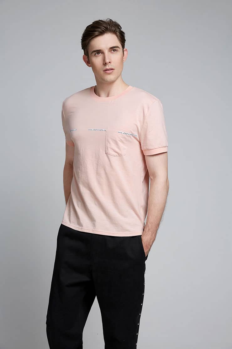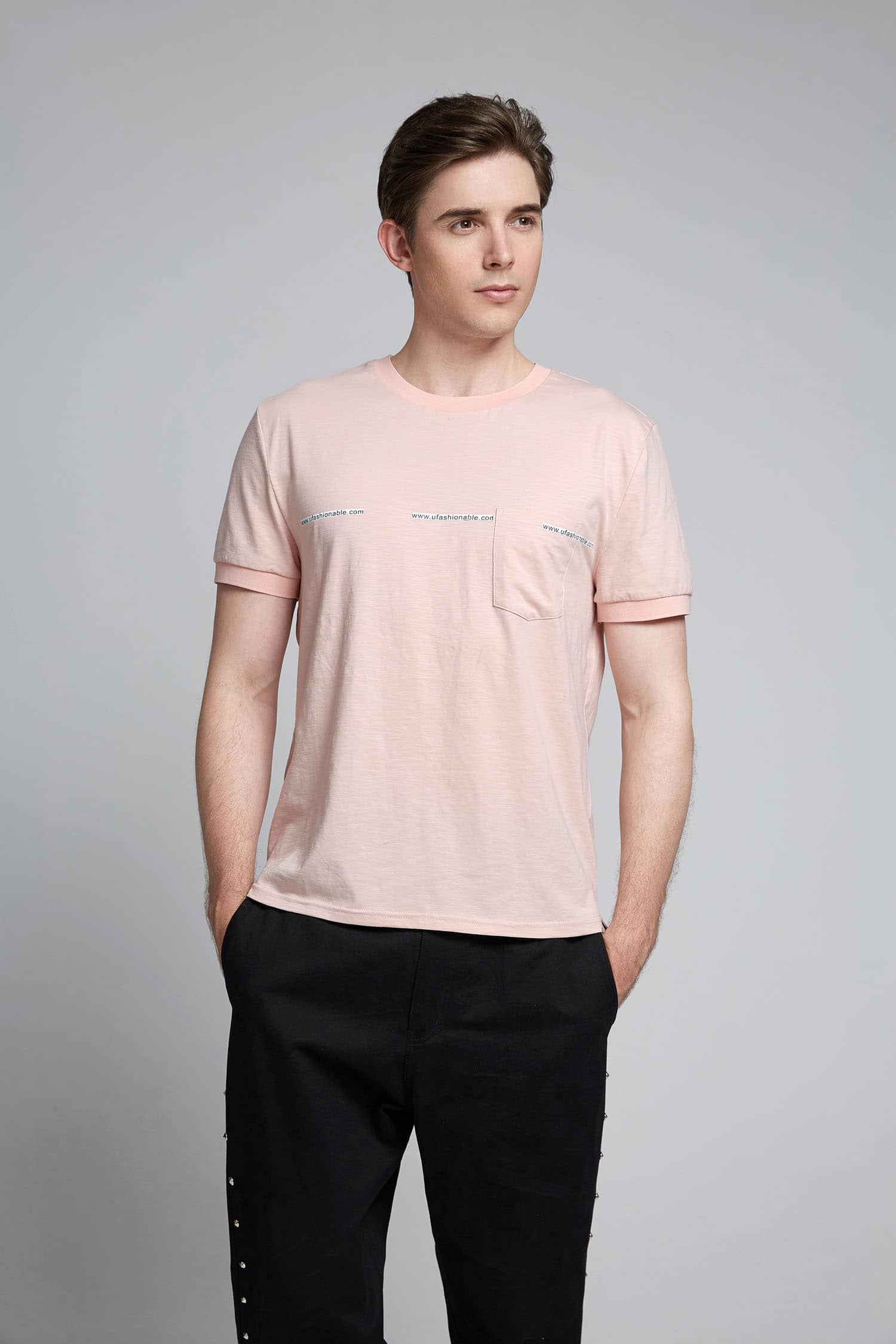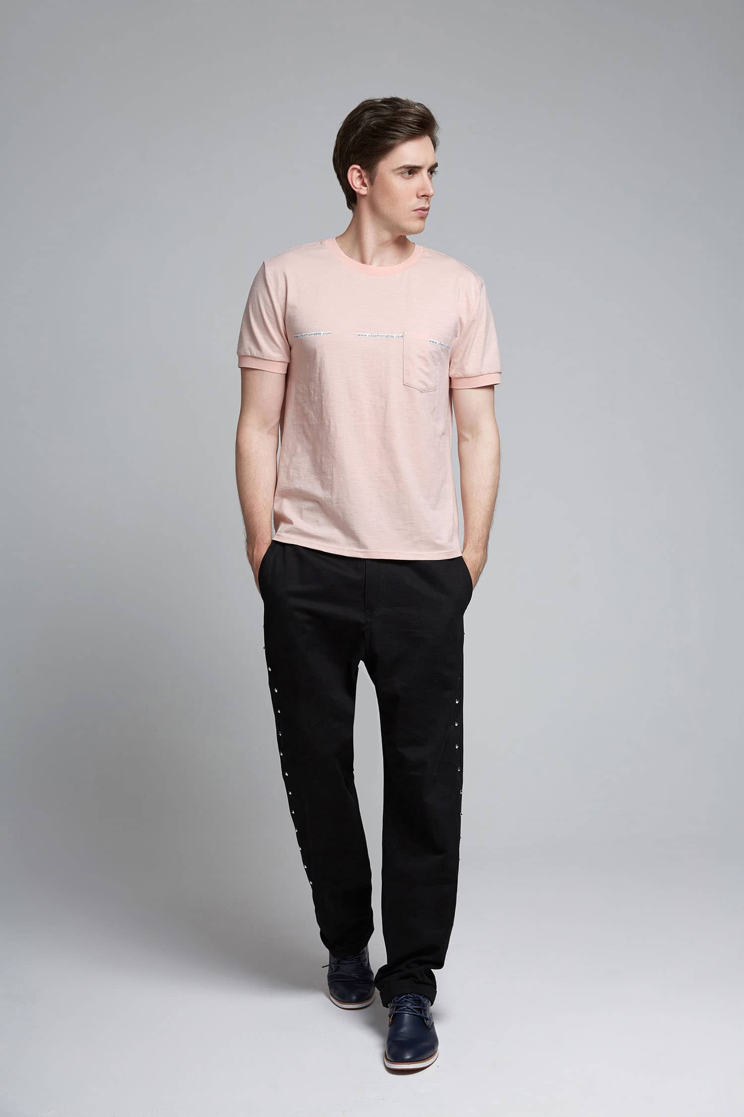精选棉质混纺面料,圆领短袖T恤,左前胸贴袋,前幅字母印花条横穿口袋,美观时尚,给人不一样的视觉。