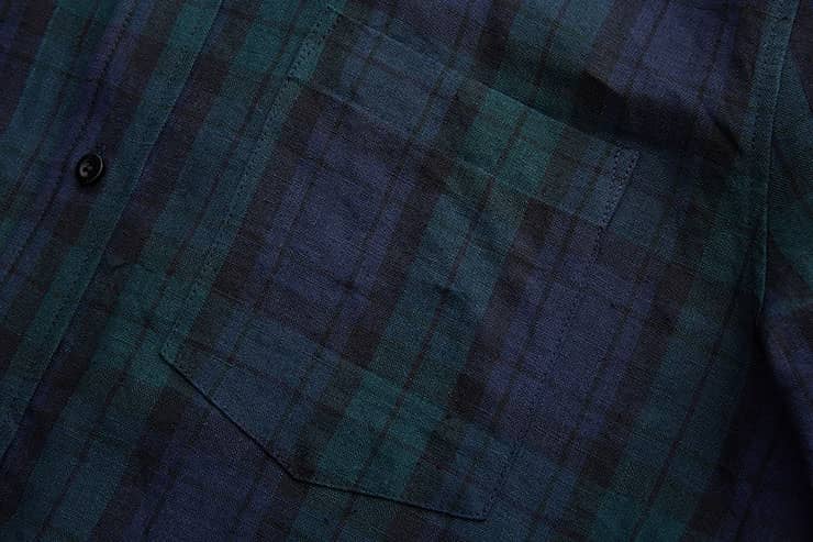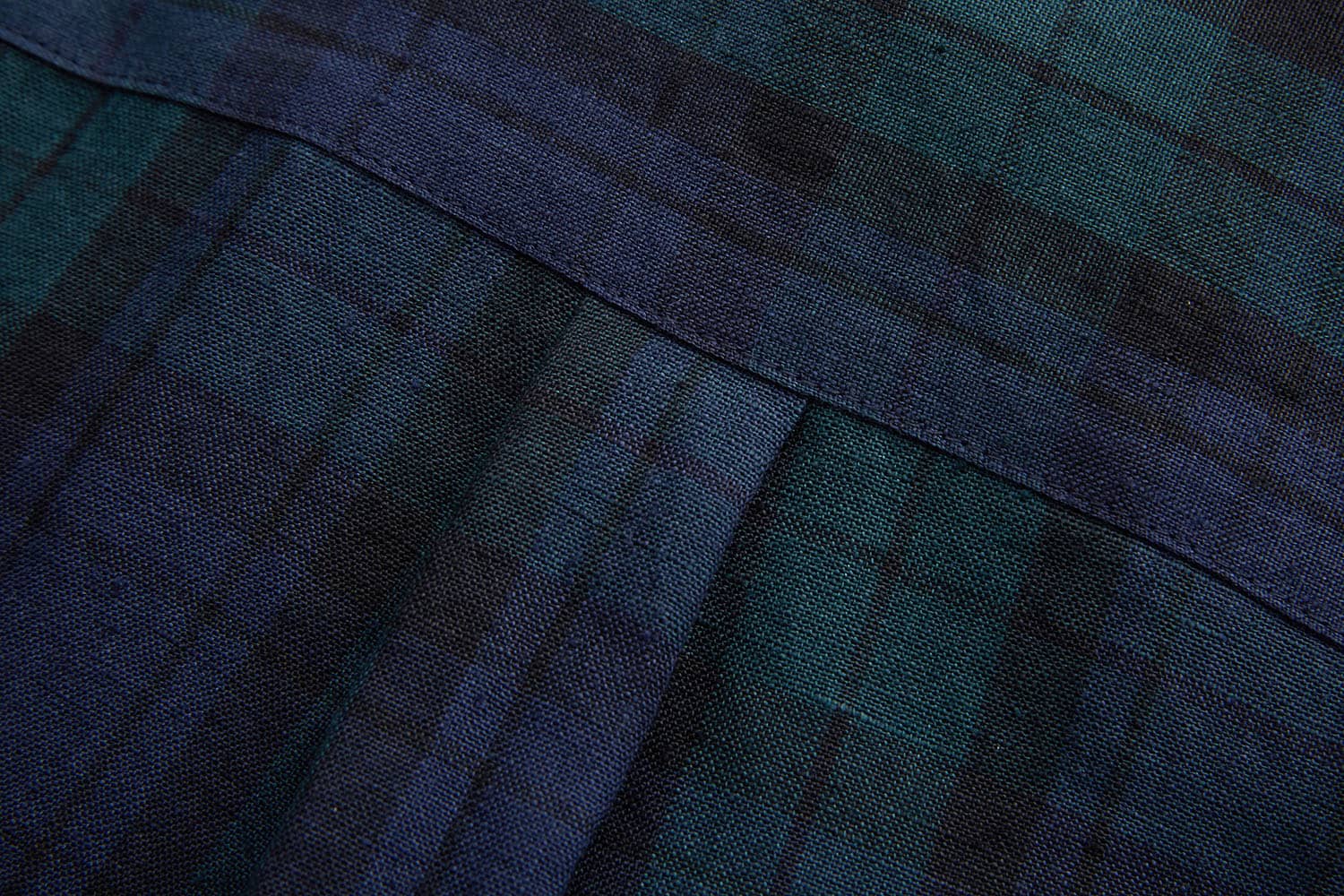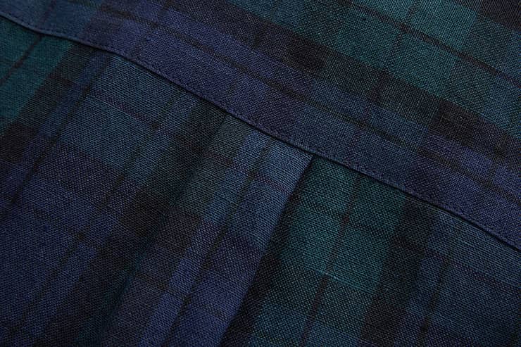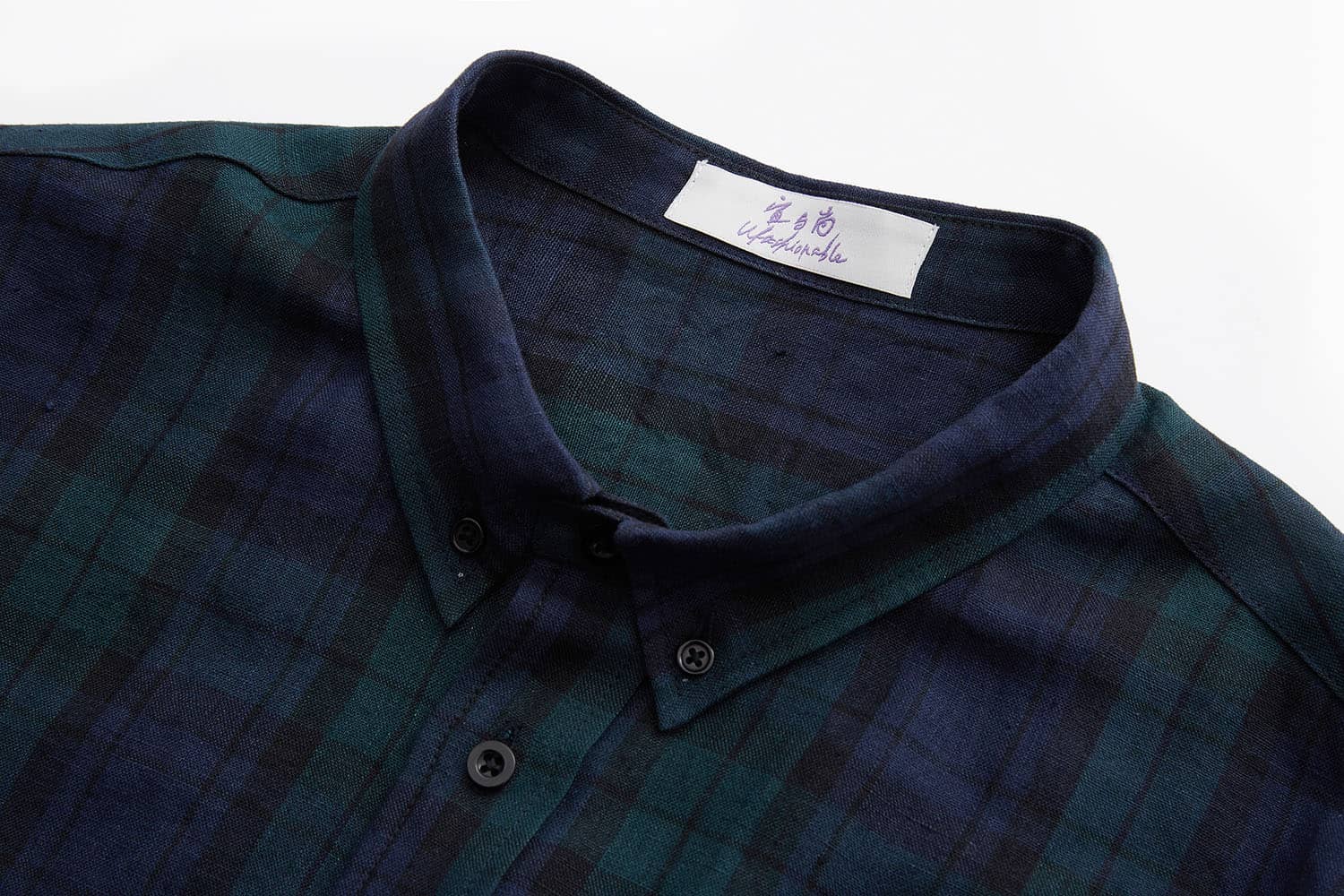 亚麻色织面料休闲西装,经过后期水洗处理,增加面料的柔软性及怀旧性;翻驳领,单排三粒扣,下边两侧圆角大贴袋,无袖衩,后中下摆开衩。