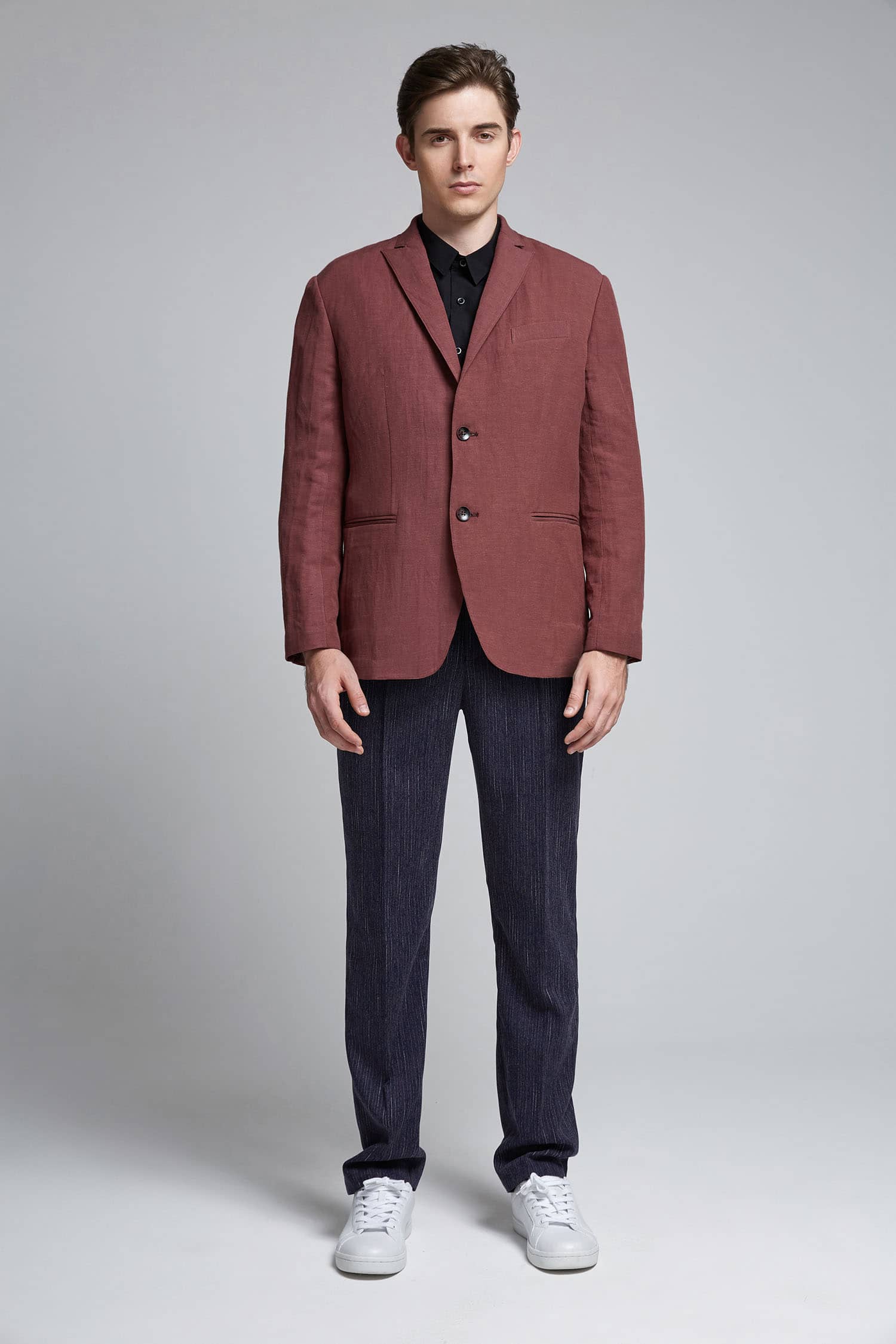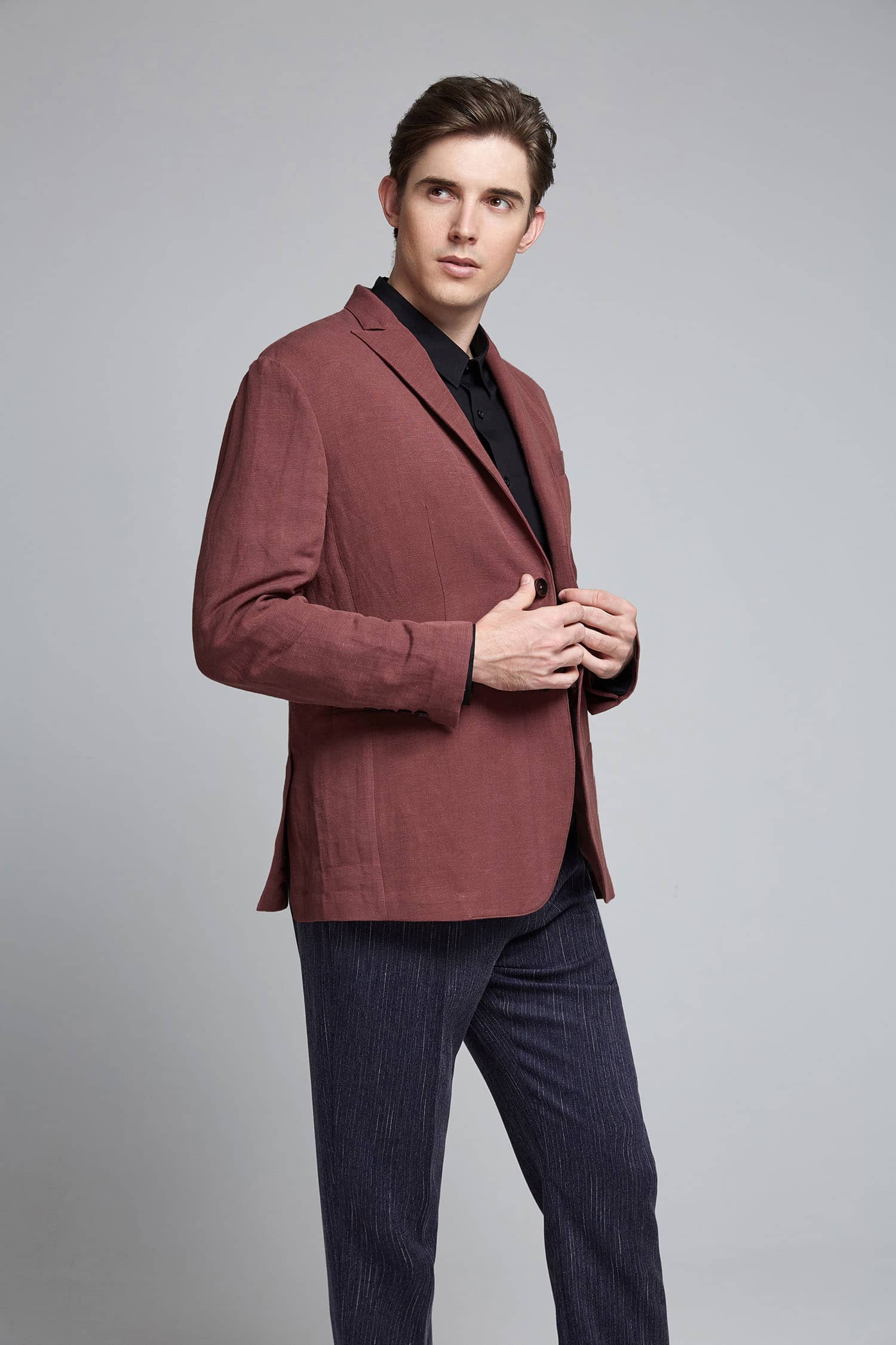亚麻戗驳领两粒扣西装