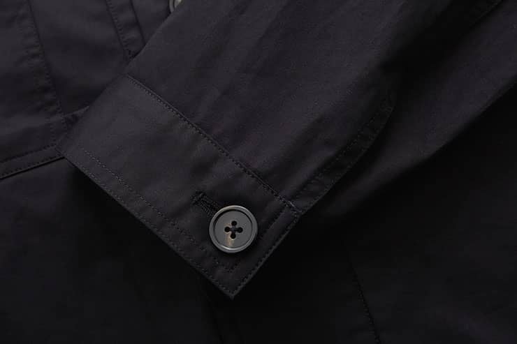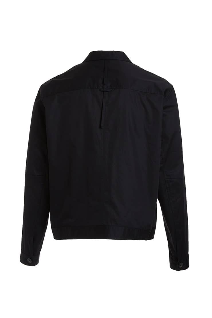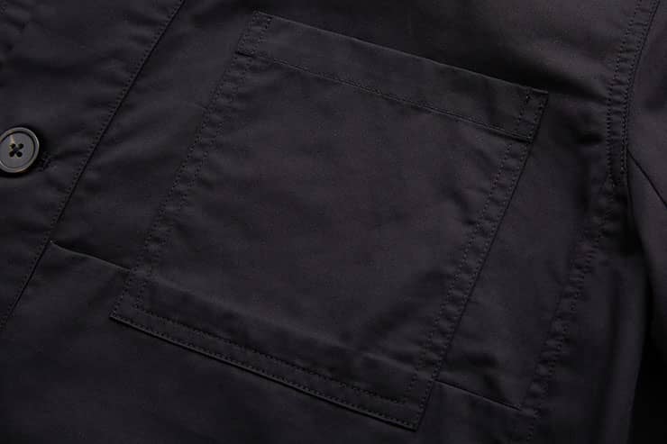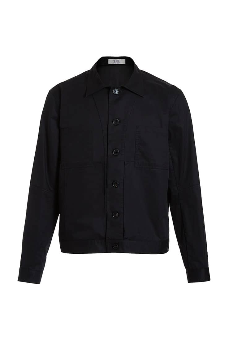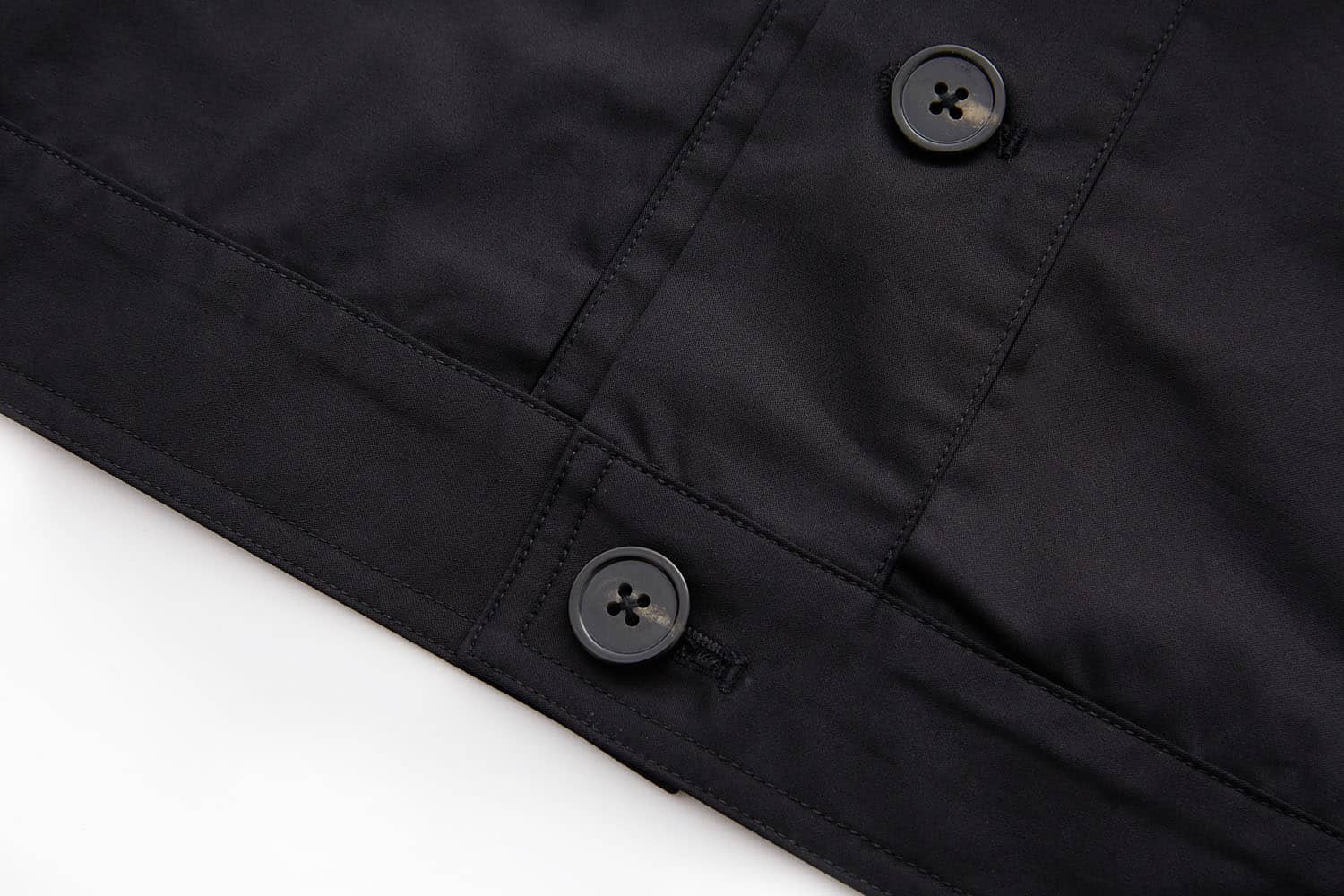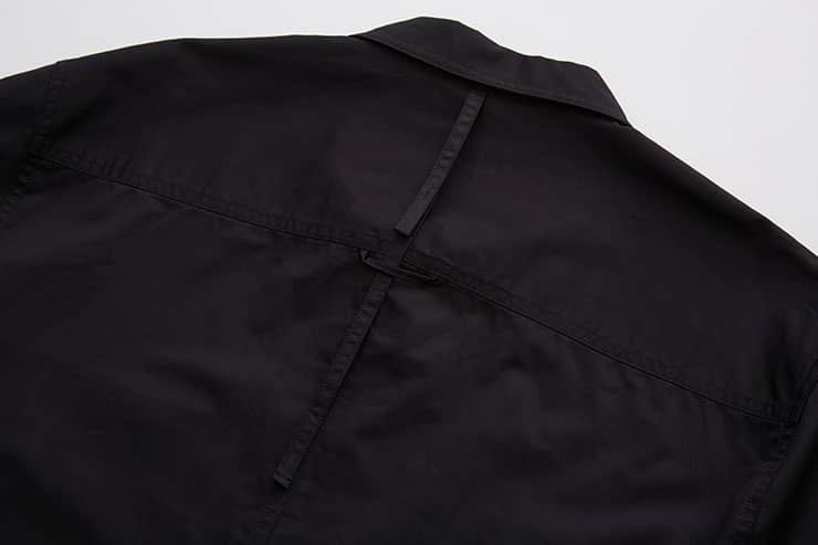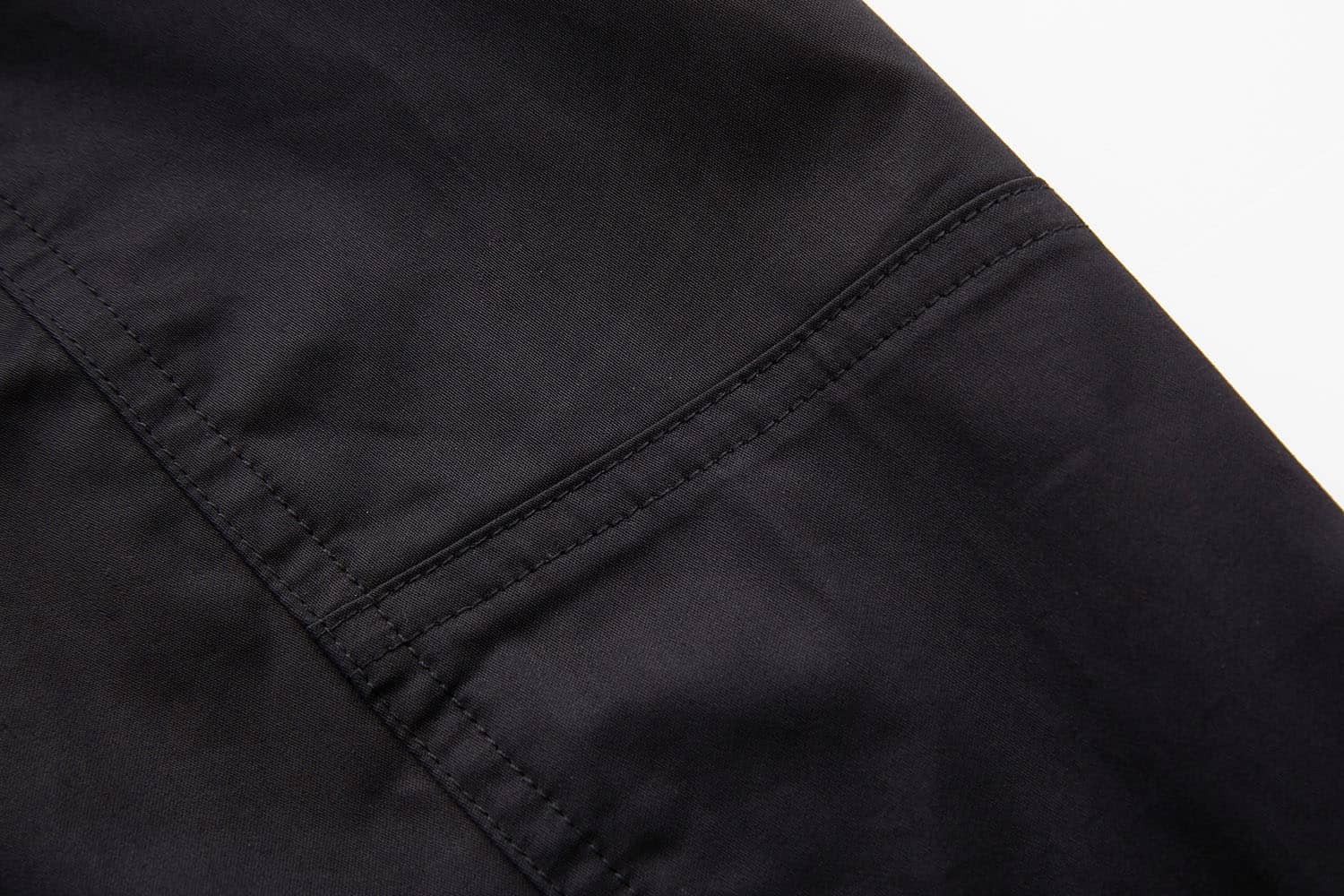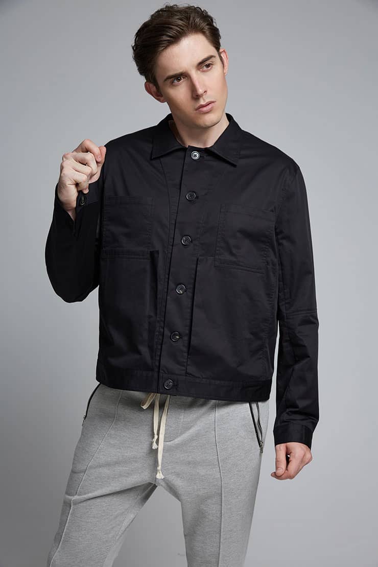 高密支纯棉面料夹克款式,经典的翻领,门襟钉纽扣,个性多口袋层叠设计,后幅别致的飘带,衣身及袖子多片分割,设计独特。