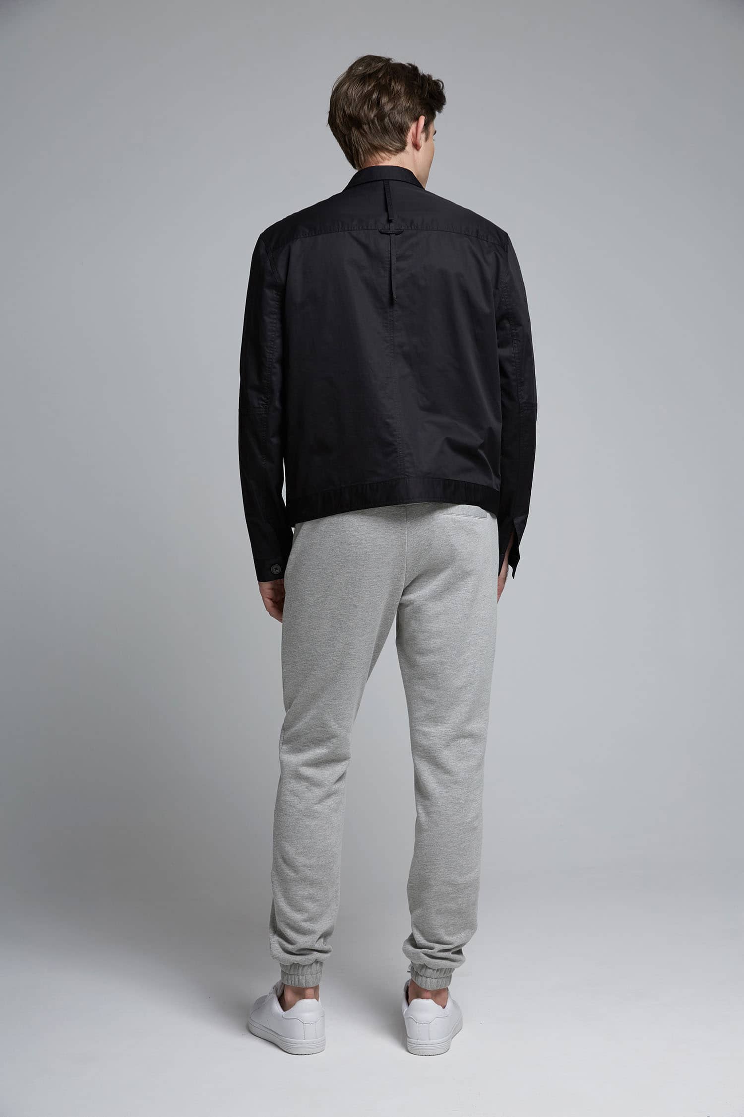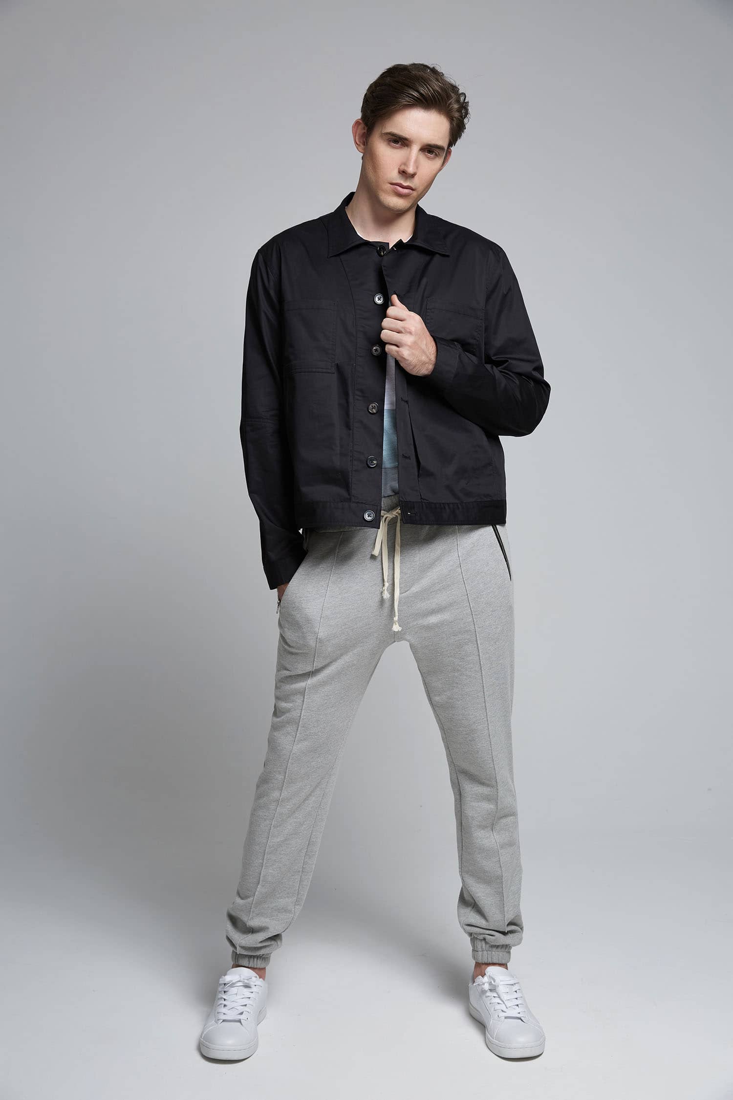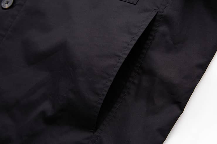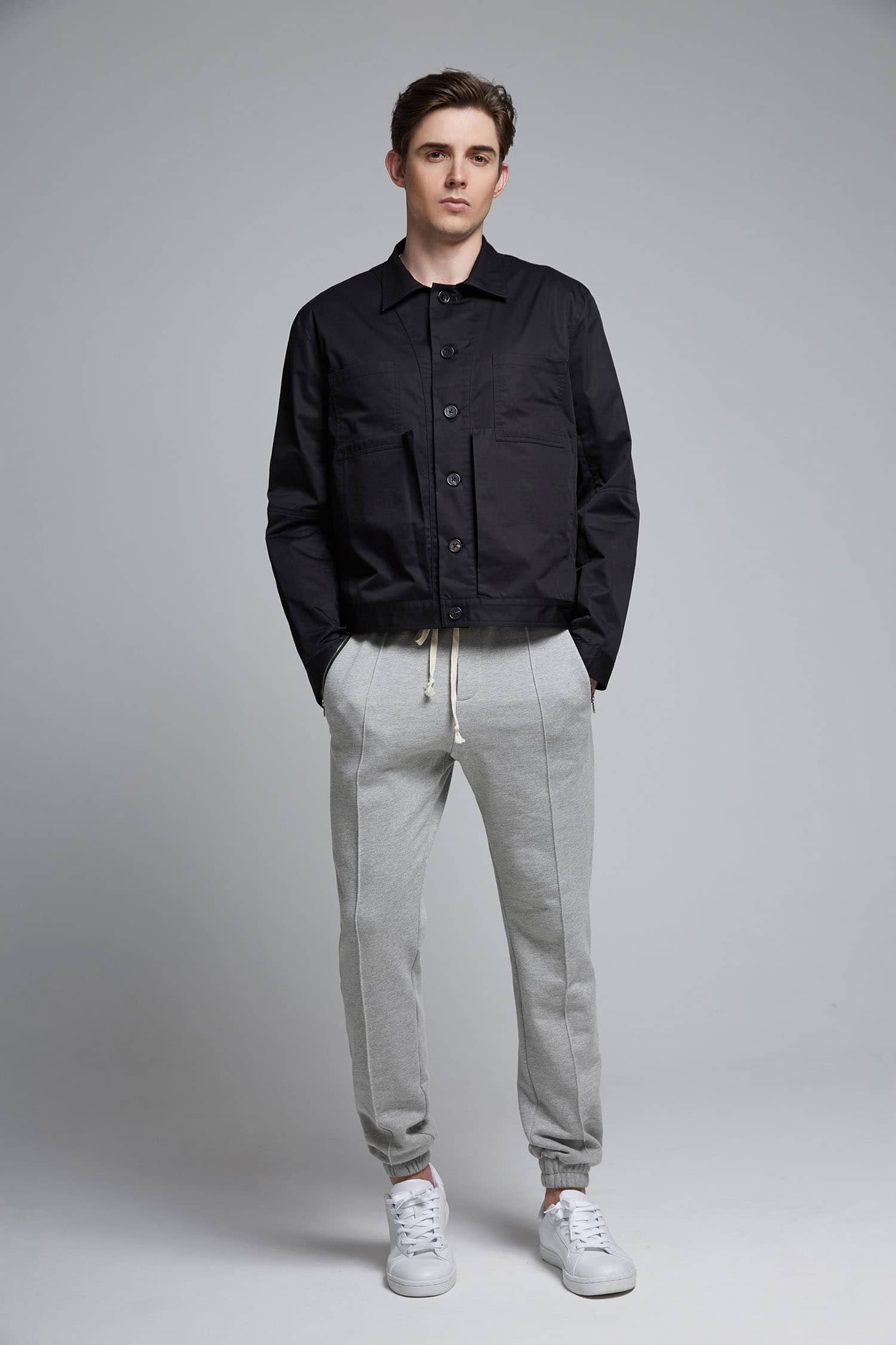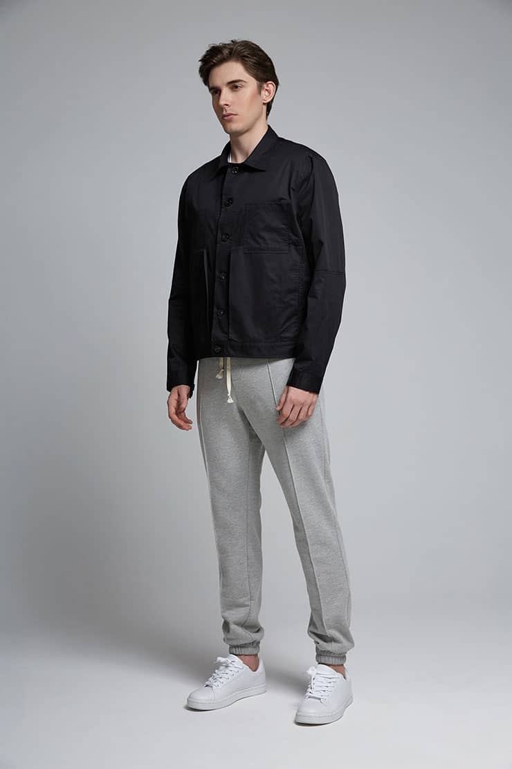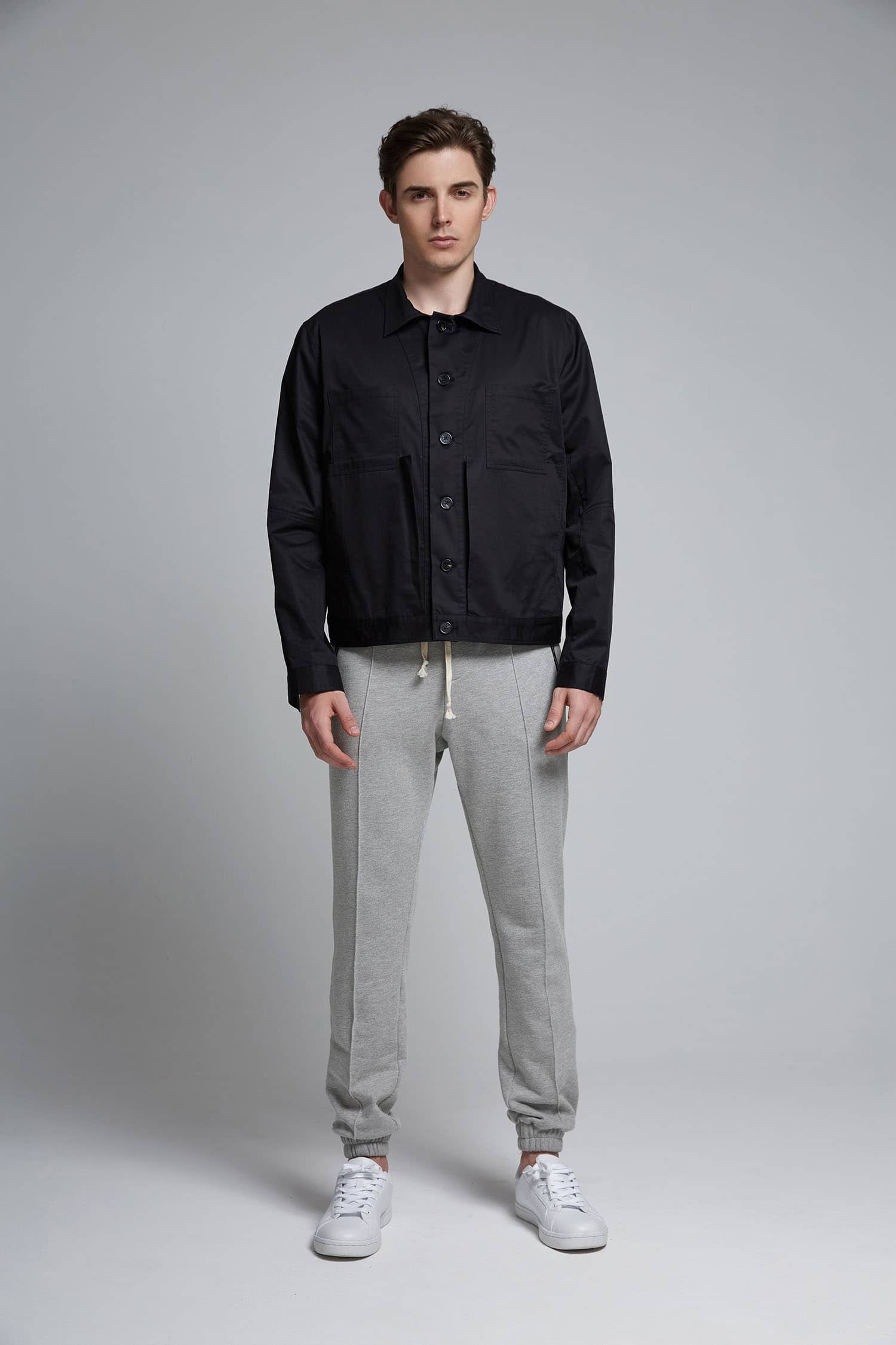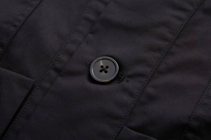 高密支纯棉面料夹克款式,经典的翻领,门襟钉纽扣,个性多口袋层叠设计,后幅别致的飘带,衣身及袖子多片分割,设计独特。