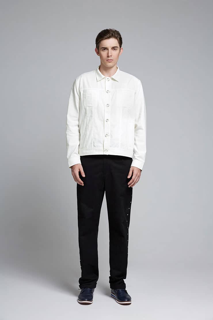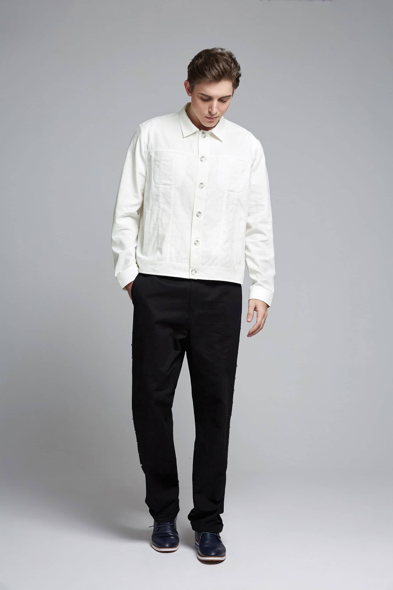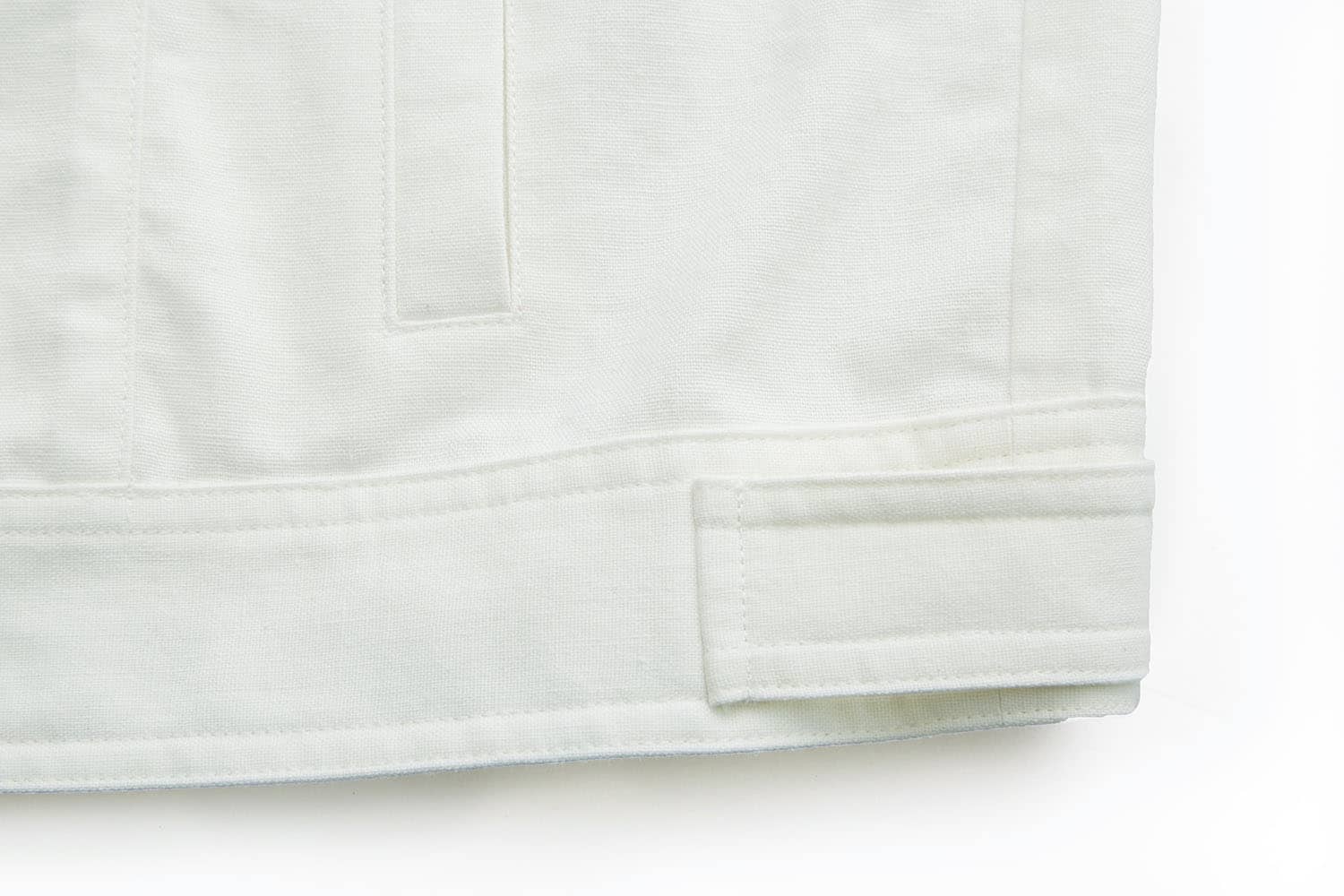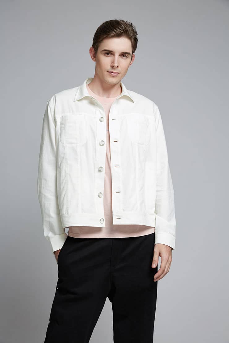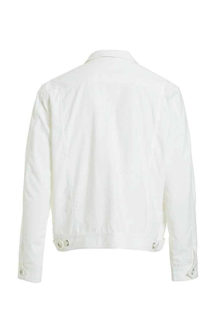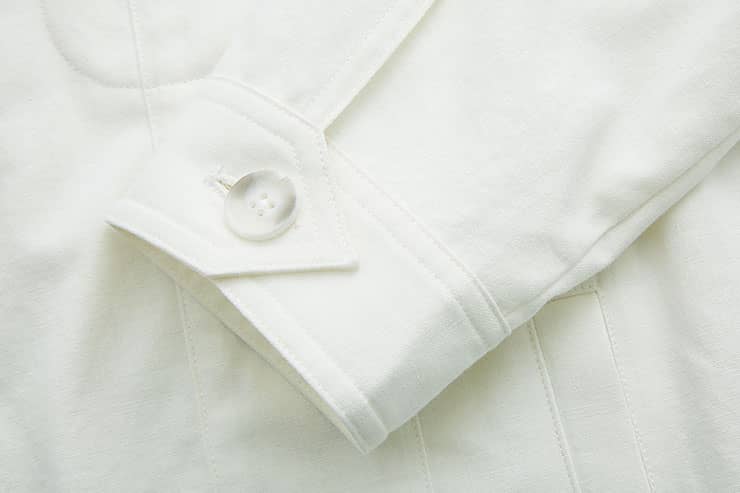 棉麻混纺面料夹克短外套,经典的翻领,门襟人字走线钉纽扣,时尚立体裁剪,隐形口袋配有个性破缝拼接设计,下摆及袖口设有扣绊,时尚有型突显休闲气质。